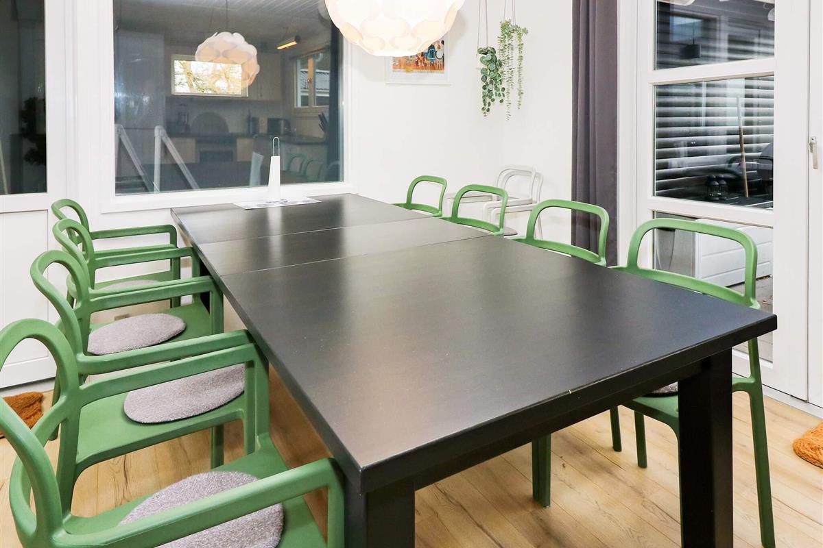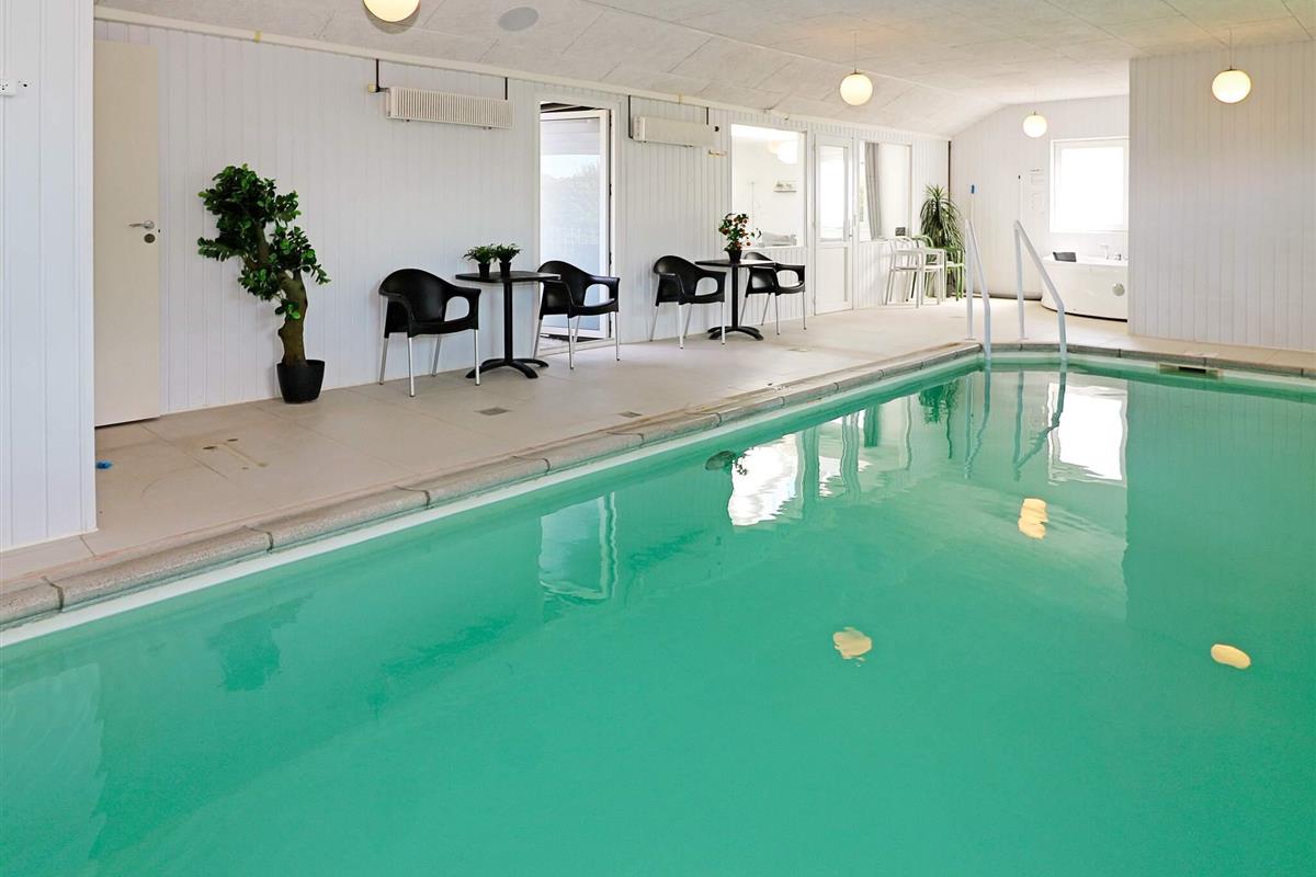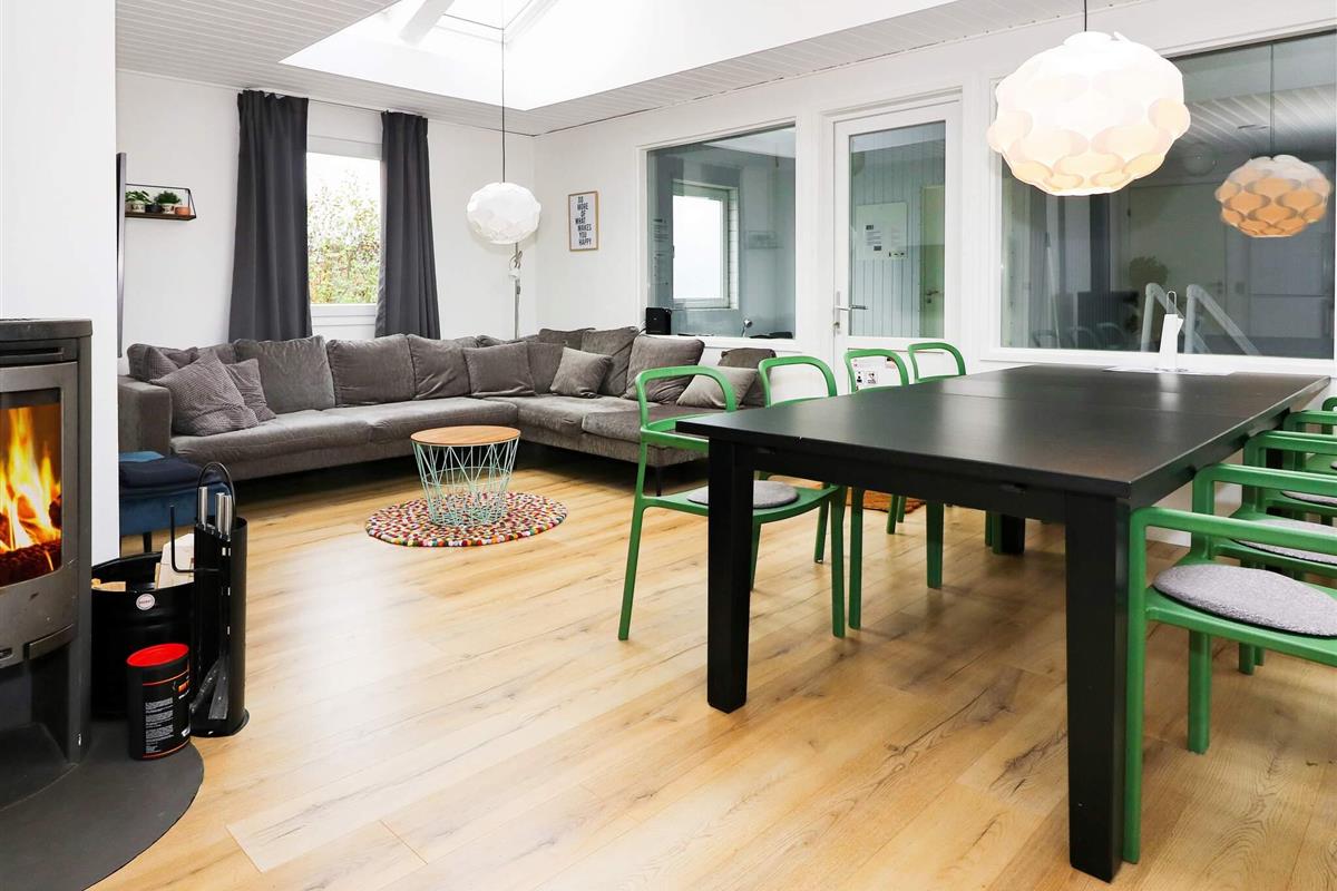 Versteckt am Ende einer ruhigen Schotterstraße, nur einen kurzen Spaziergang vom charmanten Küstenort Øster Hurup entfernt, fühlt sich dieses Ferienhaus wie ein Ort der Zweisamkeit an. Das erste, was Ihnen auffällt, ist das großzügige Raumgefühl – helle Zimmer öffnen sich zu einer Terrasse, auf der die Meeresbrise weht und das Lachen der Kinder durch den Garten schallt. Der Morgen beginnt hier gemütlich mit Kaffee am langen Esstisch und Sonnenlicht, das durch die Fenster fällt, während die Pläne für den Tag geschmiedet werden: vielleicht ein Bad im Pool, eine Radtour zum Hafen oder einfach nur entspannte Stunden zu Hause.