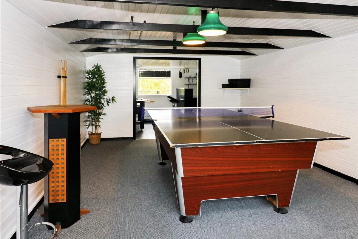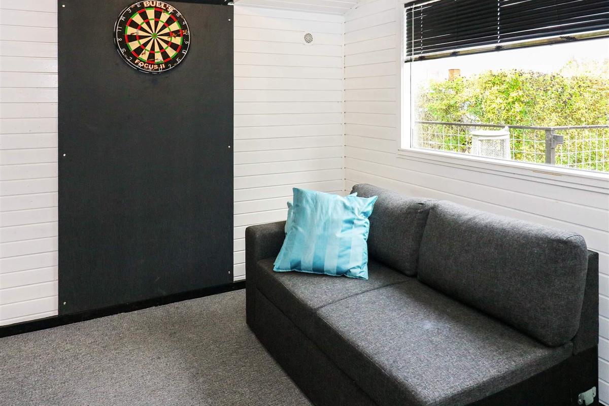Die Abende hier sind lebhaft und warm. Der Aktivitätsraum wird zum Treffpunkt mit Billard, Tischtennis, Tischfußball, Darts und einer kleinen Bar, an der man bis spät in die Nacht Geschichten austauschen kann. Bei schönem Wetter werden die Mahlzeiten draußen auf der großen, teilweise überdachten Terrasse eingenommen, sodass lange Abendessen unter freiem Himmel möglich sind. Kinder lieben den Schutz im Garten, ein kleines Refugium, perfekt für abenteuerliche Übernachtungen. Umgeben von Natur und doch nah am Meer und der Stadt bietet dieses Zuhause Privatsphäre und Möglichkeiten – ein Ort, an dem sich jeder Tag wie eine neue Erinnerung anfühlt, die darauf wartet, geschaffen zu werden.