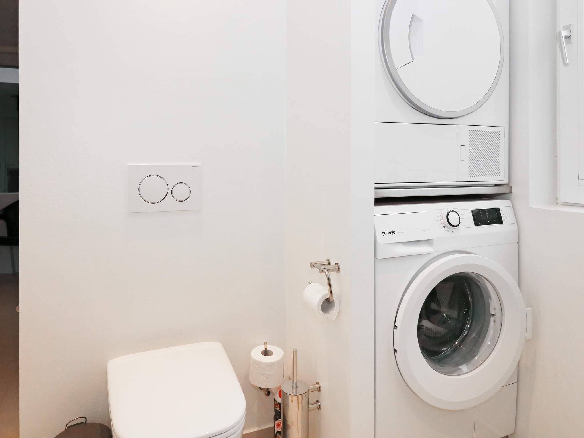 Bad: Waschm, Trockner, WC, Waschb., Dusche, Fußbodenheiz.