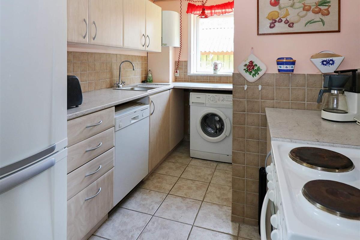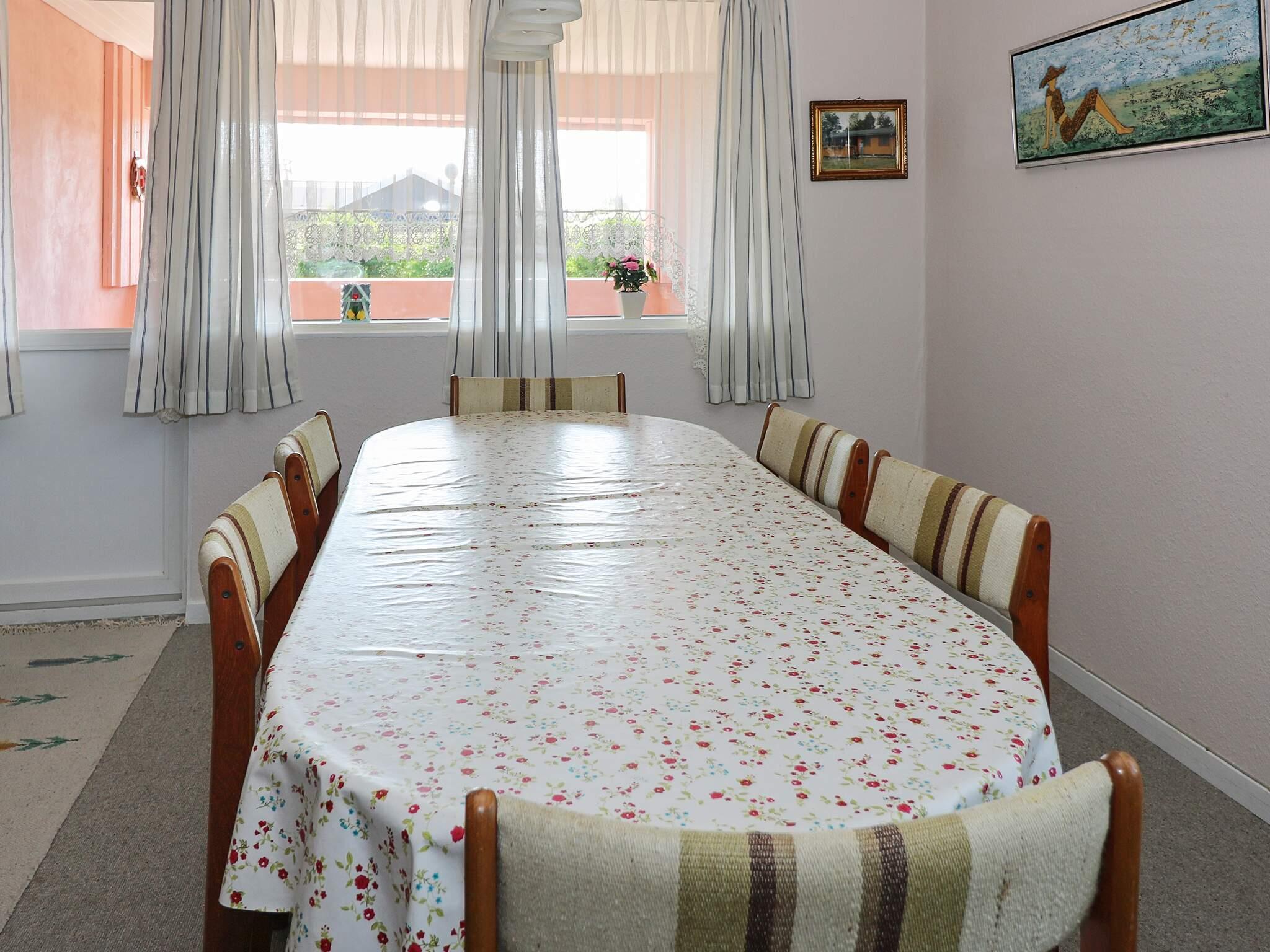 Ferienhaus nur wenige Gehminuten vom Strand und dem kleinen Ort Øster Hurup entfernt. Geräumiges Wohnzimmer mit Essbereich und Zugang zu einer überdachten Terrasse und Patio. Küche mit Zugang zum Grundstück mit Schaukel. Es gibt ein Schlafzimmer mit Doppelbett und ein zweites Schlafzimmer mit zwei Einzelbetten sowie ein Badezimmer mit Dusche.