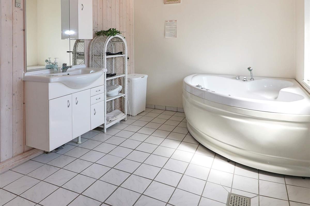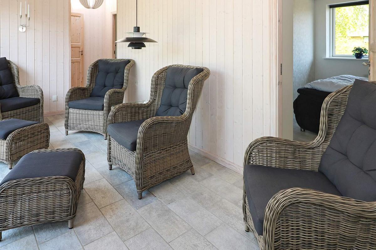 Dieses Ferienhaus mit Whirlpool liegt nur wenige Gehminuten vom Strand und der Stadt Øster Hurup entfernt und bietet Komfort und eine entspannte Atmosphäre. Das geräumige und helle Wohnzimmer ist offen zur Küche und zum Essbereich und schafft so einen einladenden Raum für Familienleben und geselliges Beisammensein. Vom Wohnbereich aus haben Sie Zugang zu einem großen Wintergarten und einer Terrasse, ideal, um die Natur bequem zu genießen.