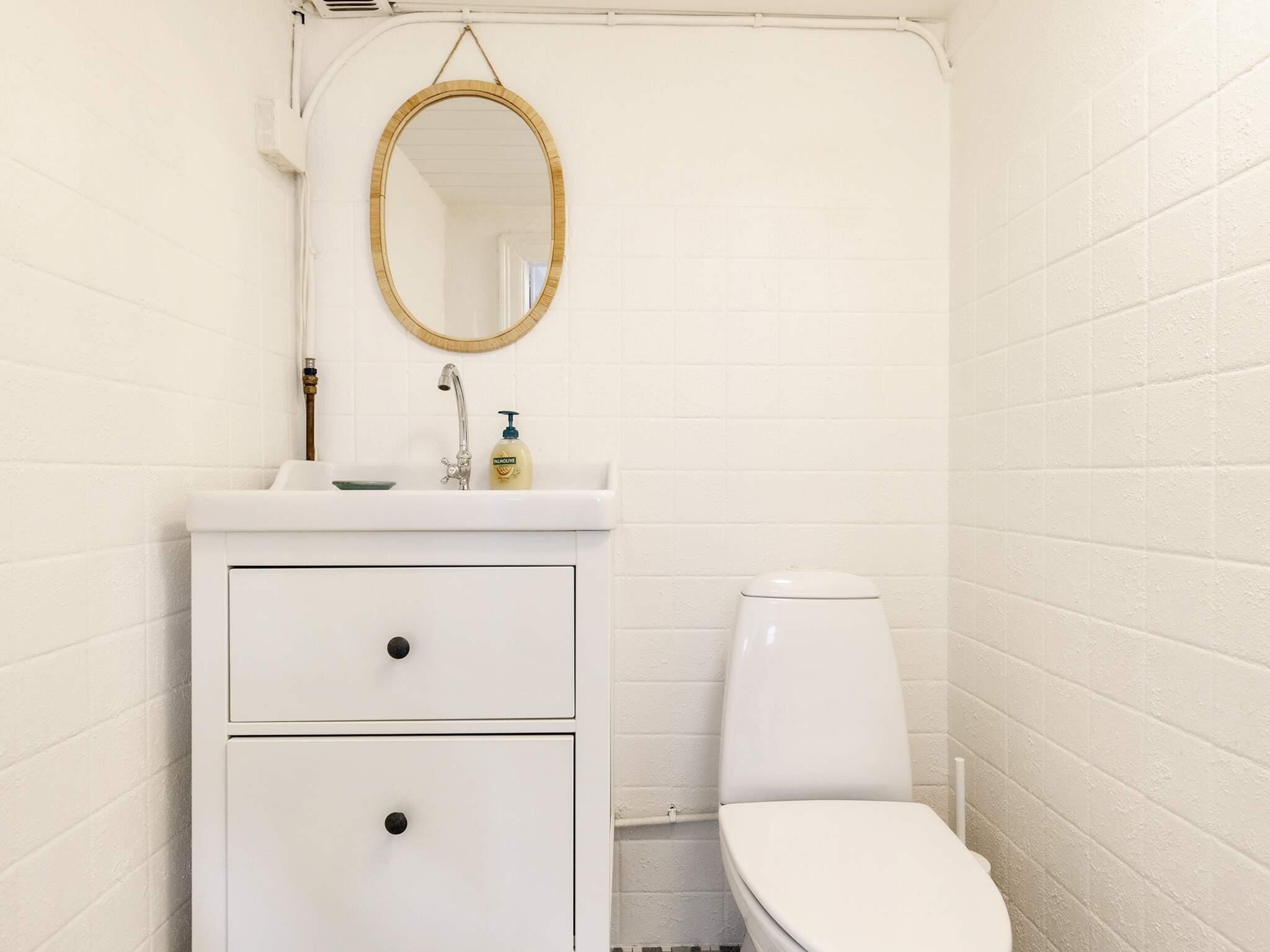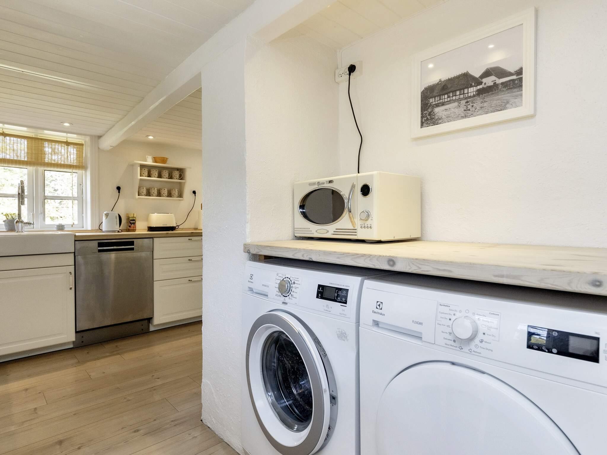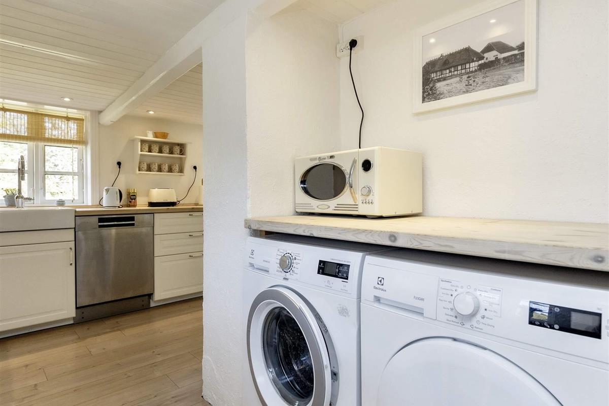 Im Erdgeschoss befinden sich ein praktischer Hauswirtschaftsraum mit Waschmaschine und Wäschetrockner, eine Küche, ein Wohnzimmer mit Holzofen, ein großes Schlafzimmer, ein Badezimmer sowie ein Gäste-WC. Oben im Dachgeschoss liegen zwei weitere Zimmer. Raumhöhe im Küchen-/Wohnbereich zw. 180 und 190 cm.