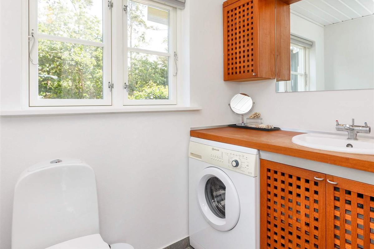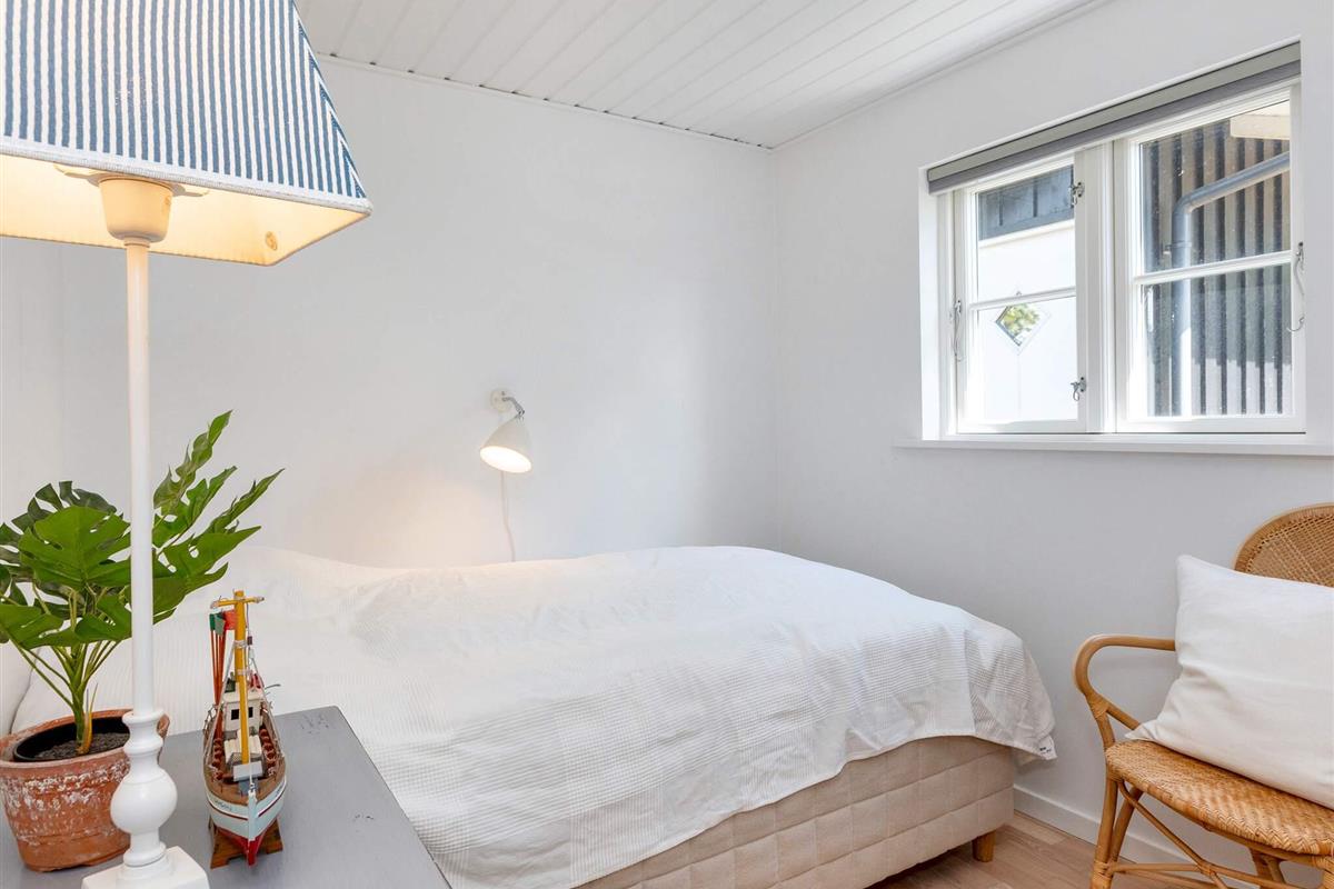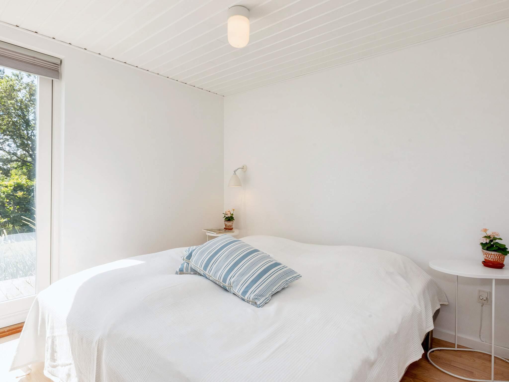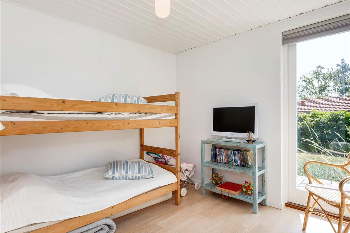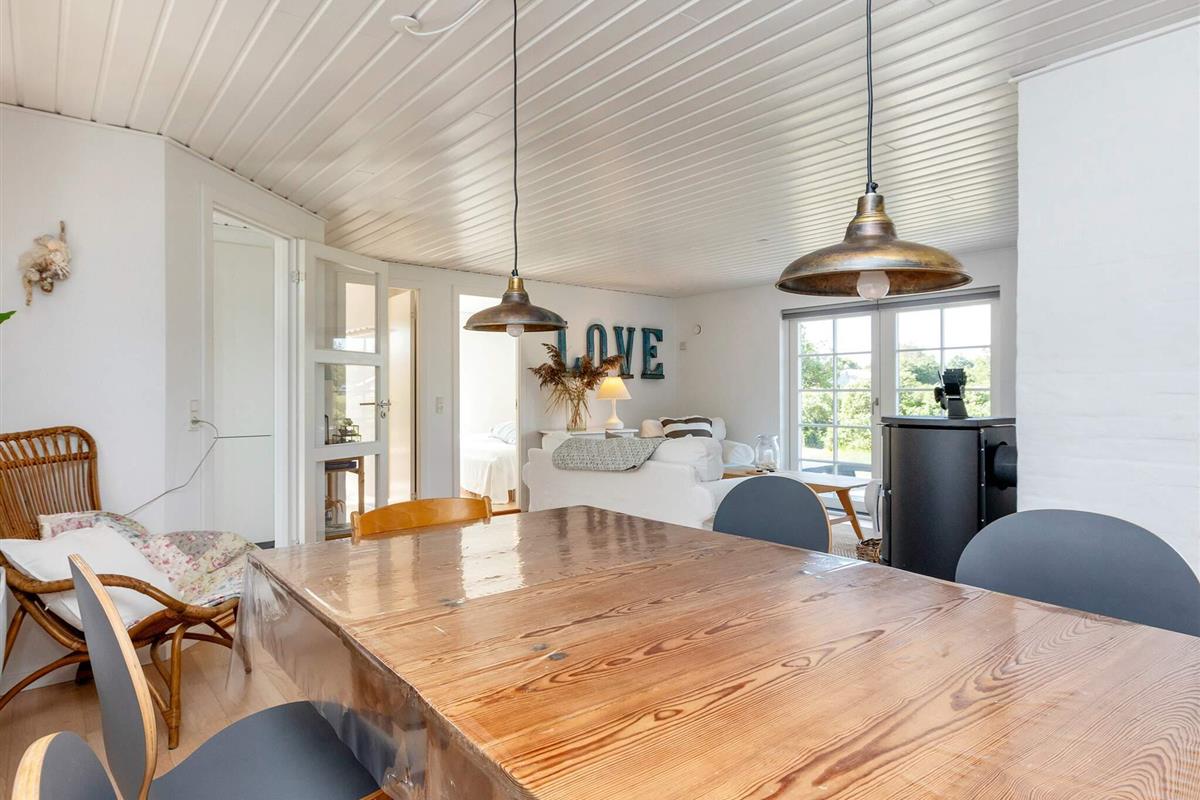 Offen kombinierter Küche-/Wohnbereich mit Ess- und Sitzecke für das Familienleben. Gute Küchenausstattung. Gemütlicher Holzofen sowie klimafreundliche Wärmepumpe im Haus. Ein Schlafzimmer mit Doppelbett, zweites Zimmer mit schmalerem Doppelbett und ein drittes Zimmer mit Etagenbett mit zwei Kojen (je 80x190 cm). Zudem Badezimmer mit Dusche und angenehmer Fußbodenheizung.