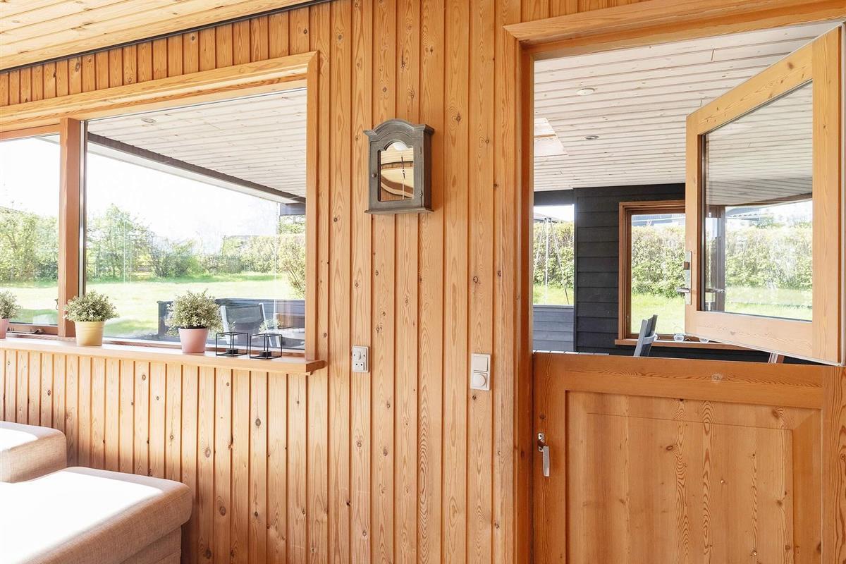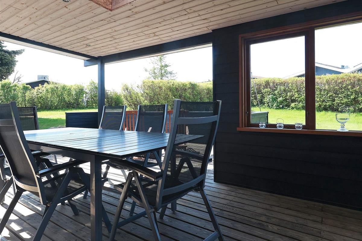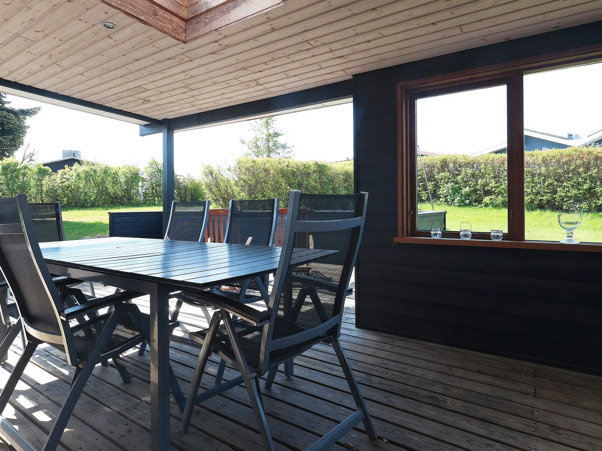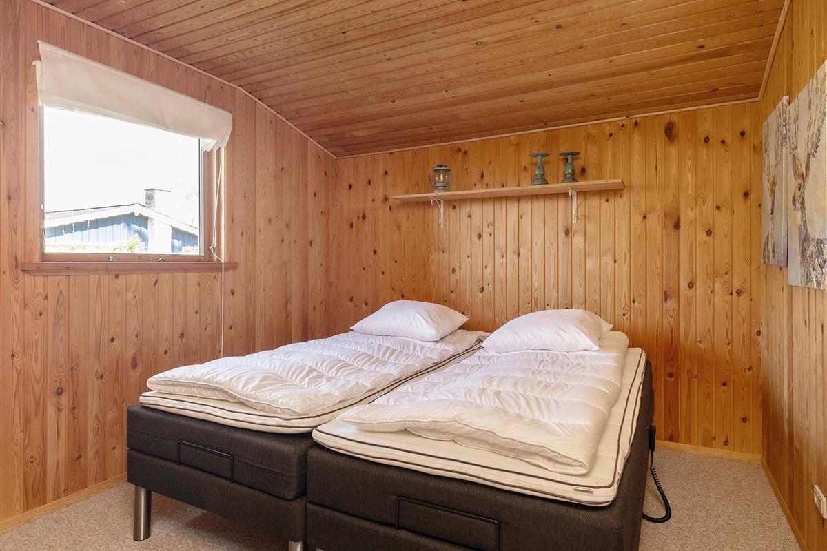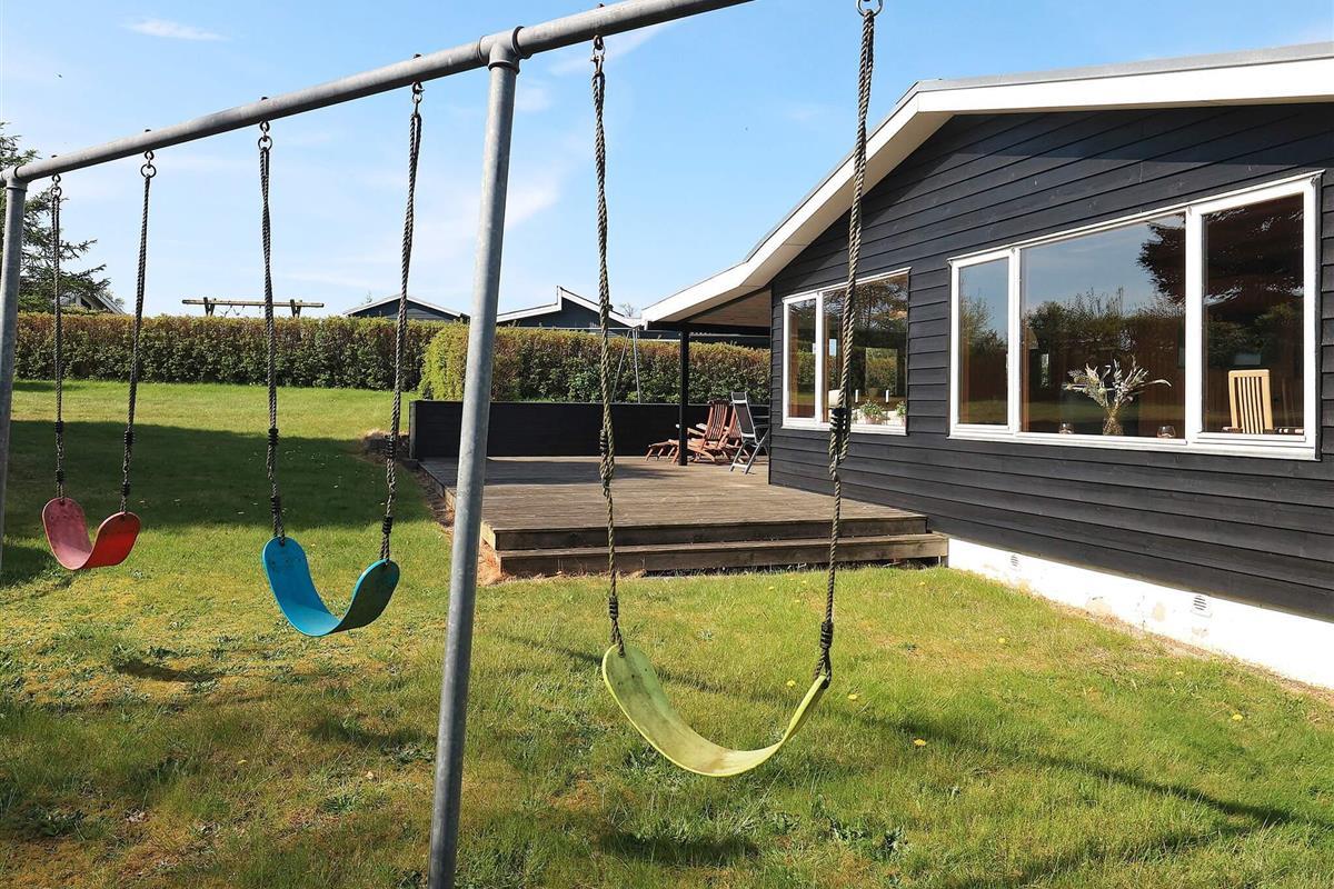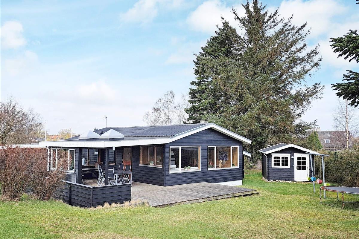 Ferienhaus in einem ruhigen Ferienhausgebiet, nur wenige Gehminuten vom Strand, Hafen und der Stadt entfernt. Helles und geräumiges Wohnzimmer, das in offener Verbindung zum Essbereich und zur Küche steht. Vom Wohnzimmer aus hat man Zugang zur teilweise überdachten Terrasse. Drei Zimmer mit Doppel- bzw. ¾-breiten Betten und ein Zimmer mit Etagenbett mit zwei Kojen. Badezimmer mit Toilette und Dusche. Gemütlicher Garten mit Schaukel und Platz für Ballspiele und Spiele.