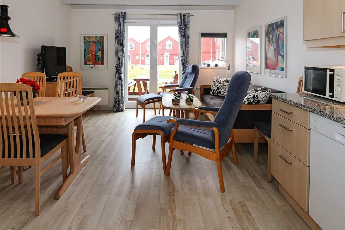 Ferienwohnung in bester Lage, nahe des kinderfreundlichen Strandufers und des kleinen Hafens in Øster Hurup. Die Wohnung hat einen offenen Küchen-/Wohnbereich mit Ess- und Sitzecke sowie ein Badezimmer im Erdgeschoss. Im Dachgeschoss des Reihenhauses finden Sie zwei Schlafzimmer; eines mit Doppelbett, das zweite mit zwei Einzelbetten. Auf dem Treppenabsatz steht zudem ein Schlafsofa bereit. Die großen Gemeinschaftsareale draußen laden zum Spielen ein.