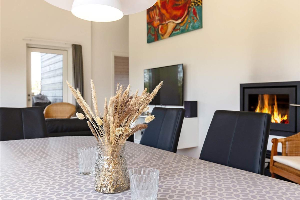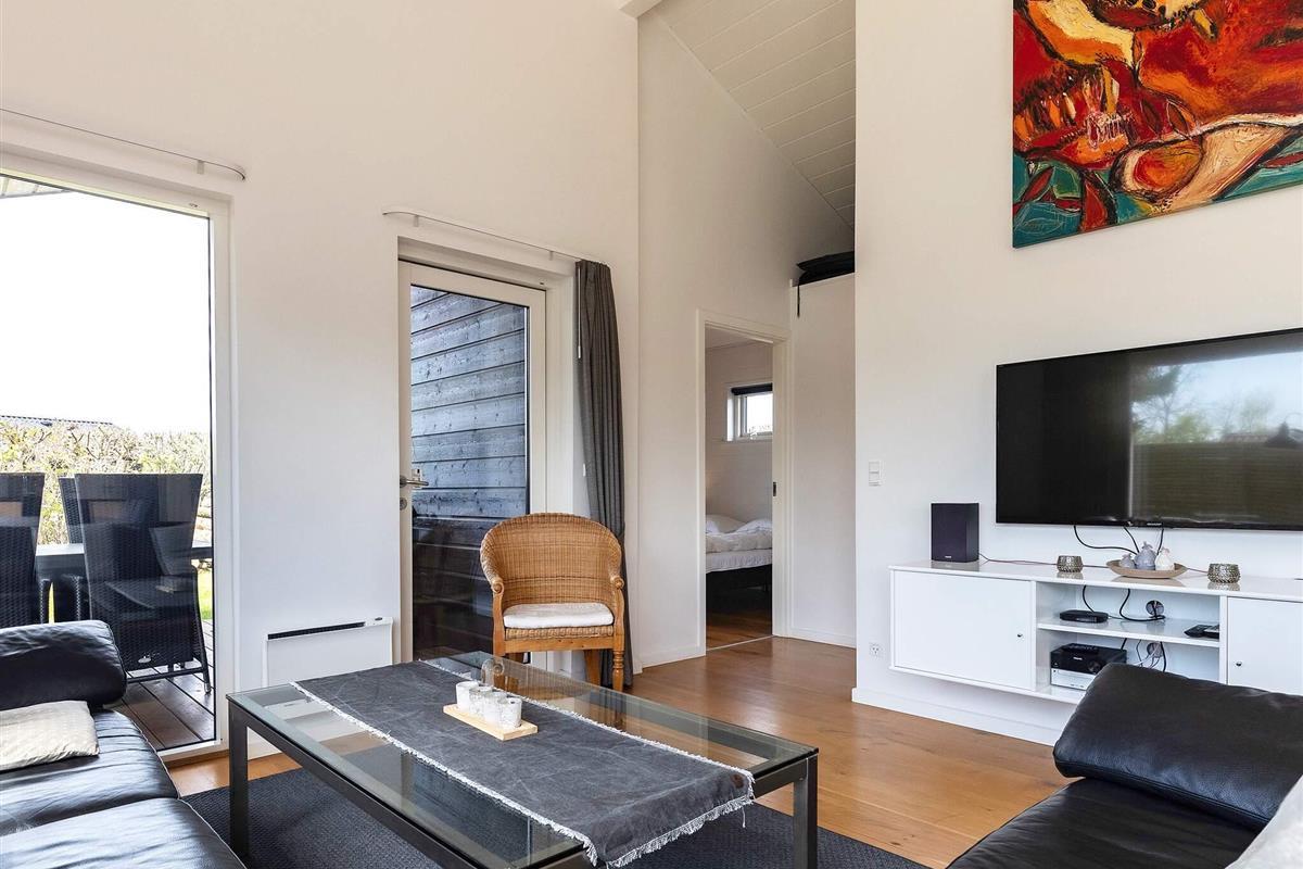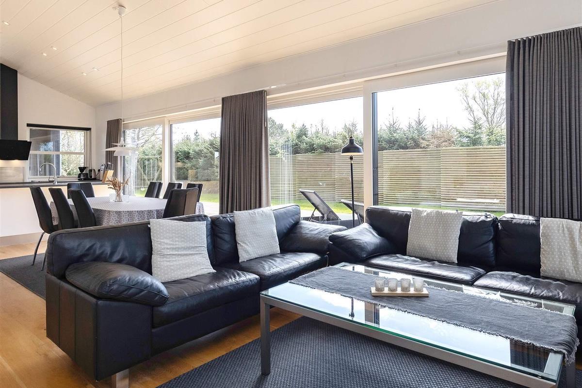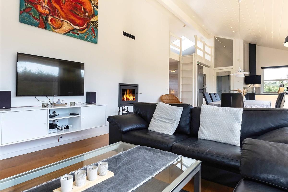 Ferienhaus mit Whirlpool und Sauna. Großes, helles Wohnzimmer, das offen