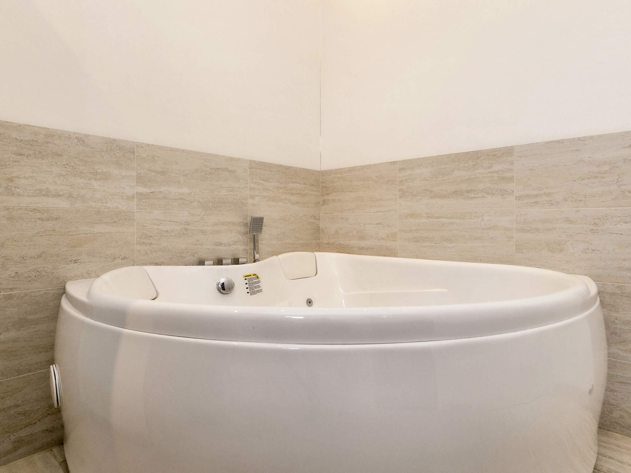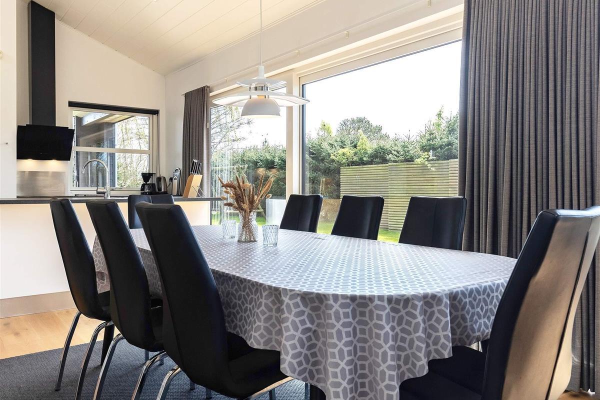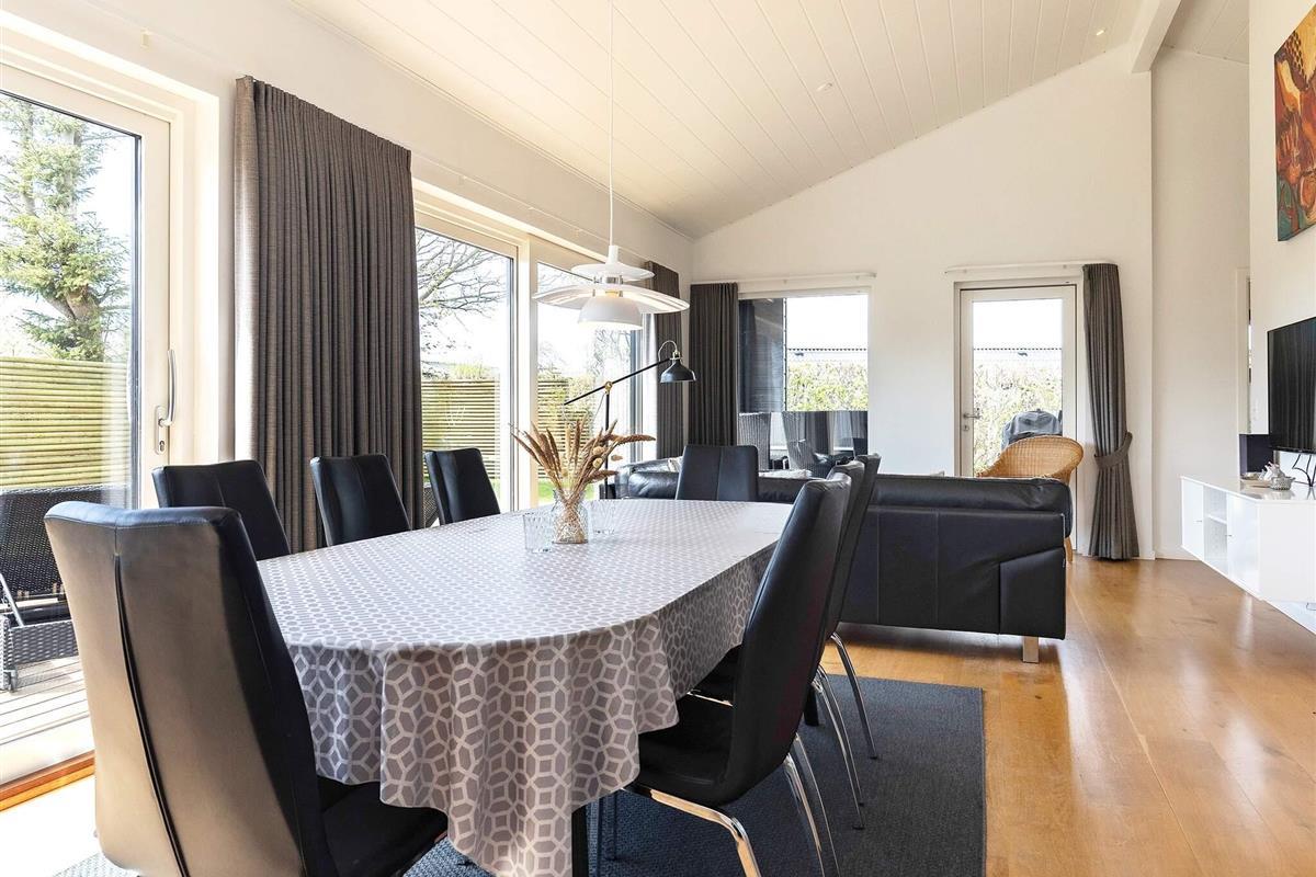 Ferienhaus mit Whirlpool und Sauna. Großes, helles Wohnzimmer, das offen