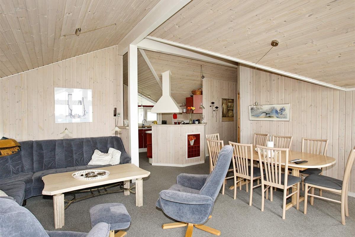 Eine herrliche Lage mit Blick auf das Kattegat erwartet Sie in diesem modernen, funktionellen Ferienhaus. Gut ausgestatteter Küchen-Wohnbereich, u.a. mit Holzofen. Die Betten in den SZ können auch als Einzelbetten auseinandergestellt werden. Im großen Bad erwartet Sie ein Whirlpool für entspannende Stunden, und draußen lädt die Terrasse zum Sonnenbaden und der Rasen zum Toben ein. Keine Vermietung an Jugendgruppen.