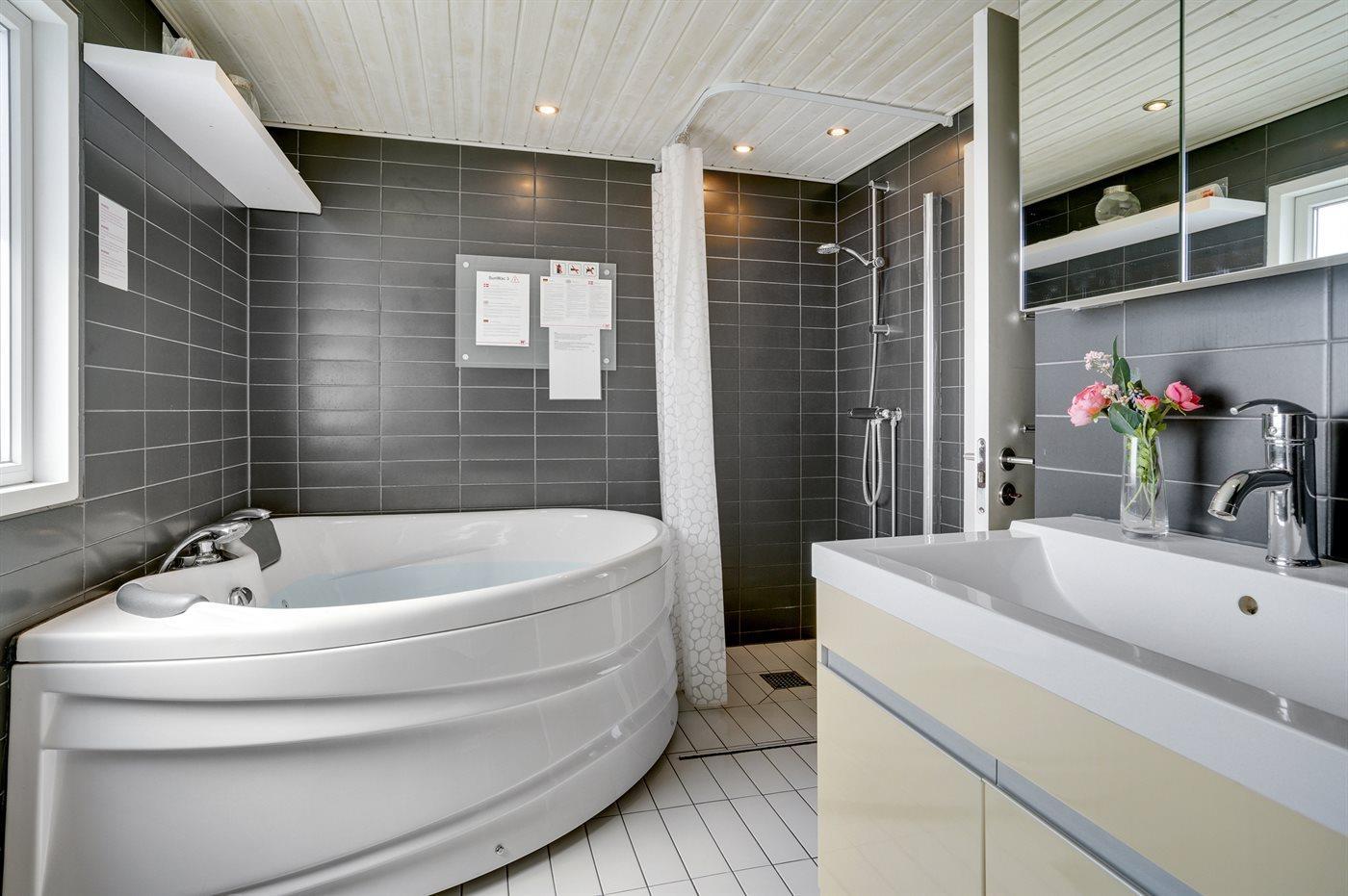 Er is 2 badkamers met douchehok en 2 toiletten. Er is vloerverwarming in 2 van de badkamers.