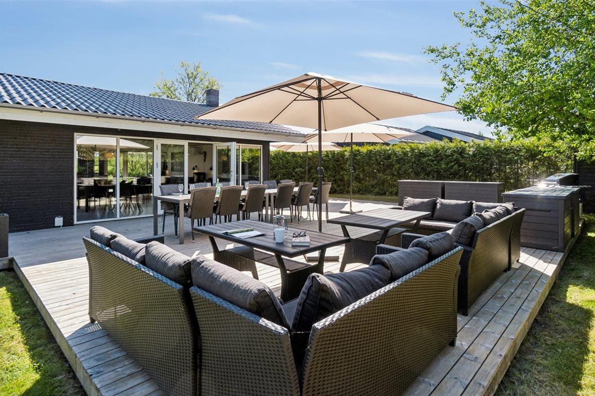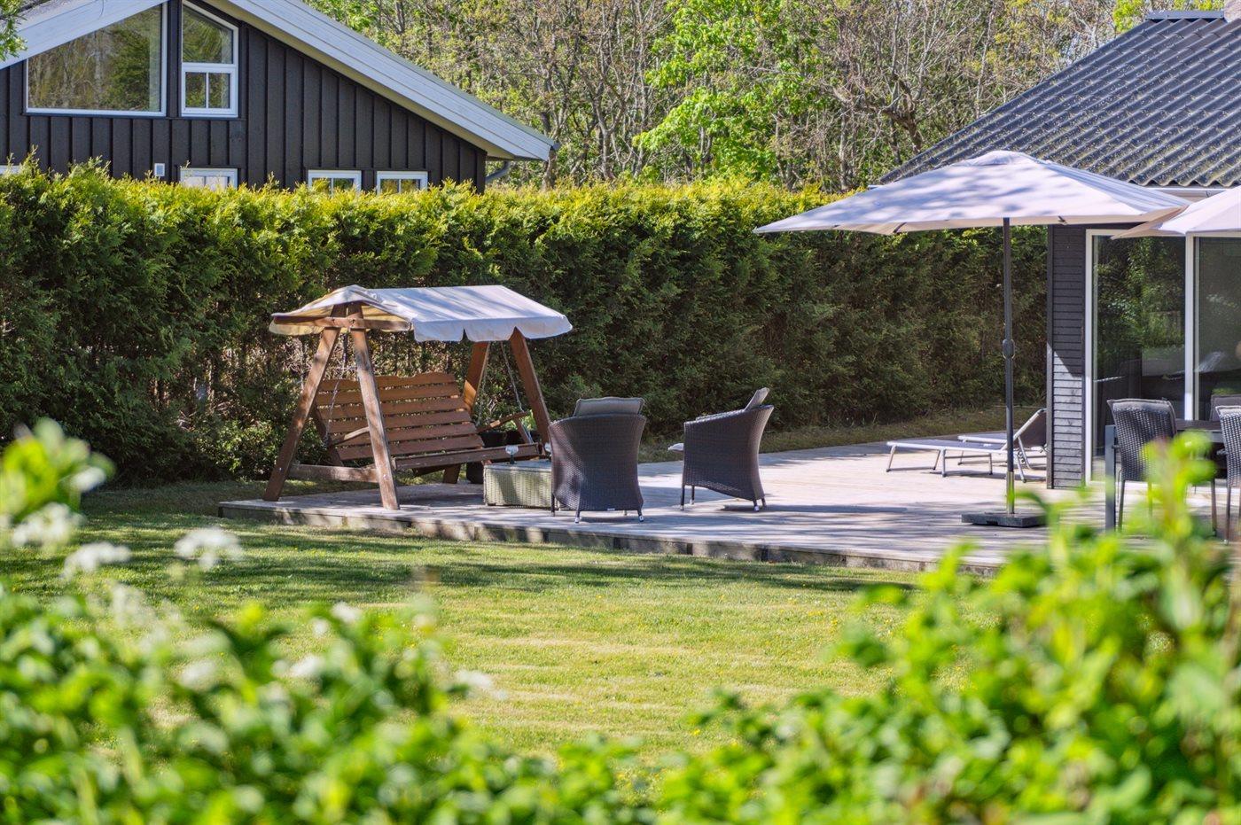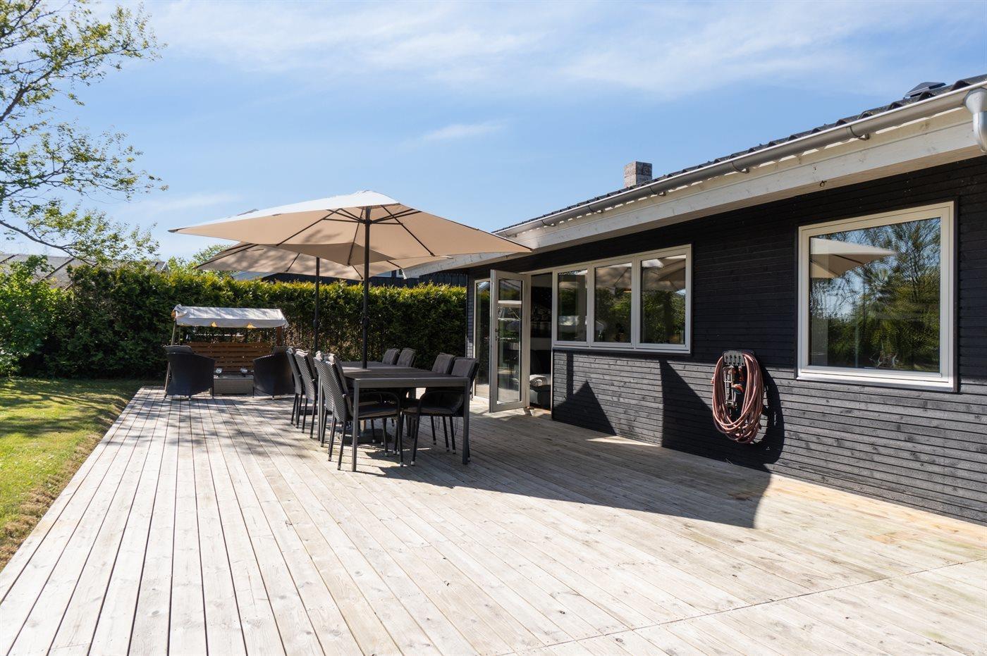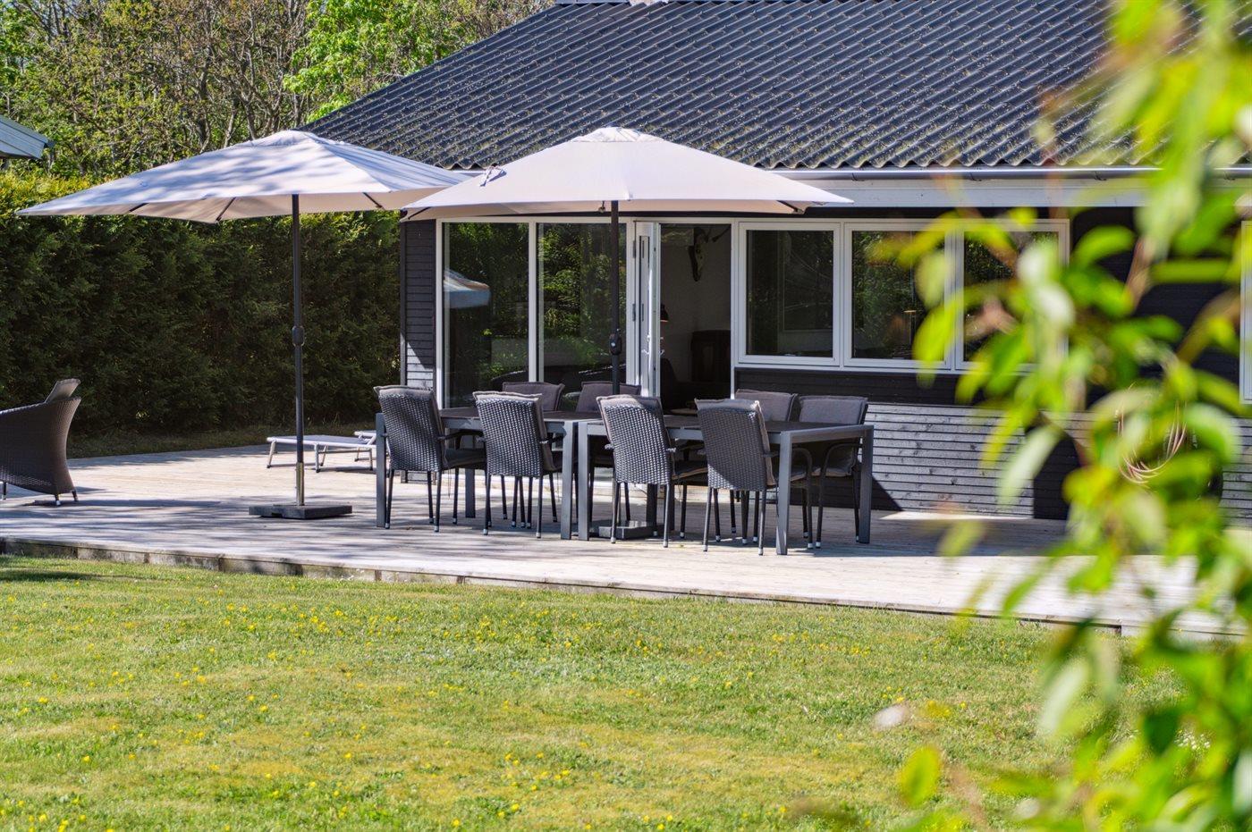 De vakantiewoning is gelegen op een 853 m² groot aangelegde tuin. Afstand tot de zee 50 m. Dichtstbijzijnde winkel 2500 m. Bij de vakantiewoning hoort 330 m² terras. Barbecue. Parkeerplaats bij het huis.