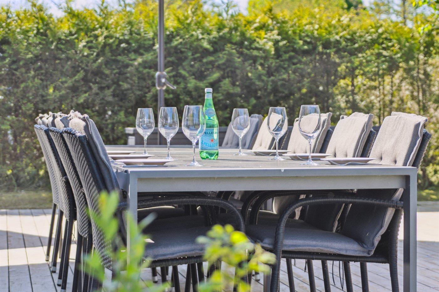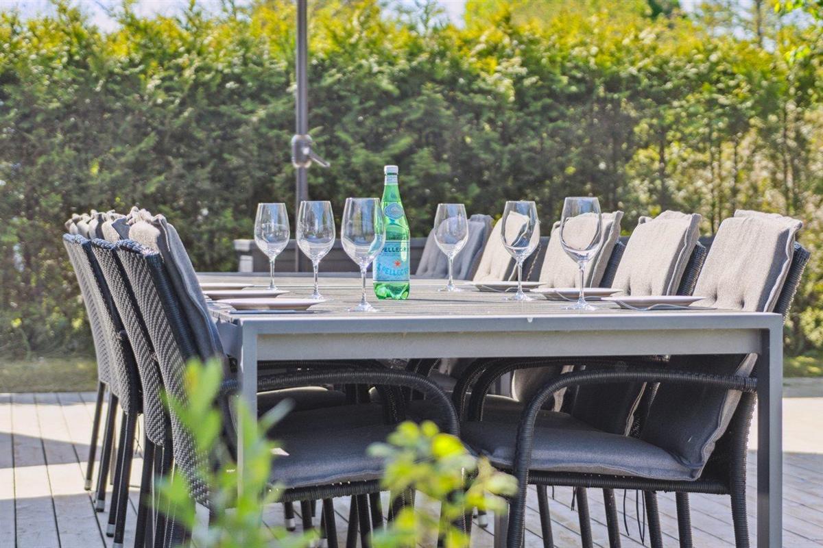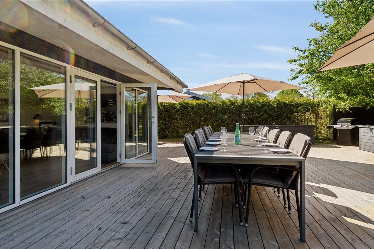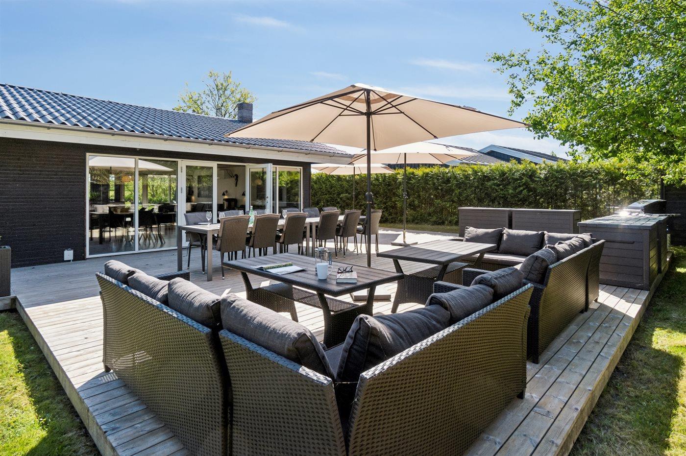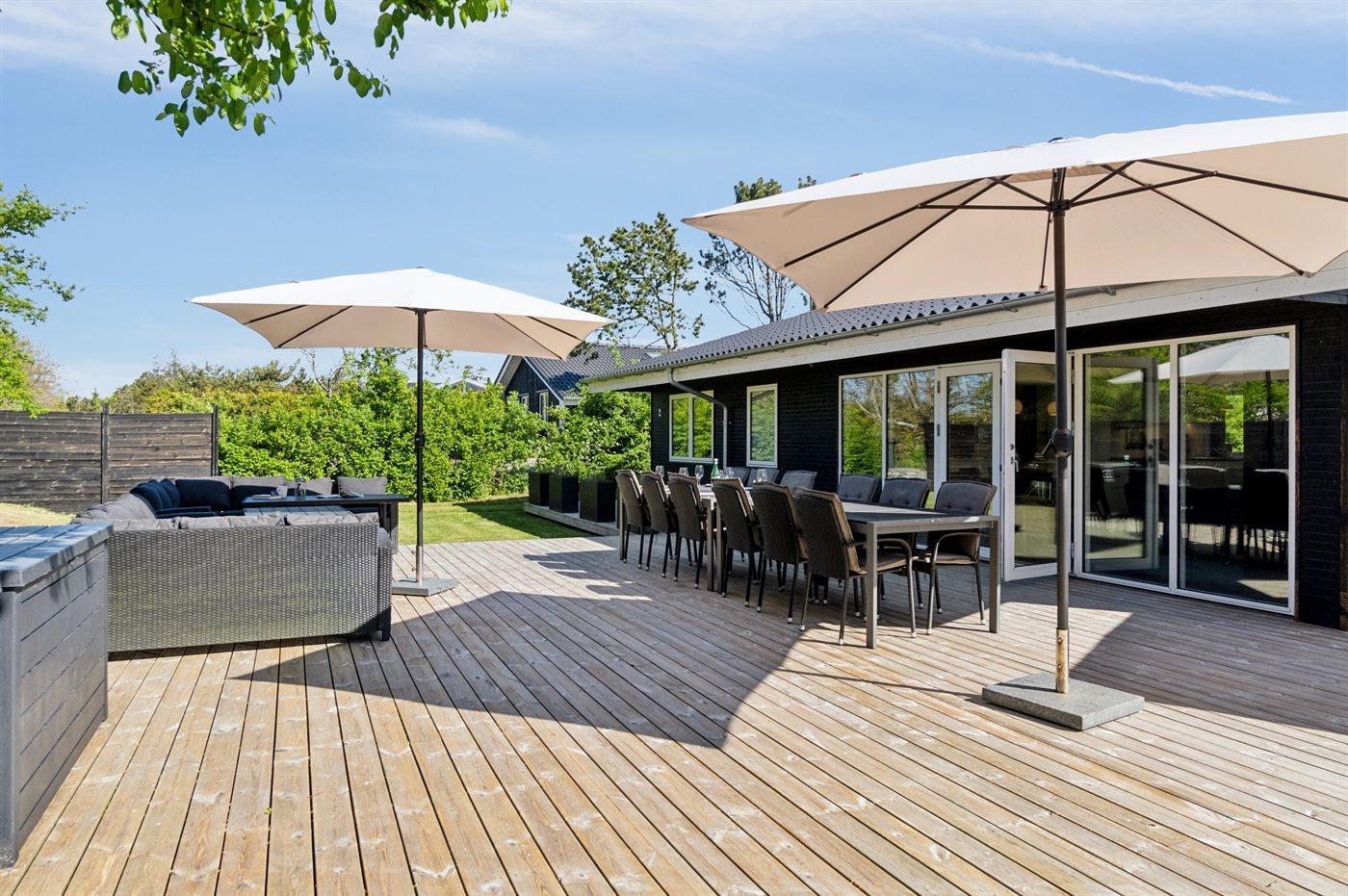 De vakantiewoning is gelegen op een 853 m² groot aangelegde tuin. Afstand tot de zee 50 m. Dichtstbijzijnde winkel 2500 m. Bij de vakantiewoning hoort 330 m² terras. Barbecue. Parkeerplaats bij het huis.