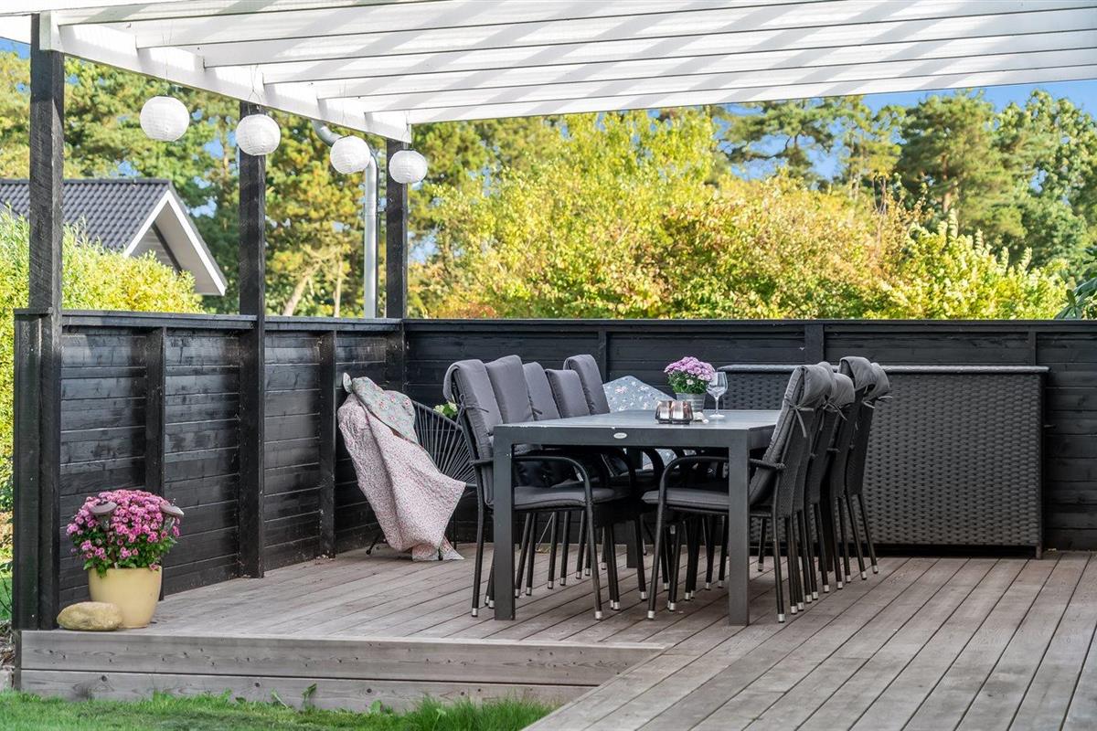 De vakantiewoning is gelegen op een 1200 m² groot aangelegde tuin. De grond is omheind. Afstand tot de zee 500 m. Dichtstbijzijnde winkel 3000 m. Er is een golfbaan op een afstand van 18000 m. Bij de vakantiewoning hoort terras. Daarnaast is er een overdekt terras. Schommel. Trampoline. Glijbaan. Voetbaldoel.Vuurplaats. Barbecue. Parkeerplaats bij het huis.