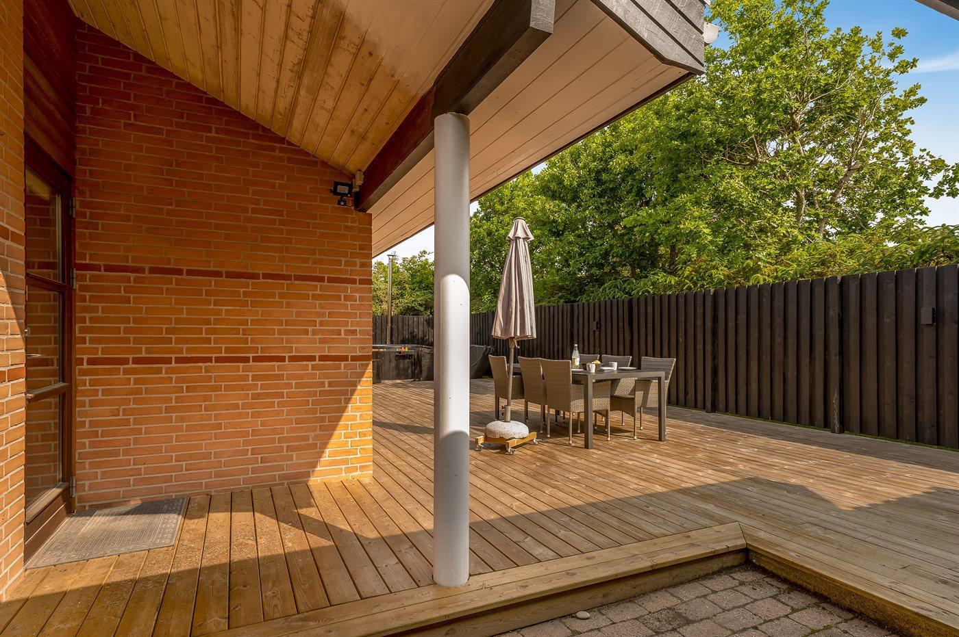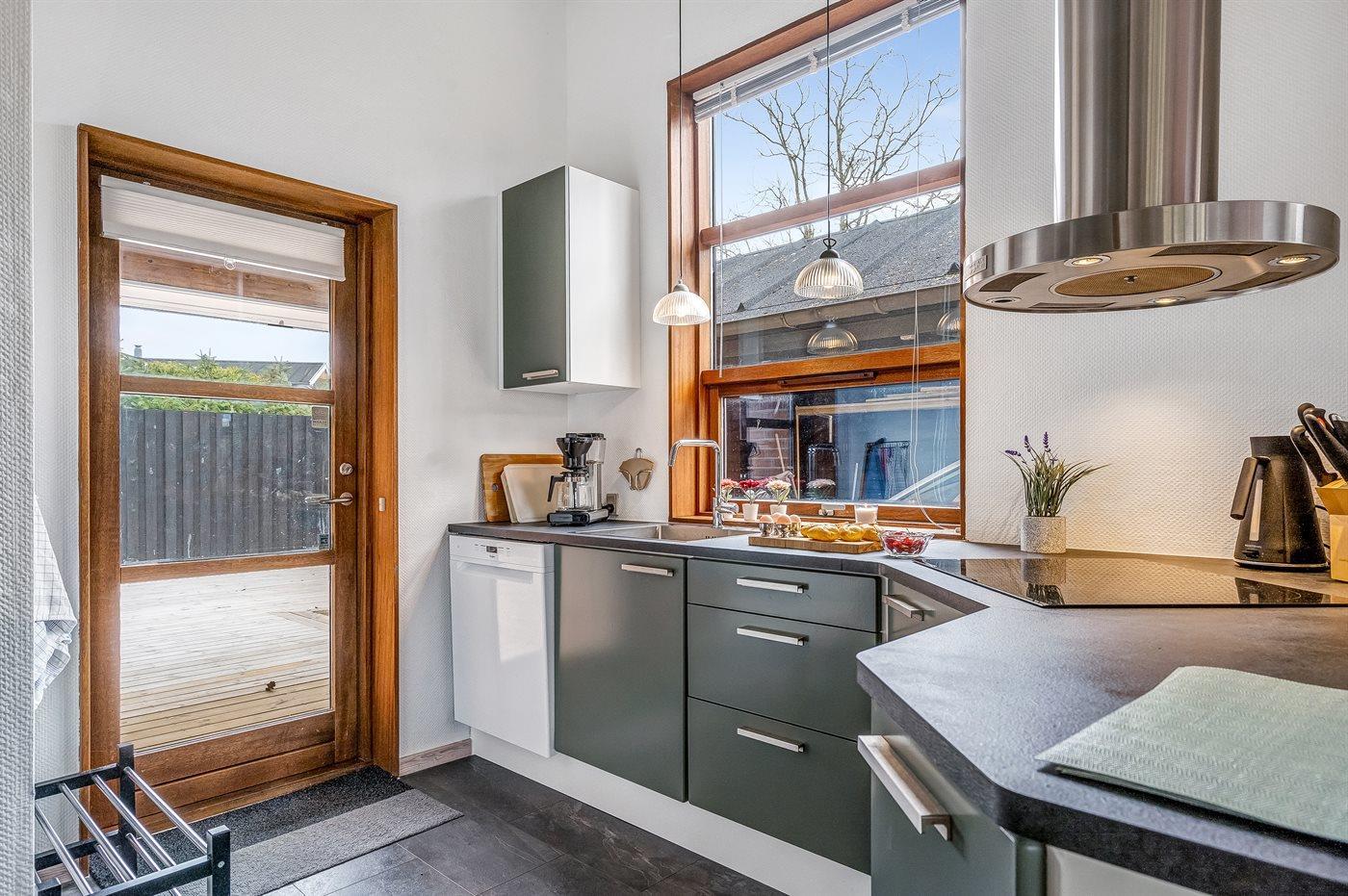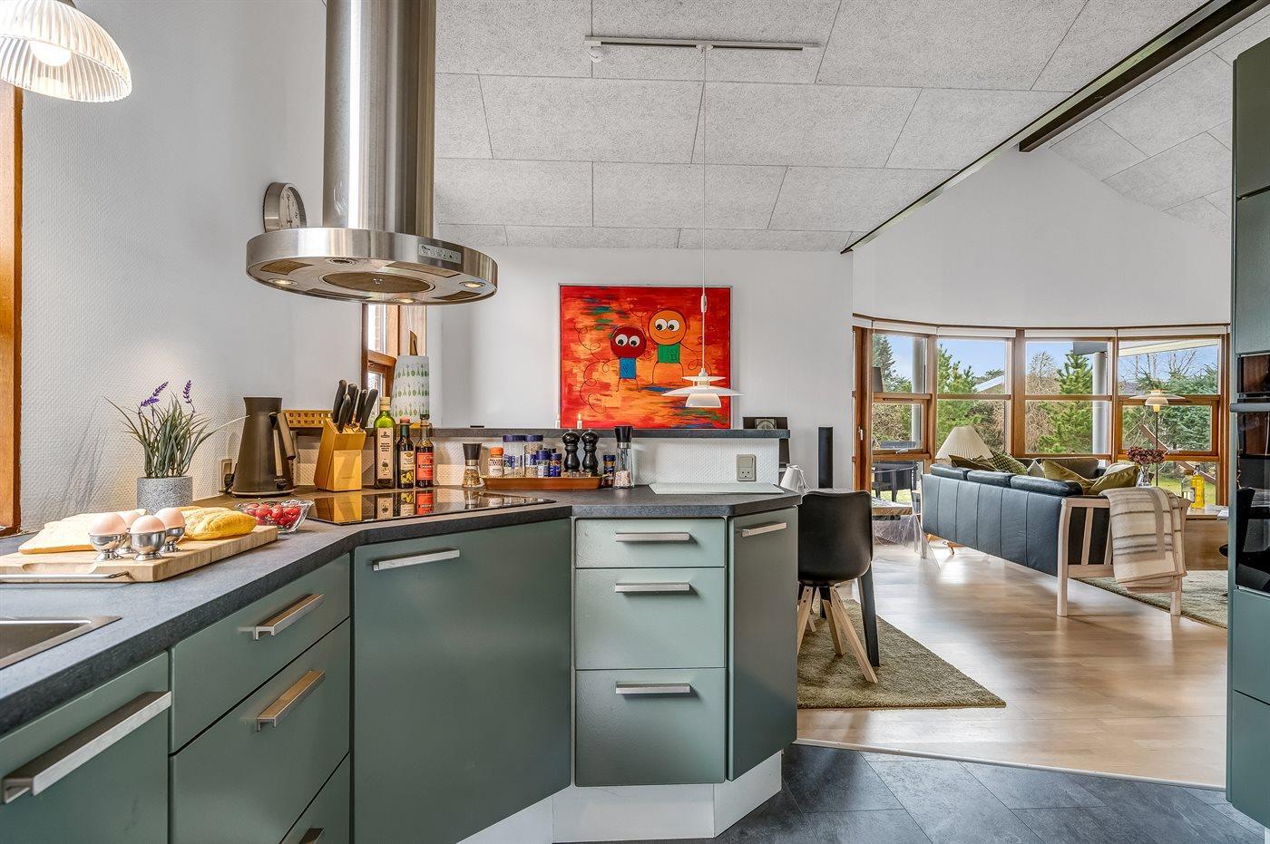 De vakantiewoning is gelegen op een 914 m² groot aangelegde tuin. Afstand tot de zee 170 m. Afstand tot de fjord 9300 m. Dichtstbijzijnde winkel 9300 m. Er is een golfbaan op een afstand van 16800 m. Bij de vakantiewoning hoort terras. Daarnaast is er een overdekt terras. Barbecue. Parkeerplaats bij het huis.
