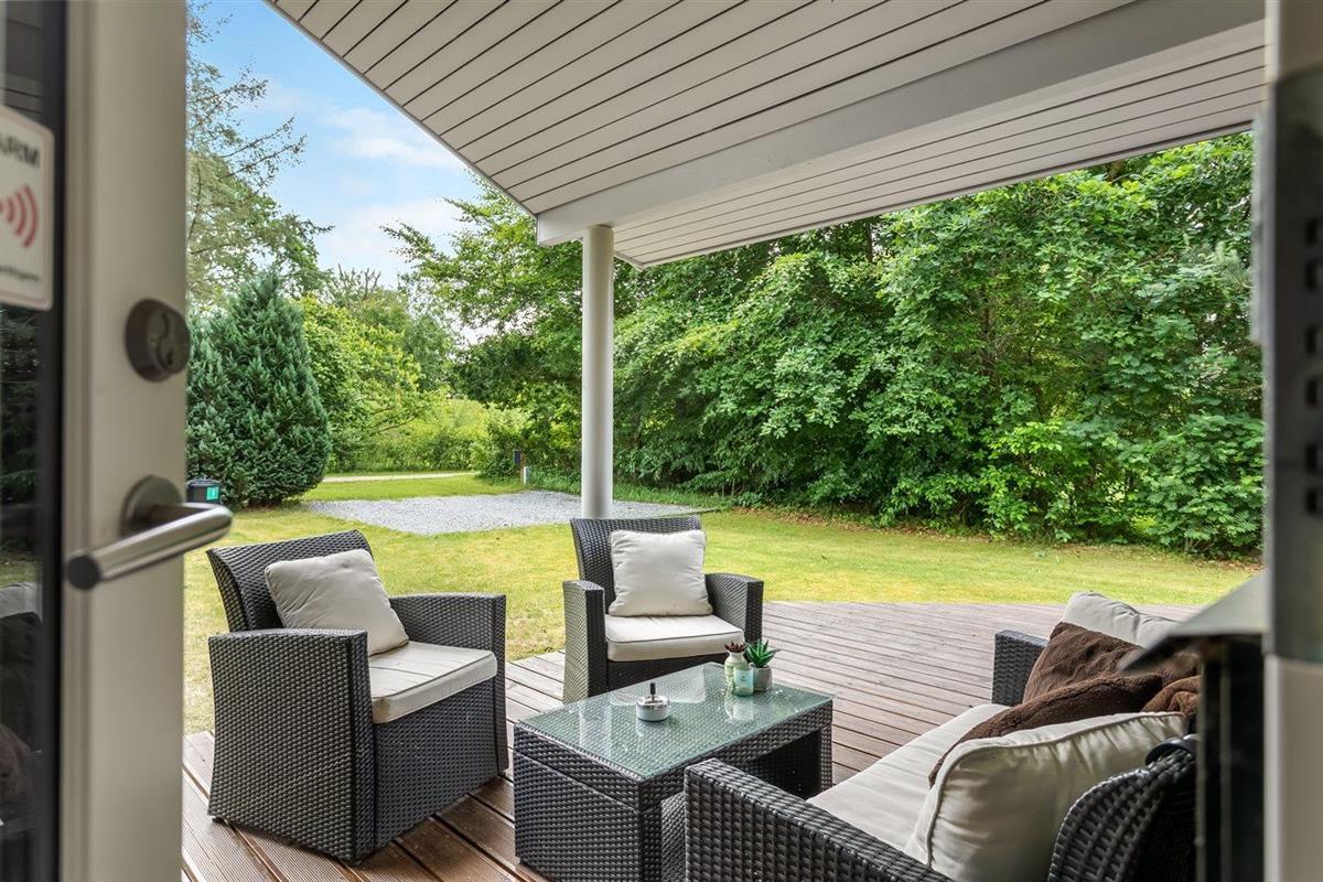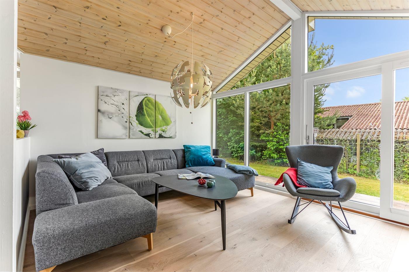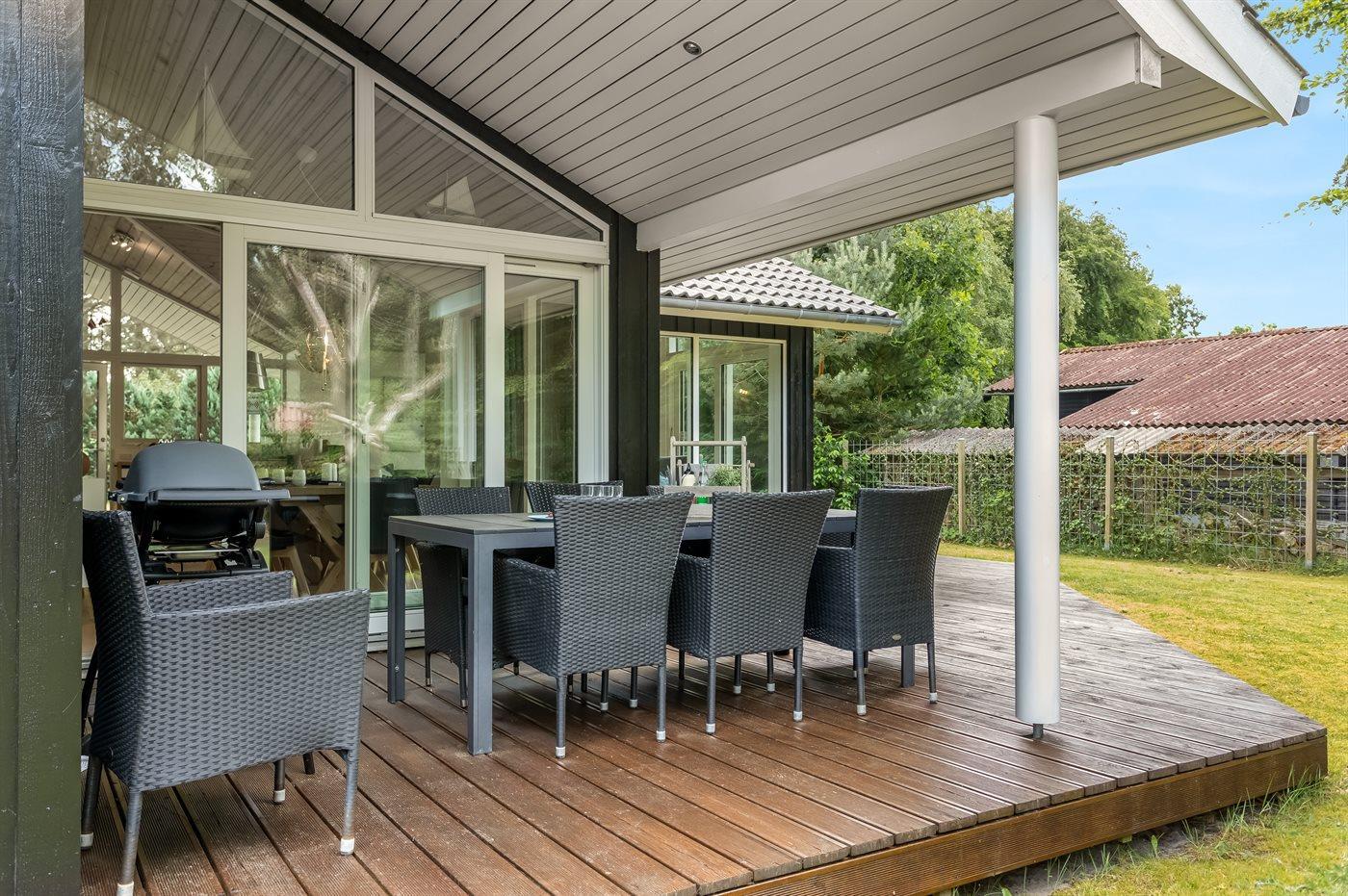 De vakantiewoning is gelegen op een 801 m² groot aangelegde tuin. Afstand tot de zee 350 m. Afstand tot de fjord 8700 m. Er is een zwemsteiger in de buurt. Dichtstbijzijnde winkel 3000 m. Er is een golfbaan op een afstand van 14600 m. Bij de vakantiewoning hoort 40 m² terras. Daarnaast is er een 20 m² groot overdekt terras. Barbecue. Parkeerplaats bij het huis.