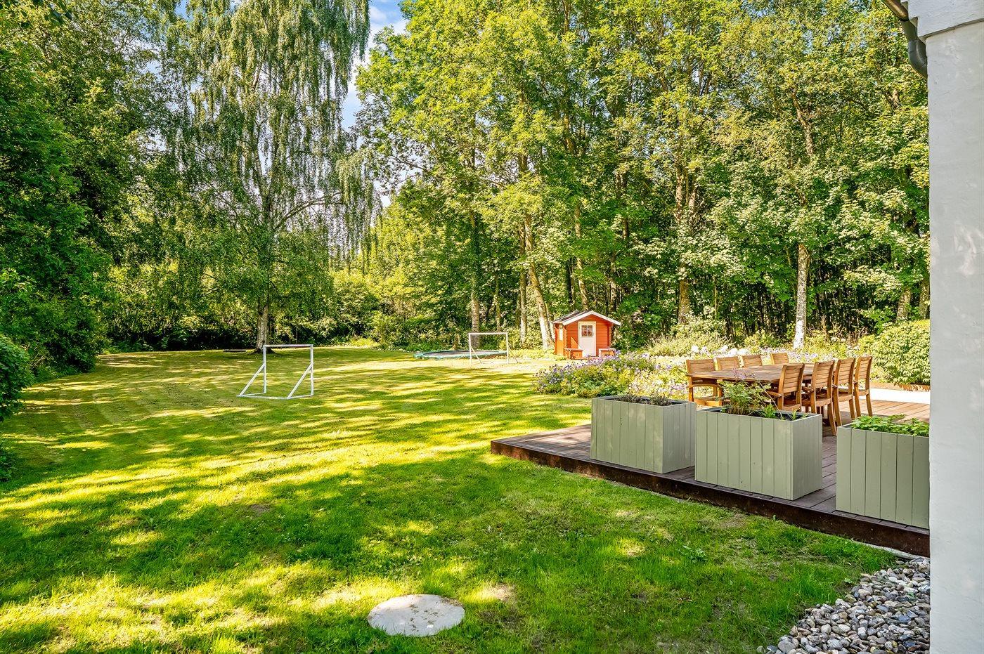 De vakantiewoning is gelegen op een 4155 m² groot aangelegde tuin. Afstand tot de zee 9500 m. Afstand tot de fjord 1400 m. Dichtstbijzijnde winkel 2900 m. Er is een golfbaan op een afstand van 5700 m. Bij de vakantiewoning hoort terras. Schommel. Zandbak. Speelhuisje. Trampoline. Voetbaldoel. Barbecue. Parkeerplaats bij het huis.