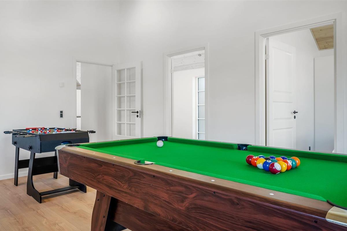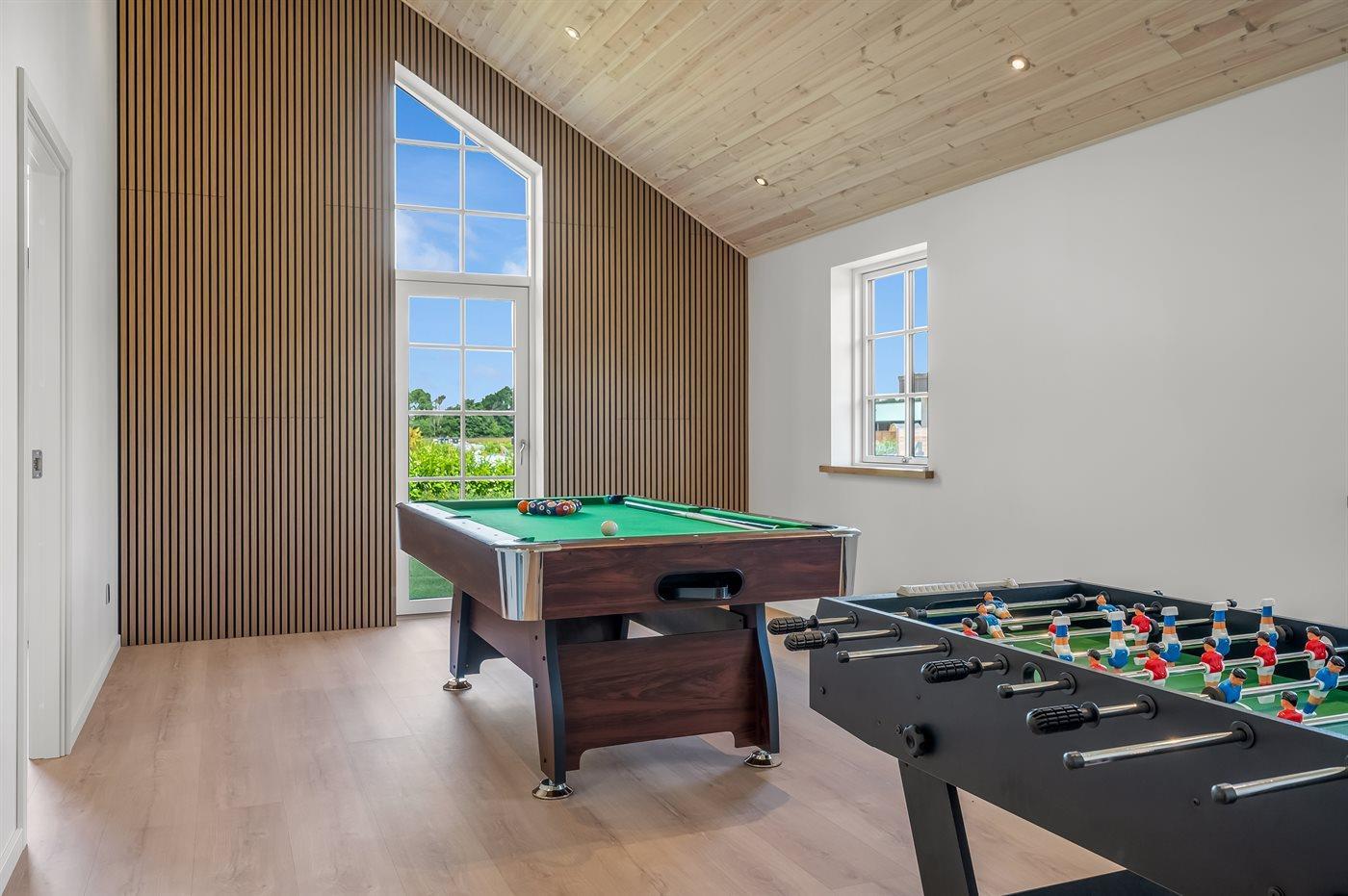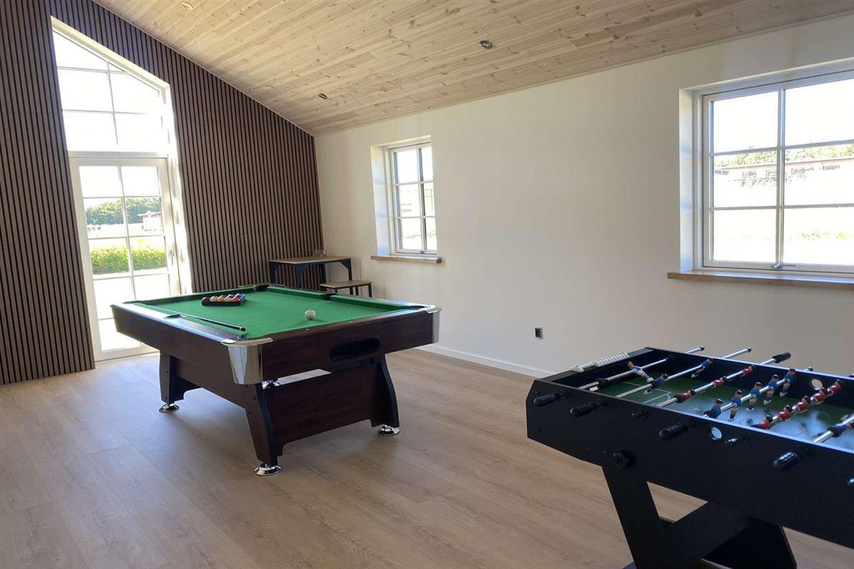 Activiteitenruimte. Pooltafe. Dart. Tafelvoetbal. Bartafel met 2 krukken.