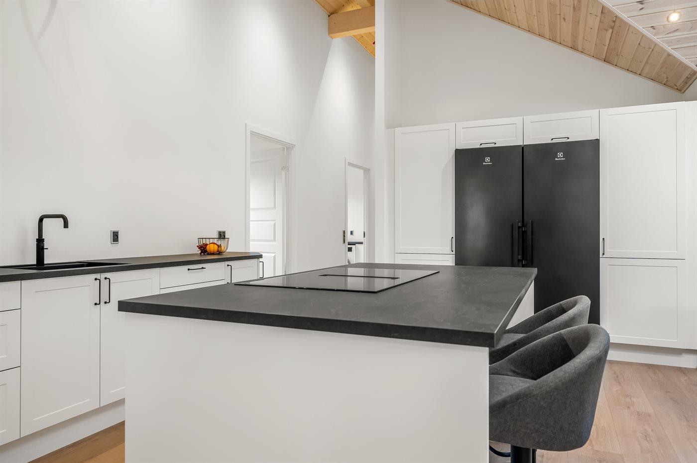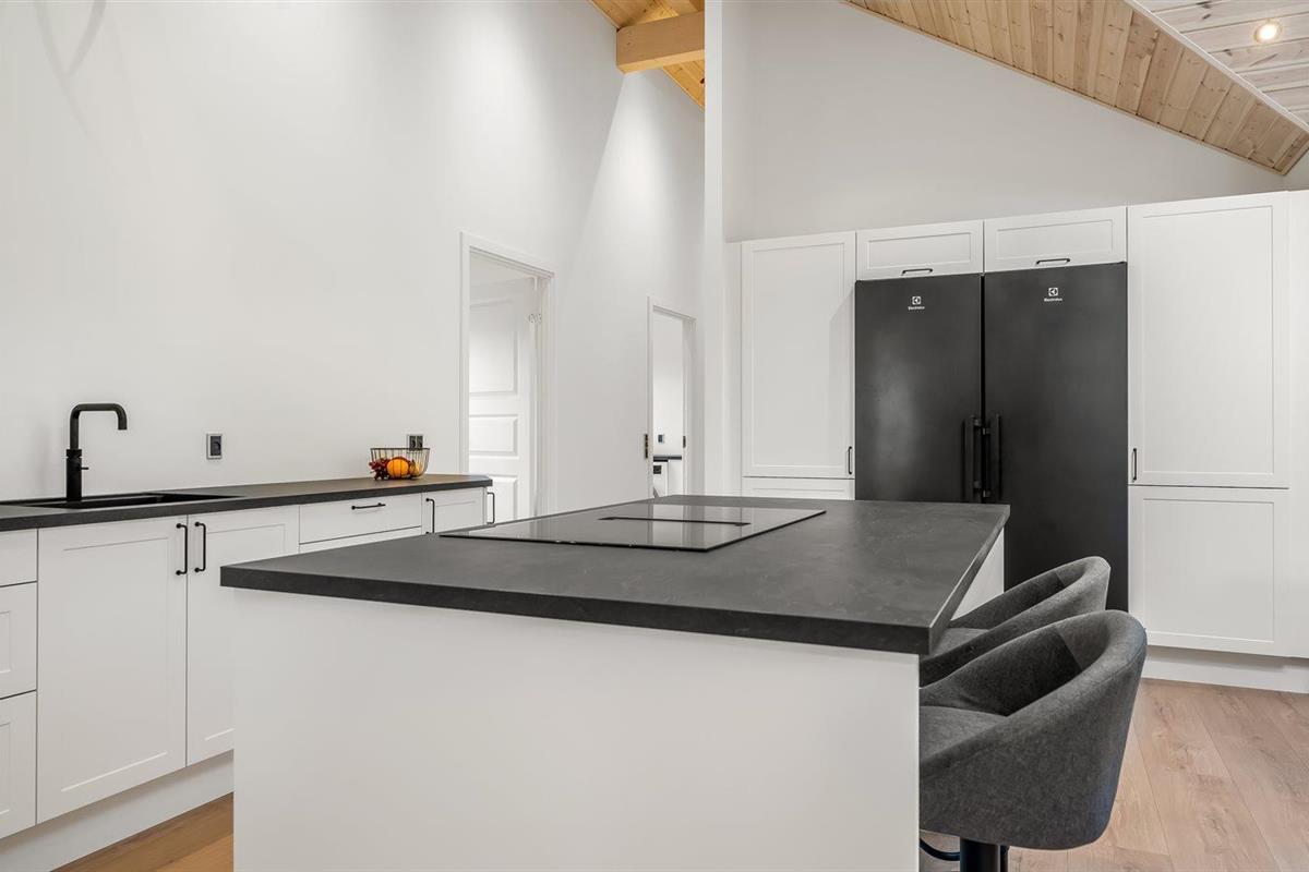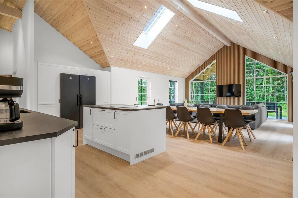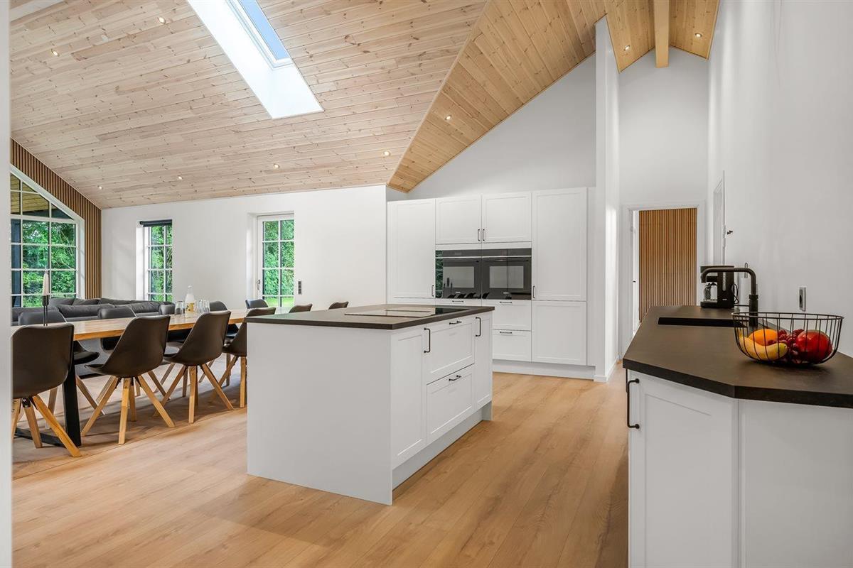 De keuken is uitgerust met koelkast Er is 4 inductiekookplaten, heteluchtoven, magnetron en vaatwasser. Er is bovendien een Quooker beschikbaar.