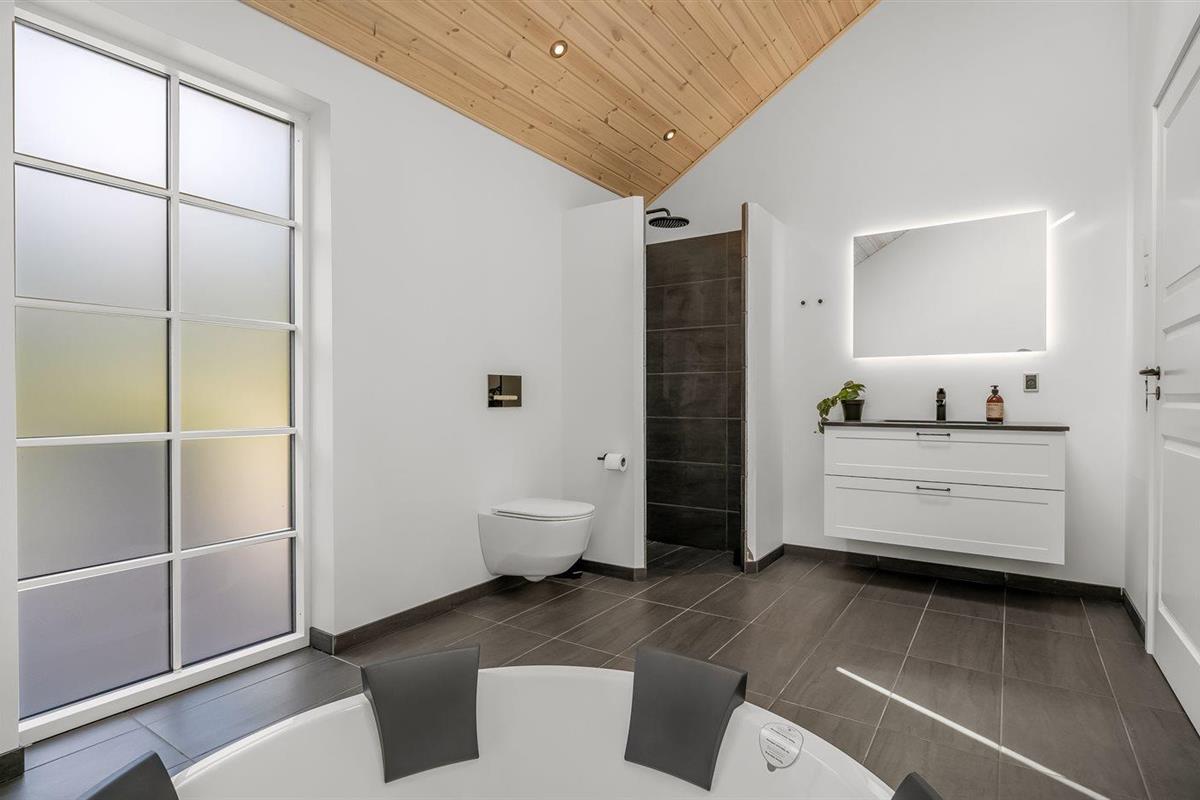 Er is 2 badkamers met douchehok en 2 toiletten. Er is vloerverwarming in 2 van de badkamers.