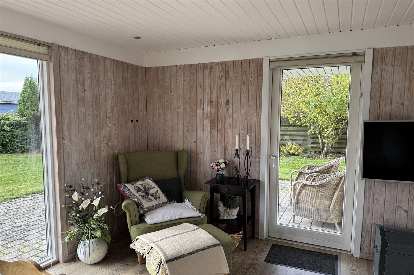 De vakantiewoning is gelegen op een 663 m² groot aangelegde tuin. Afstand tot de zee 250 m. Afstand tot de fjord 11450 m. Dichtstbijzijnde winkel 420 m. Er is een golfbaan op een afstand van 16450 m. Bij de vakantiewoning hoort terras. Daarnaast is er een overdekt terras. Barbecue. Parkeerplaats bij het huis.