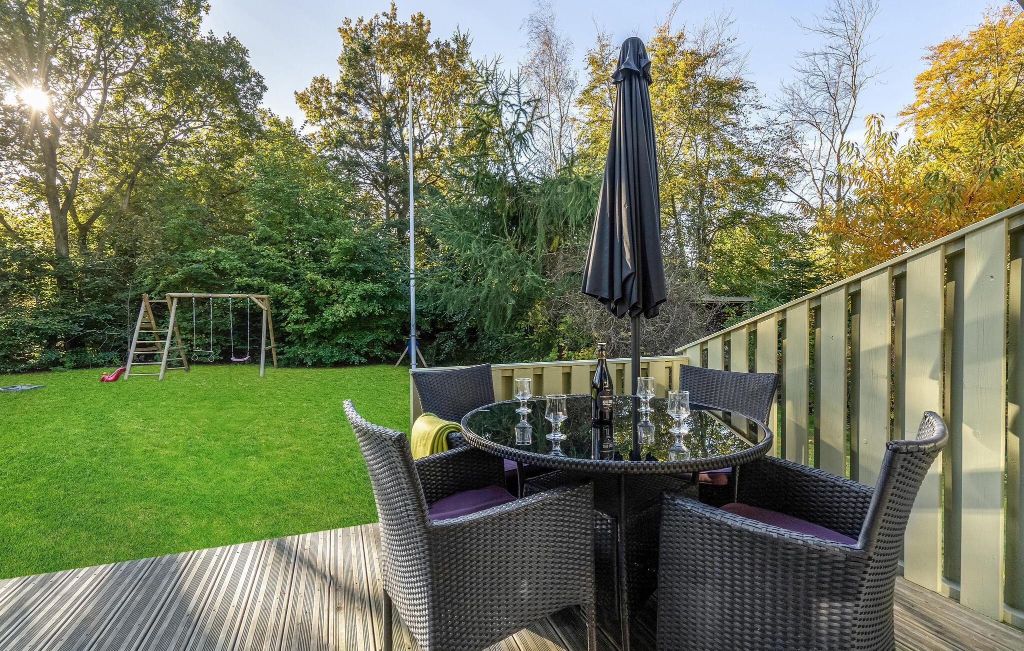 Dit mooie vakantiehuis verwelkomt maximaal 8 gasten. Het is licht en comfortabel ingericht. Ontspan in de sauna, de whirlpool of op de bank voor de open haard. In de grote tuin vindt u veel ruimte om te ontspannen en te spelen. Voor de kleintjes is er een schommel en een zandbak en voor de volwassenen een barbecue voor gezellige barbecue-avonden. Op uw deels overdekte terrassen kunt u 's ochtends ontbijten of de dag afsluiten met een glas wijn.