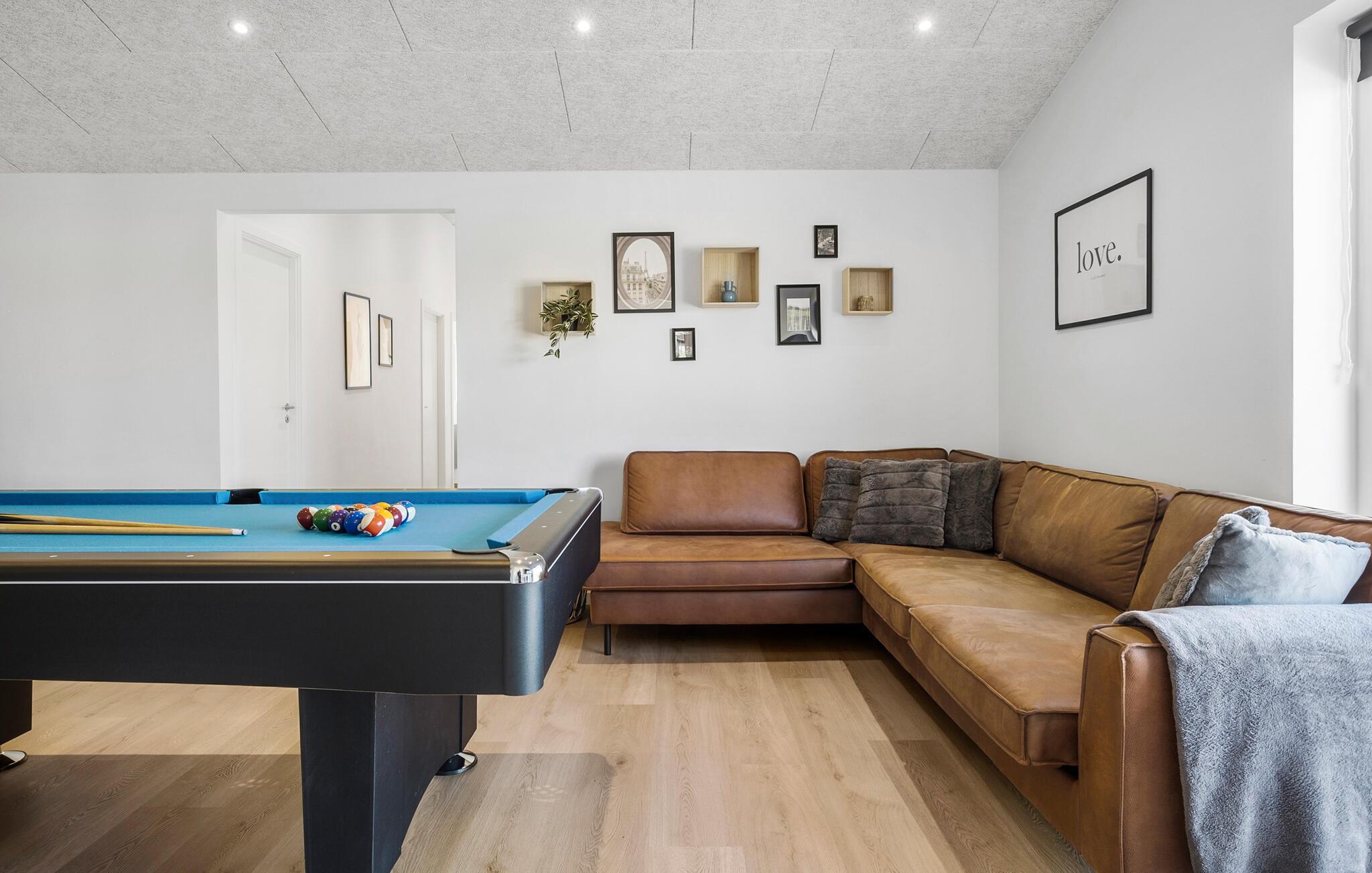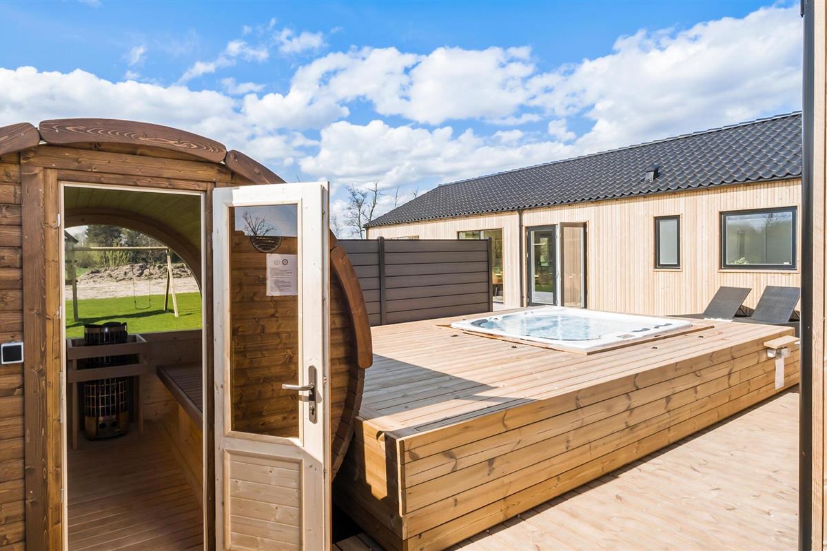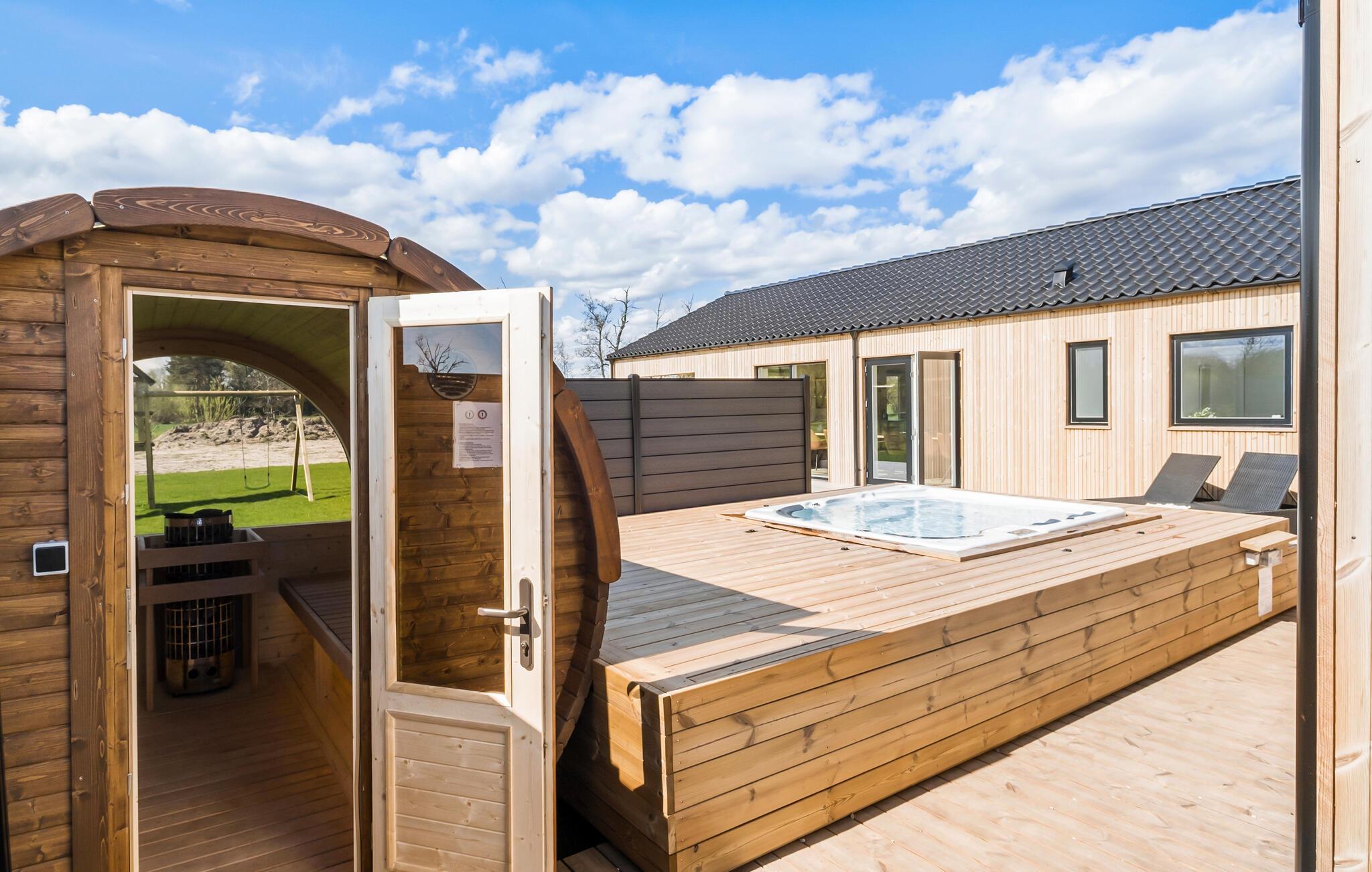 Verheug je op dit luxe huis met zwembad en geweldige outdoor wellnessruimte en reis hierheen met familie en vrienden en geniet van een rustgevende onderbreking van je dagelijkse leven. Het moderne en ruime huis heeft veel te bieden en belooft je ontspanning en vermaak. Of je nu kookt en eet in de lichte woonkeuken of jezelf uitdaagt voor een potje pool, darts of tafelvoetbal in de activiteitenruimte, je zult genieten van je tijd hier en je thuis voelen. Je kunt je ook verheugen op het binnenzwembad of door de terrasdeur naar buiten stappen, waar een whirlpool en een barrelsauna je uitnodigen om te ontspannen. Ontdek het grote en gedeeltelijk overdekte terras, de ideale setting voor BBQ's terwijl je kinderen de speeltoestellen in de tuin verkennen.