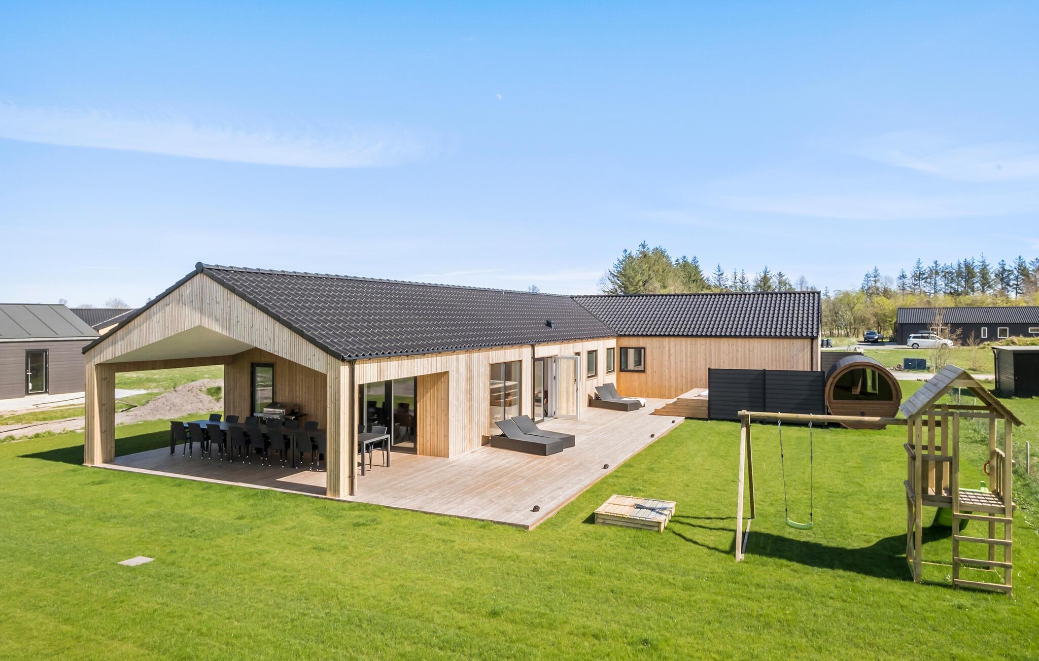 Luxe modern vakantiehuis met zwembad, wellness en speelruimte nabij het zandstrand in Øster Hurup.