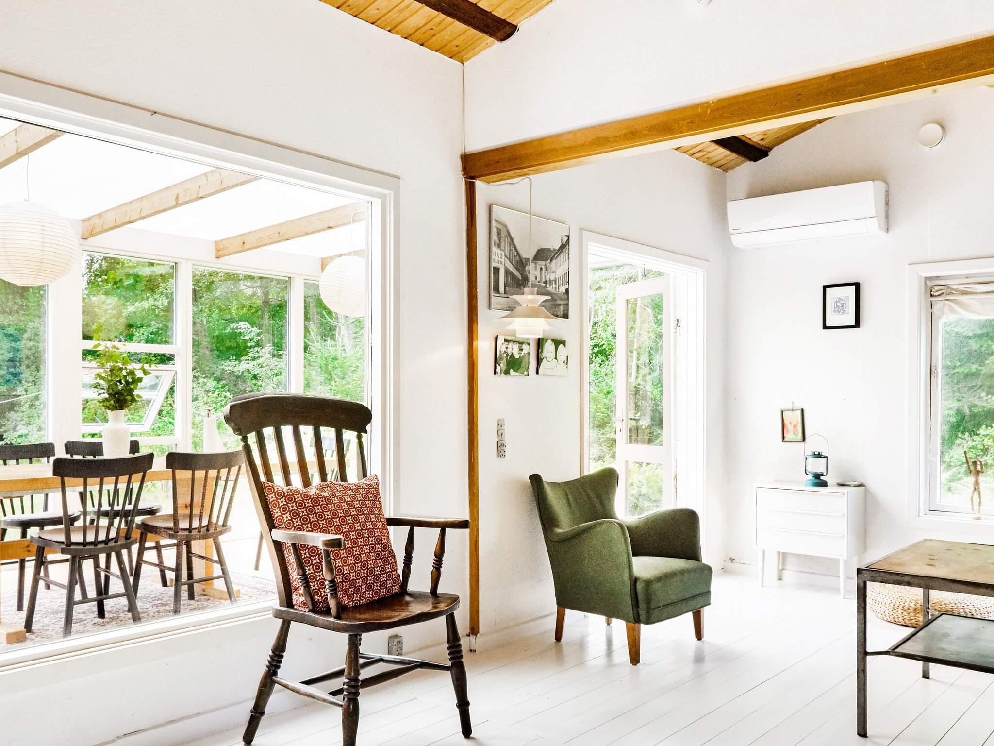Im Inneren bildet ein großer offener Küchen- und Wohnbereich das Herzstück des Hauses – ideal für gemeinsame Mahlzeiten, gemeinsames Kochen oder entspannte Stunden mit Familie und Freunden. Das Haus verfügt über drei komfortable Schlafzimmer, die erholsame Räume für einen erholsamen Schlaf bieten. Eine helle, verglaste Veranda lädt zum Entspannen mit Blick auf den Garten und die Umgebung ein.
