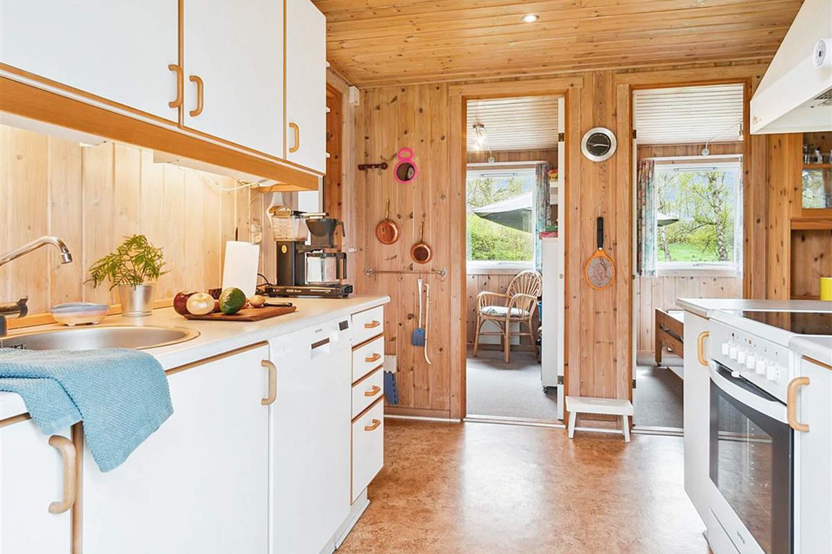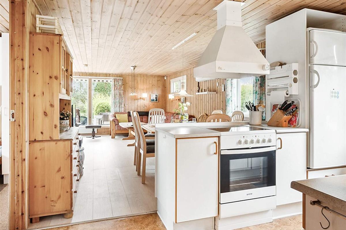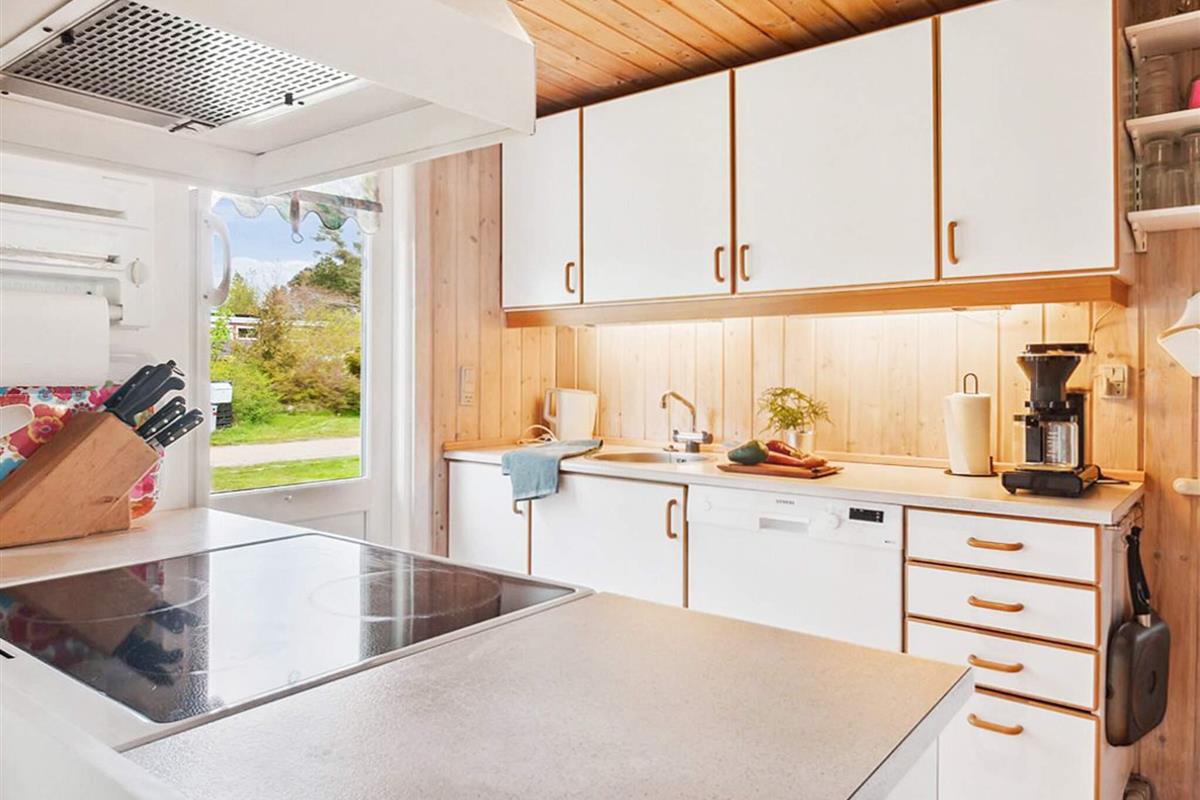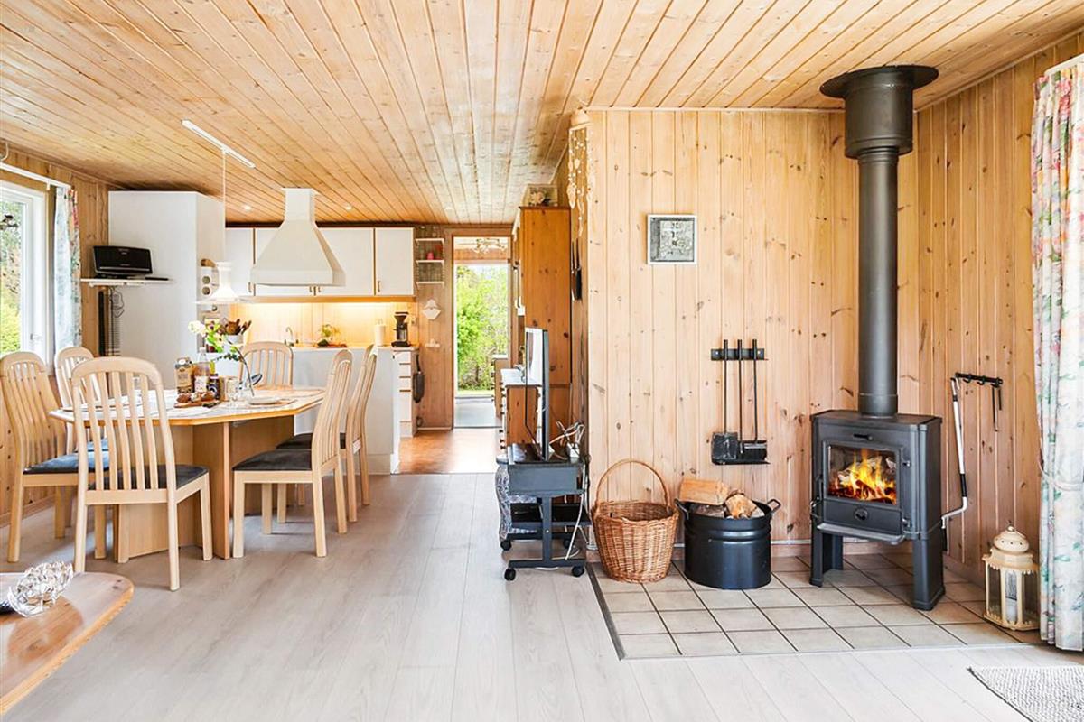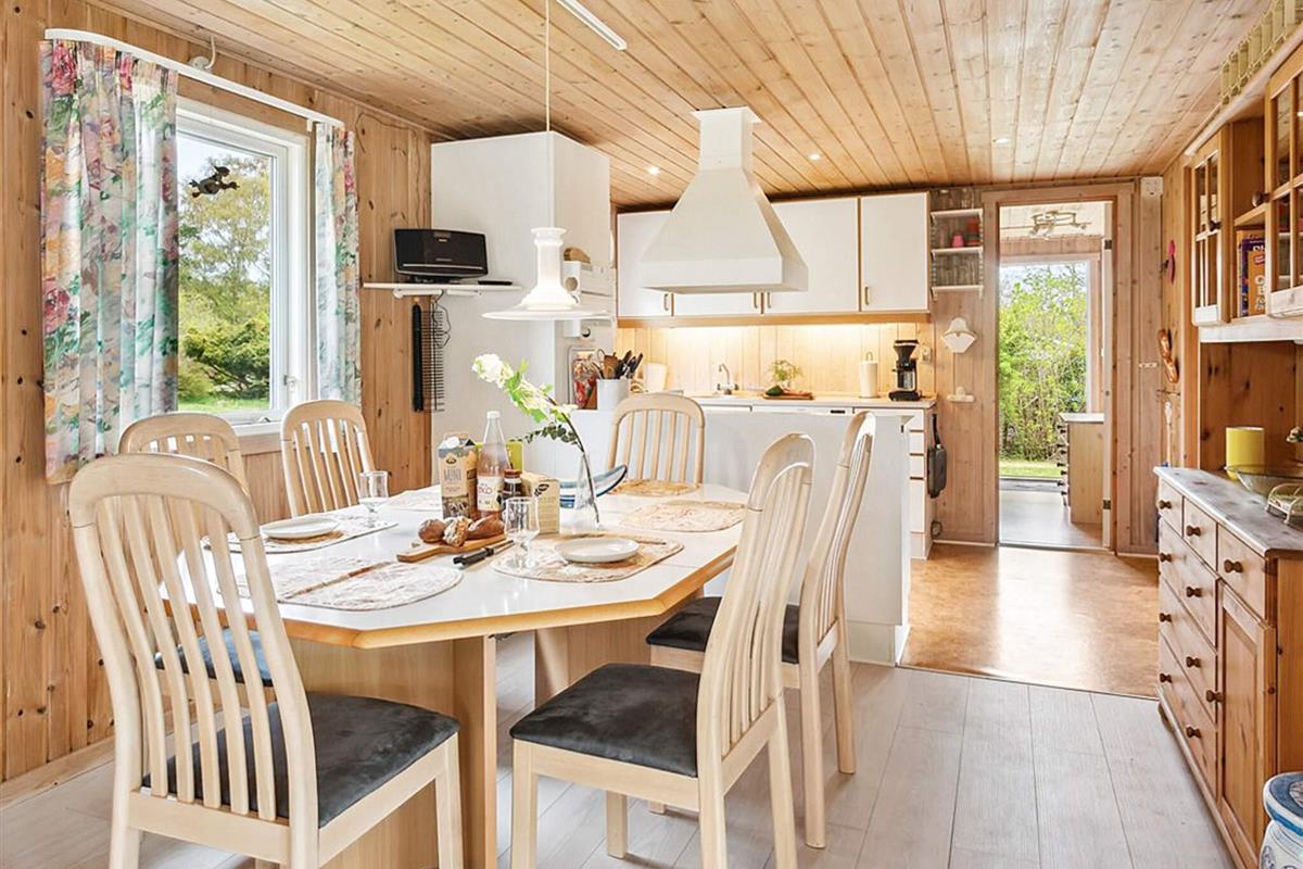 Küche, Essbereich und Wohnzimmer sind offen gestaltet und bilden einen natürlichen Treffpunkt für geselliges Beisammensein und gemeinsames Verweilen. Das Haus bietet Platz für sechs Personen. Zwei der Betten sind nur für ältere Kinder (4–11 Jahre) geeignet. Die Betten sind in zwei Doppelbetten und zwei Etagenbetten unterteilt.