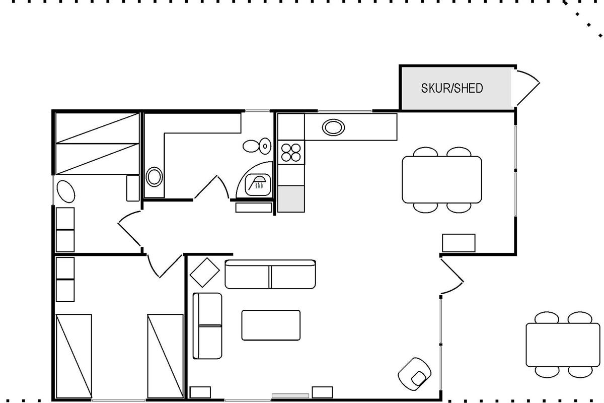 Ob vom Esstisch oder von der geschützten Terrasse - bei diesem Ferienhaus ist das Meer immer in der Nähe. Gut ausgestattete, moderne Küche, und hellem Esszimmer. gepflegtes Bad. Und zwei schöne Schlafzimmer, wobei eines mit 3/4 Bett und eines mit 2 Einzelbetten ist. Gemütliches Wohnzimmer mit Blick zum Meer. Das Grundstück am Rand von Østerby verspricht himmlische Ruhe. Kleine Steilküste am Haus, wovon man auch baden kann.