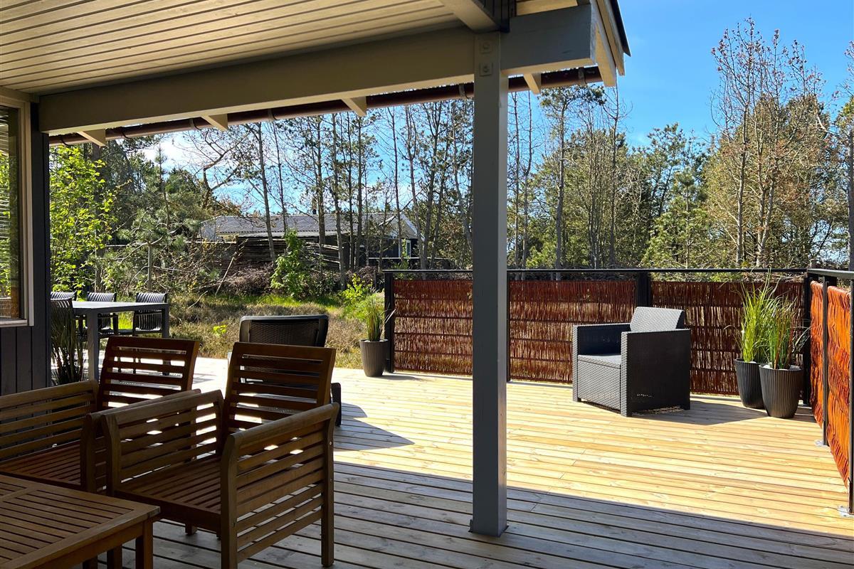 Es gibt eine Terrasse rund ums Haus, mit vielen Möglichkeiten um gemütliche Ecken in der Sonne zu finden. Darüber hinaus gibt es noch eine überdeckte Terrasse.