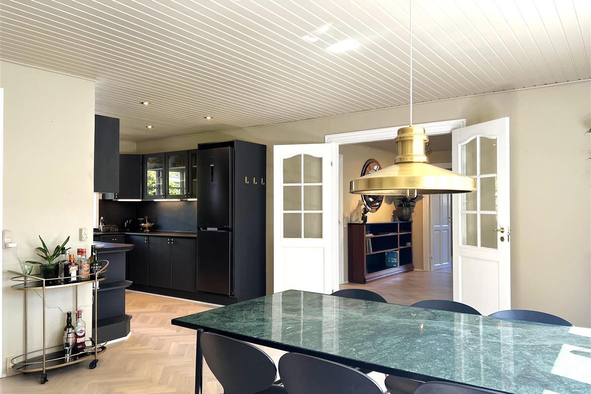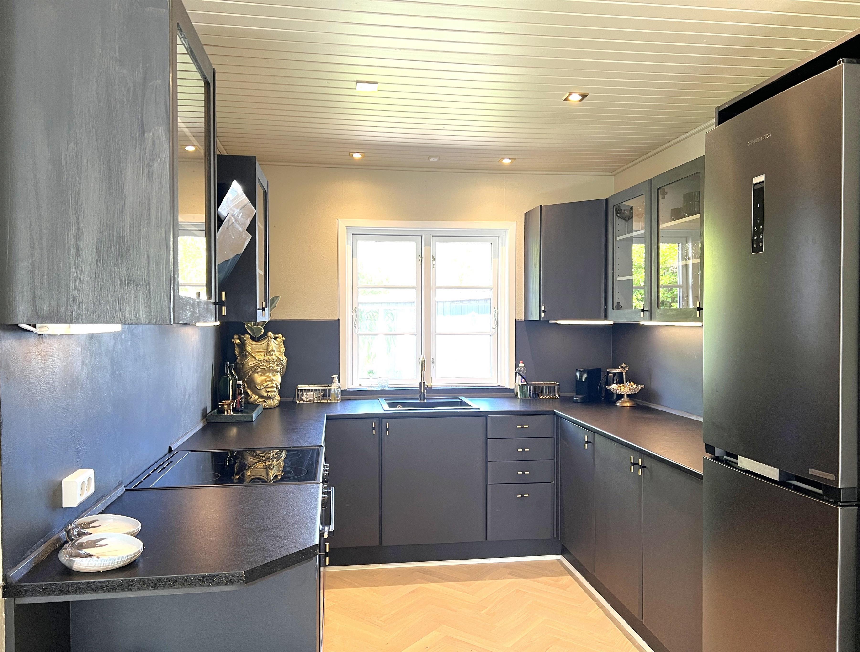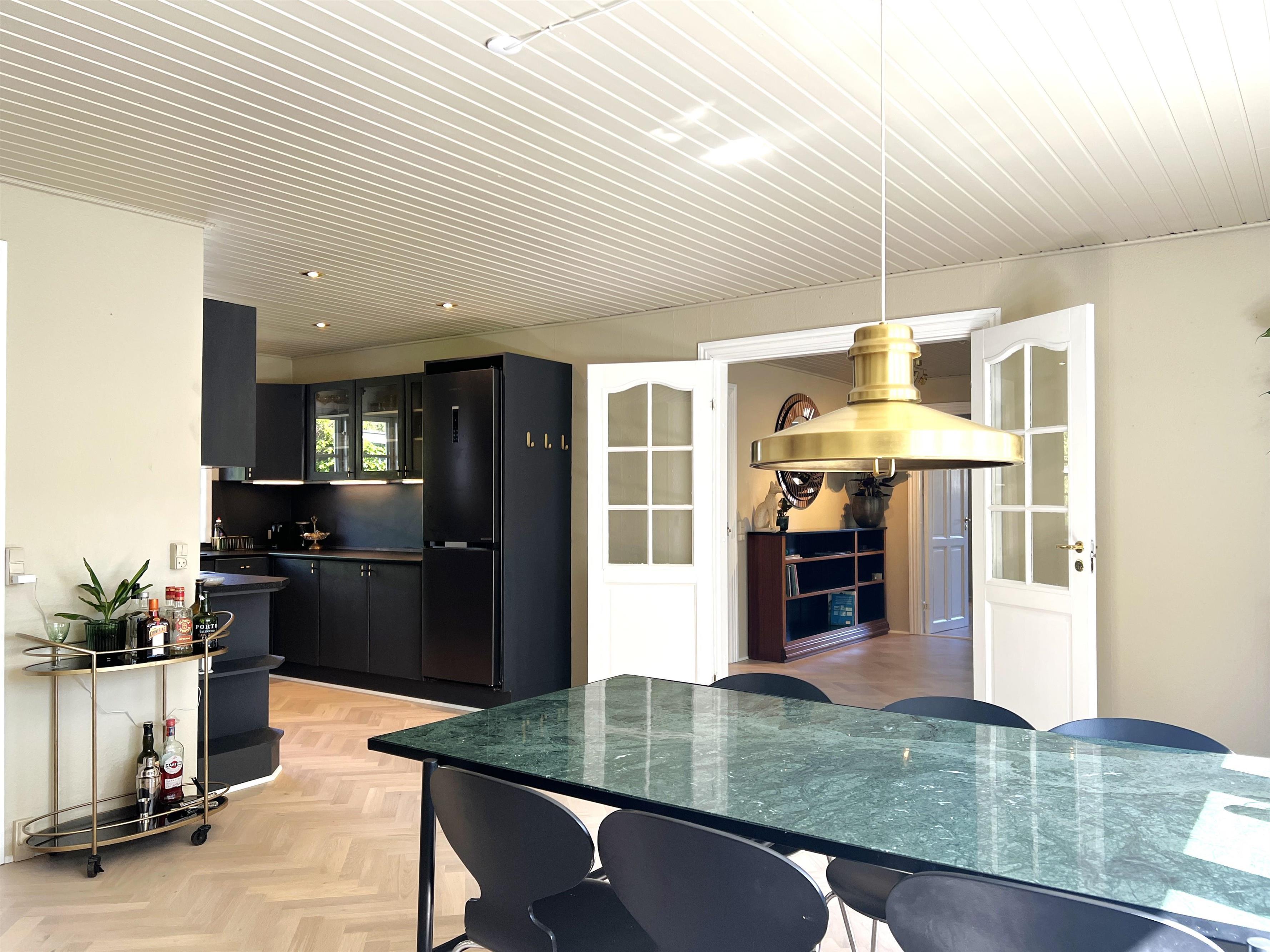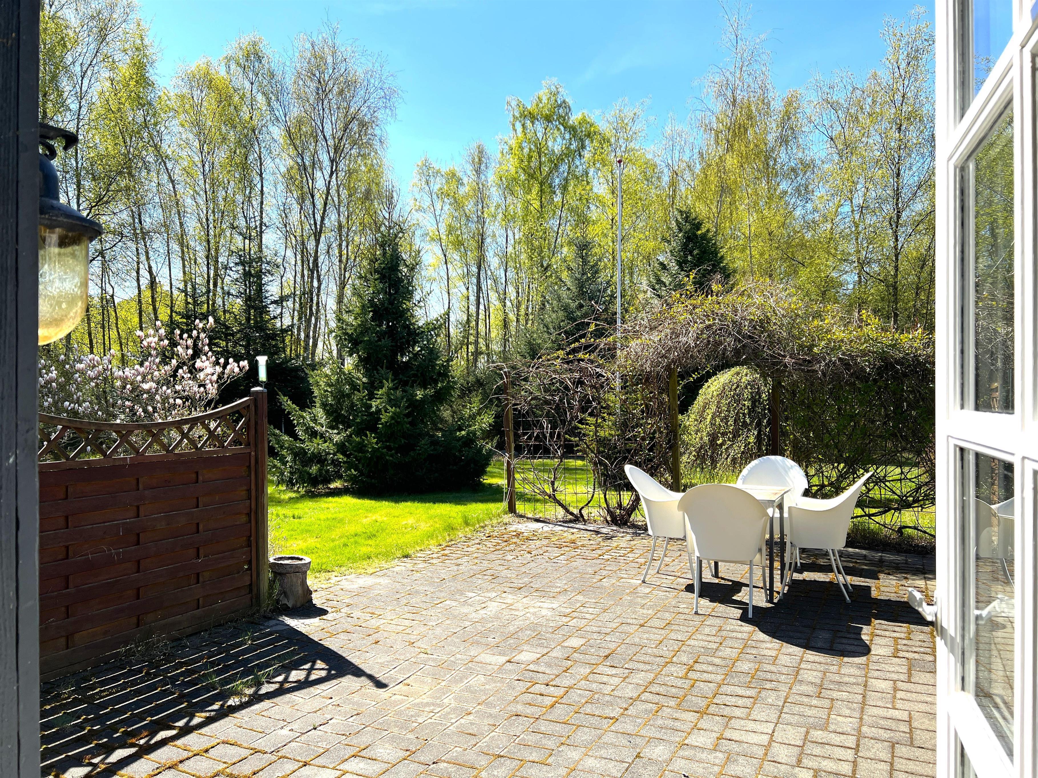 Das Haus verfügt über eine schöne, stilvolle Küche mit Essbereich und einem der beiden Holzöfen des Hauses. Vom Esszimmer aus besteht eine offene Verbindung zum großen Wohnzimmer mit Fernseher(nur deutsche Nachrichtensender über Apple TV) , wo die ganze Familie entspannen kann. Es gibt mehrere gemütliche Sitzgruppen und eine sehr schöne, große Sofagruppe. Das Wohnzimmer besticht durch seinen charmanten Stil und ist für außergewöhnliche Entspannung konzipiert. Vom Wohnzimmer aus gelangt man in den großen, schönen Garten mit Ziersträuchern, Terrasse, bequemen Gartenmöbeln und Grill.