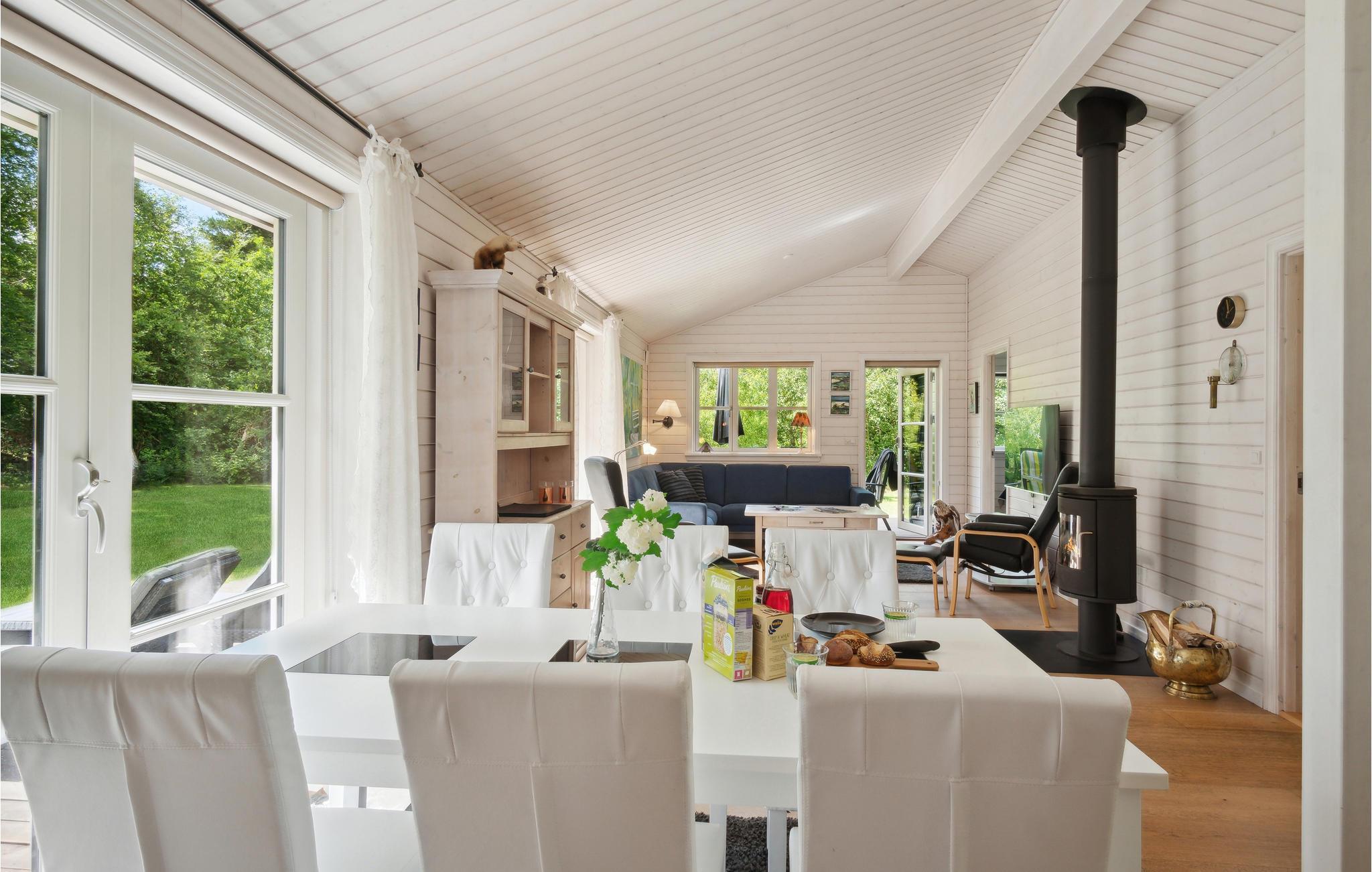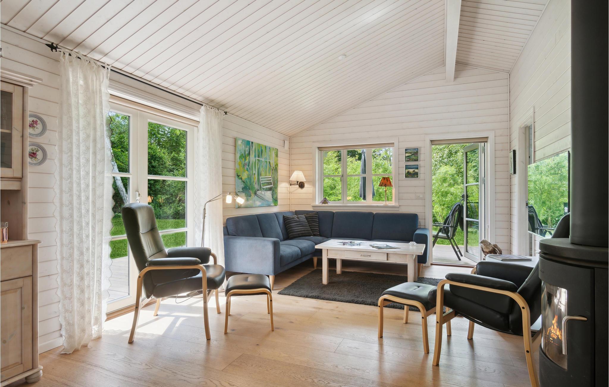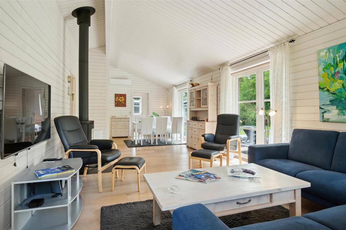 Het comfortabele huis verwelkomt je op een fantastische locatie in de buurt van de zee op een perceel omringd door bomen. Of je nu wilt genieten van het strand, erop uit wilt in de prachtige natuur of ontspannen dagen wilt doorbrengen in het huis en de tuin, hier heb je alle mogelijkheden. Lichte kamers in klassieke Scandinavische zomerhuisstijl maken het de ideale uitvalsbasis voor een ontspannen tijd, en je kunt vanuit alle kamers genieten van een prachtig uitzicht op de tuin. Breng hier gezellige avonden door na bewogen dagen, ontspan in de sauna en op de bank, de houtkachel zorgt voor een bijzonder knusse sfeer.
