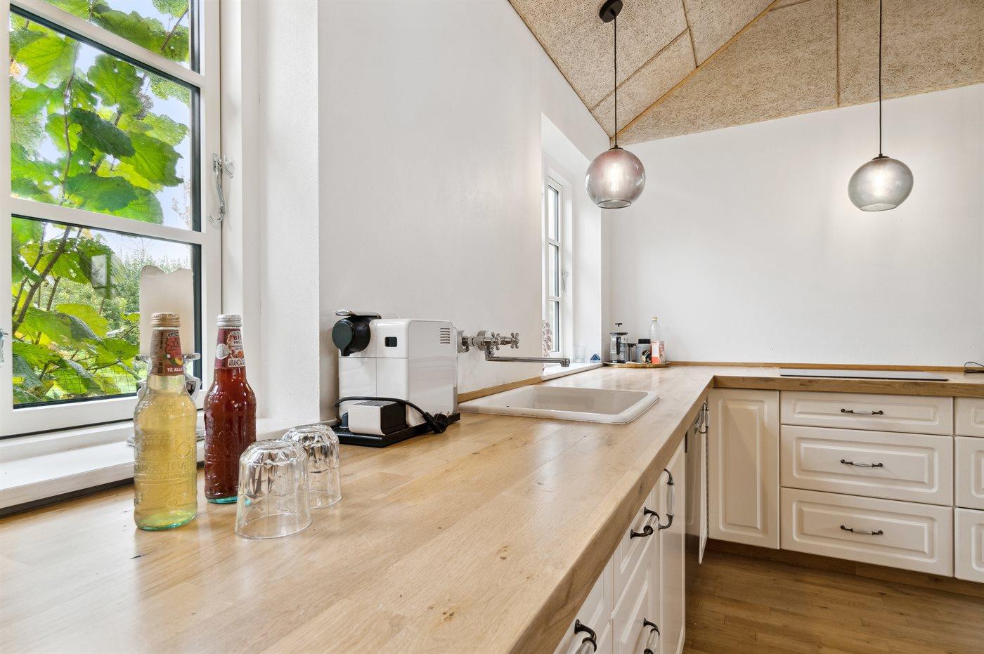 De keuken is uitgerust met koelkast Er is 4 inductiekookplaten, heteluchtoven, magnetron en vaatwasser.