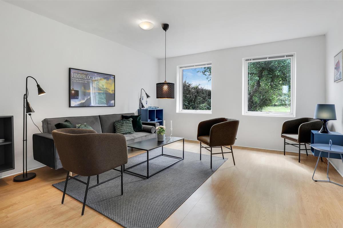 Een eenvoudig, modern vakantiehuis in de kleine gemeente Østermarie met uitzicht op een prachtig landschap.