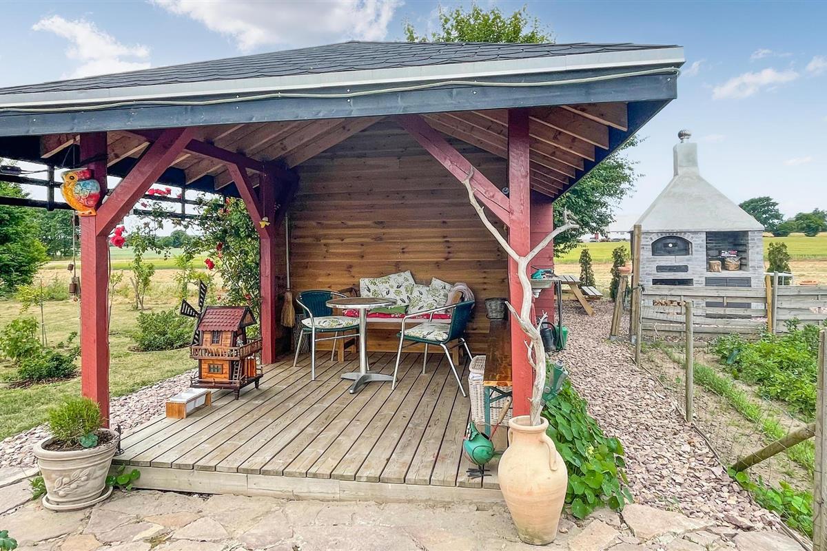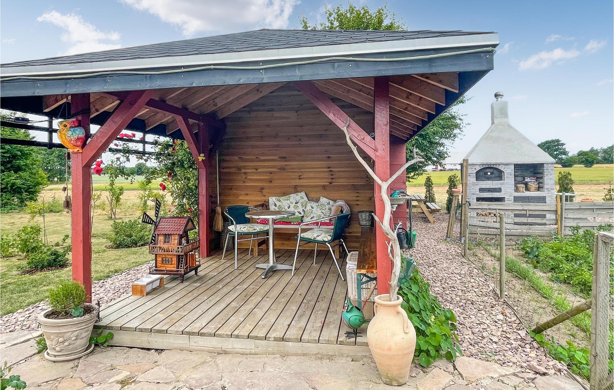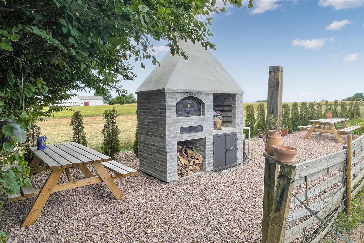 Naast een goed uitgeruste keuken kunt u buiten eten bereiden, waar zowel een gemeenschappelijke barbecue als een pizza-oven is. Als de maaltijd klaar is, kunt u deze opeten op het overdekte terras met uitzicht op de vredige omgeving.