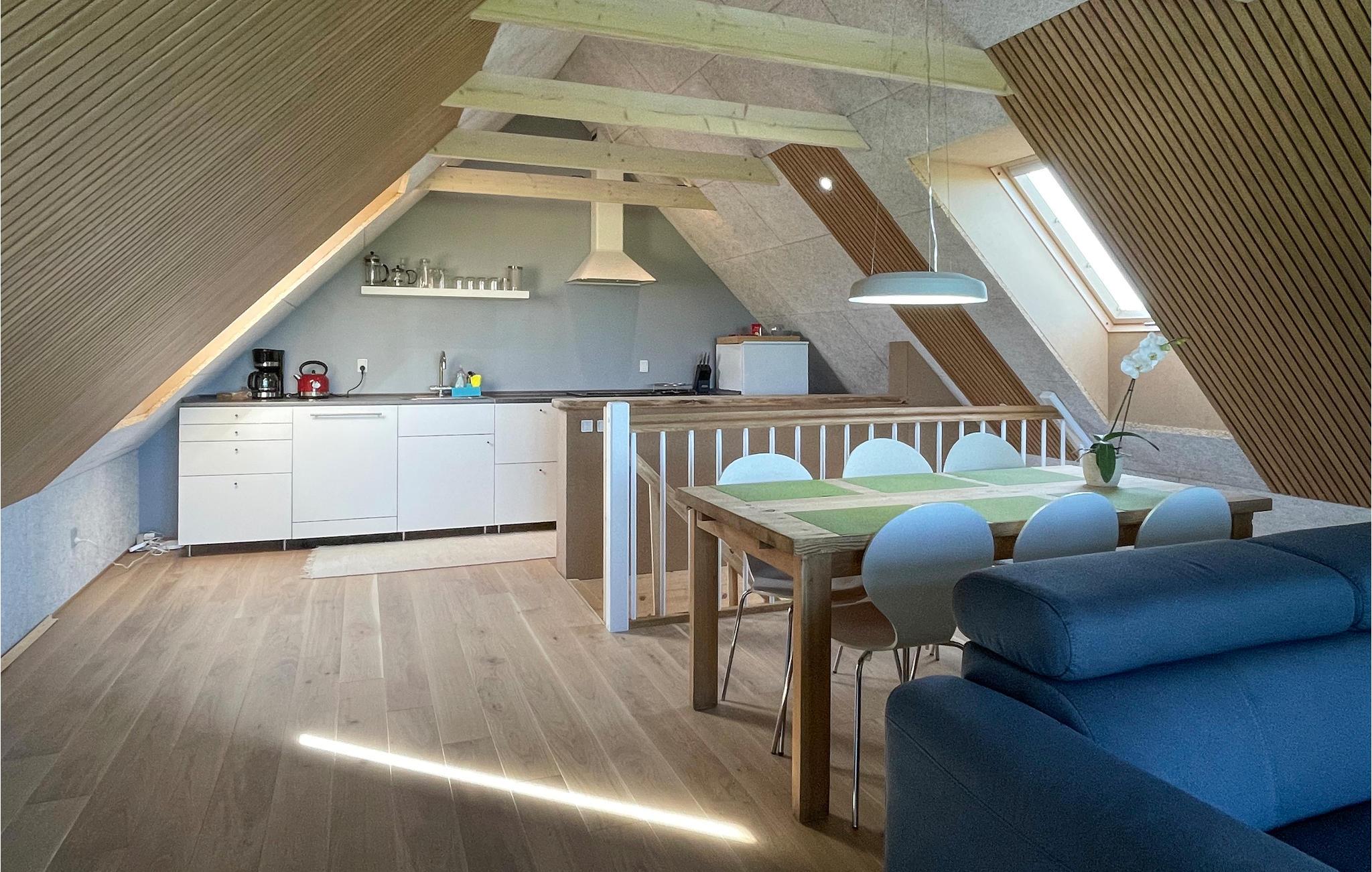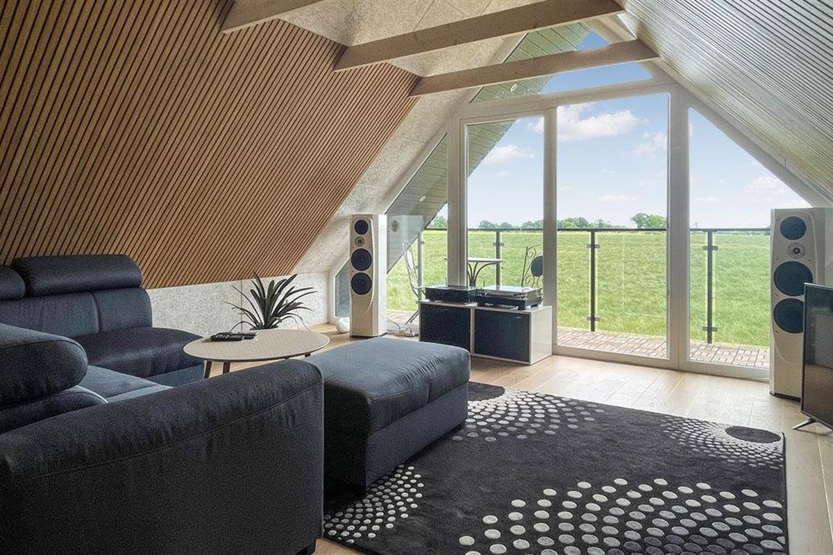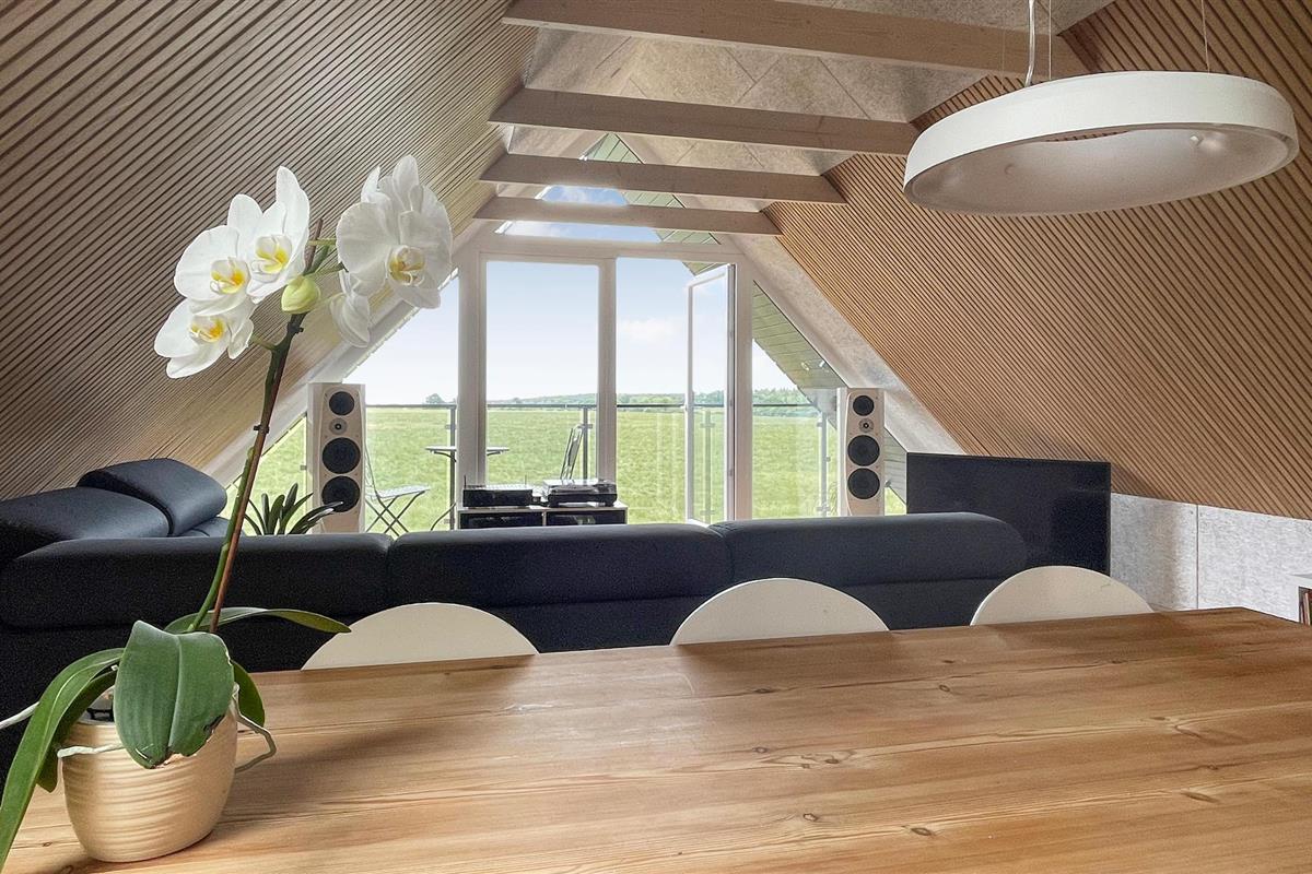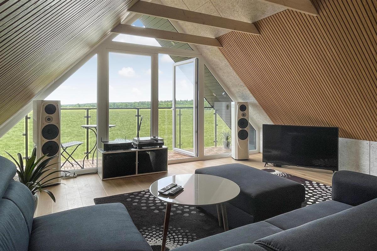 Het vakantiehuis is verdeeld over twee verdiepingen en biedt plaats aan zes personen. Op de begane grond is vloerverwarming aangelegd, die zorgt voor een aangenaam binnenklimaat. Op de eerste verdieping bevindt zich een mooie, grote slaapzaal, van hieruit heeft u toegang tot een balkon waar u met een kopje koffie kunt genieten van de frisse lucht. Op de begane grond verblijft u in de woonkamer met een prachtig uitzicht op de mooie natuur. Er is ook een tv, Bluetooth speakers met internetradio en een uitzonderlijk goede muziekinstallatie met grammofoon, evenals een tweepersoons slaapbank.