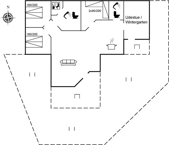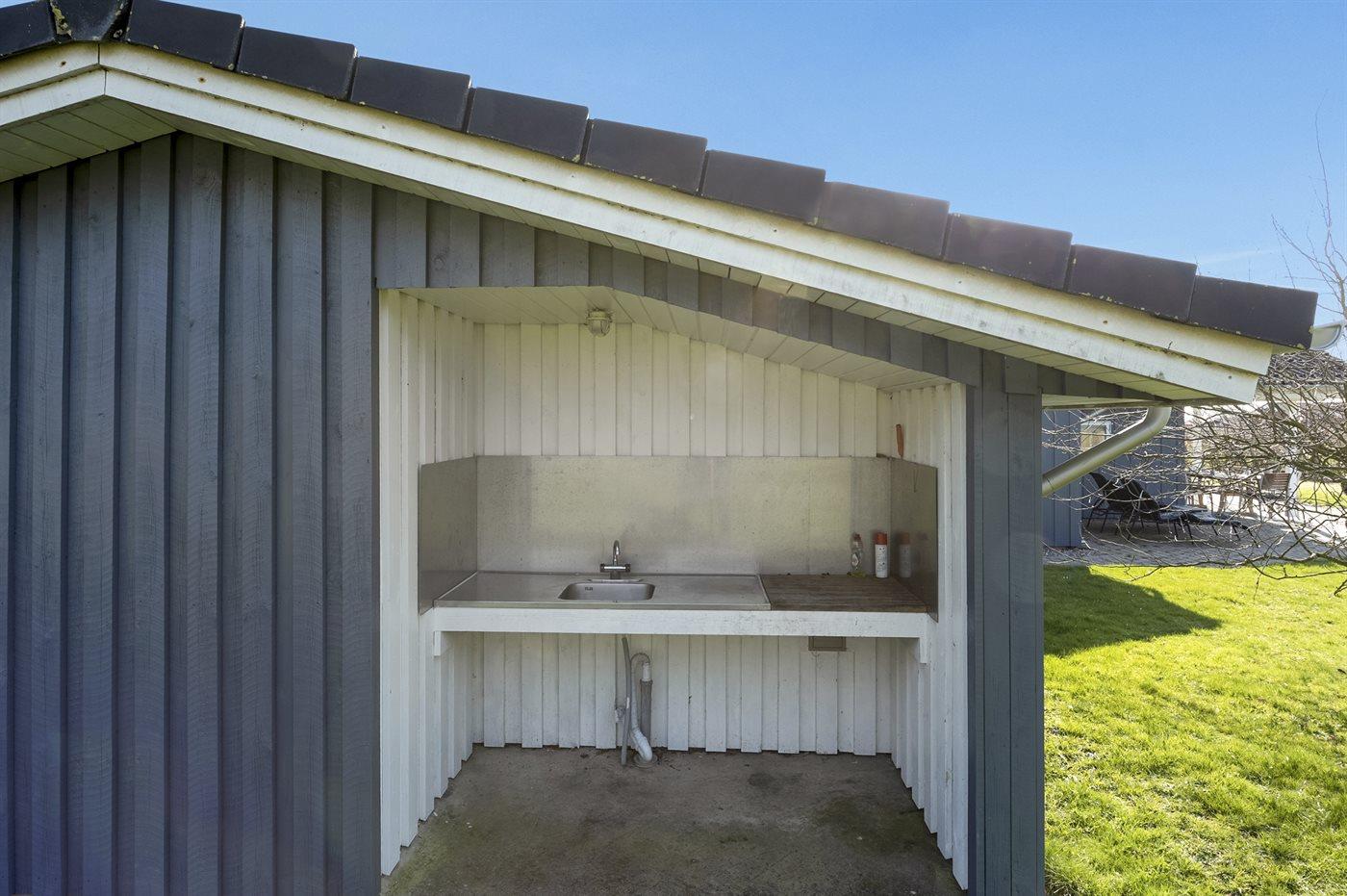 De vakantiewoning is gelegen op een 1208 m² groot aangelegde tuin. Afstand tot de zee 600 m. Dichtstbijzijnde winkel 6000 m. Er is een golfbaan op een afstand van 2000 m. Bij de vakantiewoning hoort 50 m² terras. Daarnaast is er een 20 m² groot overdekt terras. Tevens heeft u de beschikking over een serre. Schommel. Zandbak. Barbecue. Buiten staat een visschoonmaaktafel met spoelbak. Carport ter beschikking. Parkeerplaats bij het huis.