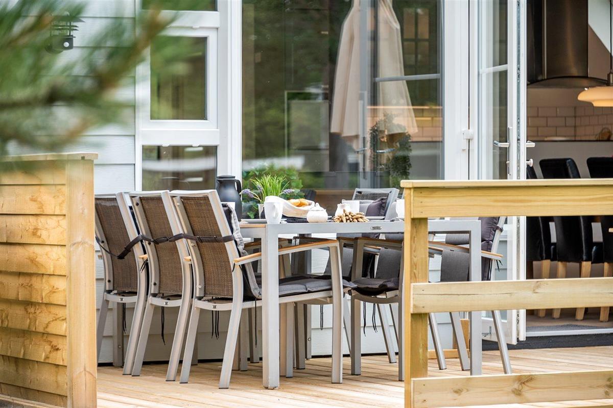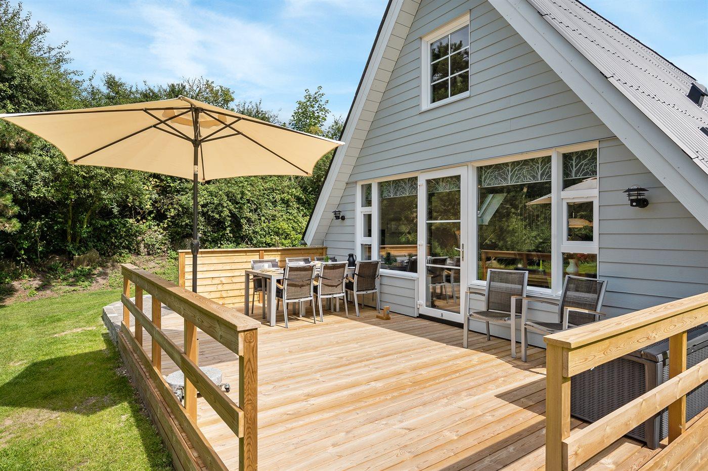 De vakantiewoning is gelegen op een 1232 m² groot aangelegde tuin. Afstand tot de zee 350 m. Er is een zwemsteiger in de buurt. Dichtstbijzijnde winkel 7000 m. Er is een golfbaan op een afstand van 900 m. Bij de vakantiewoning hoort 61 m² terras. Daarnaast is er een 9 m² groot overdekt terras. Balkon. Gereedschapsruimte.Vuurplaats. 2 Barbecues. Er is een kogelbarbecue en een gasbarbecue beschikbaar. Carport ter beschikking. Parkeerplaats bij het huis.