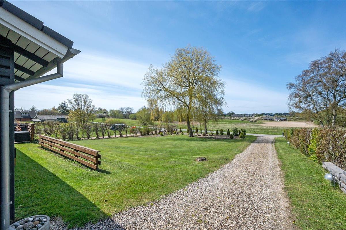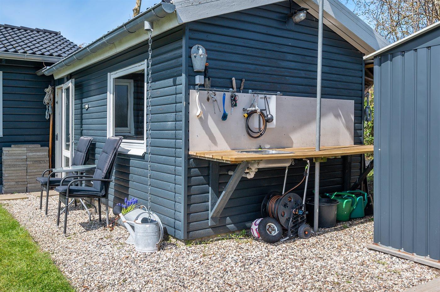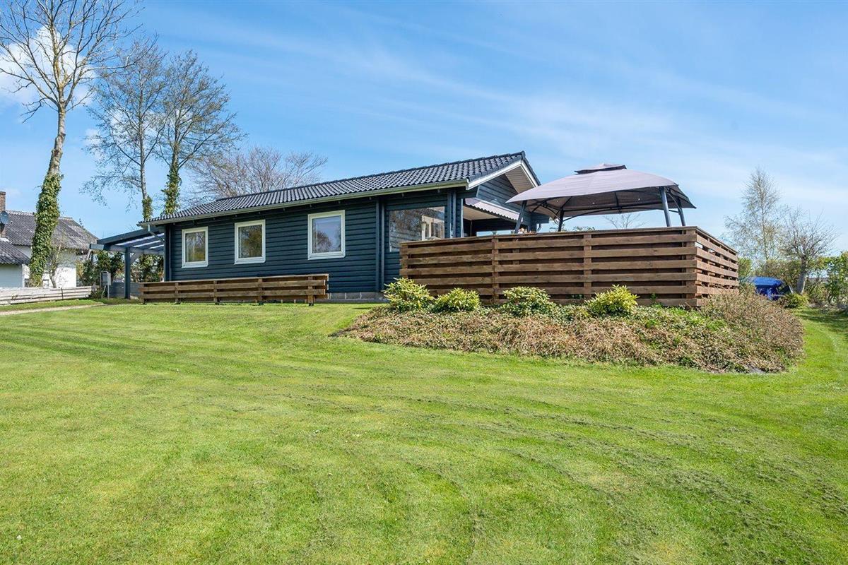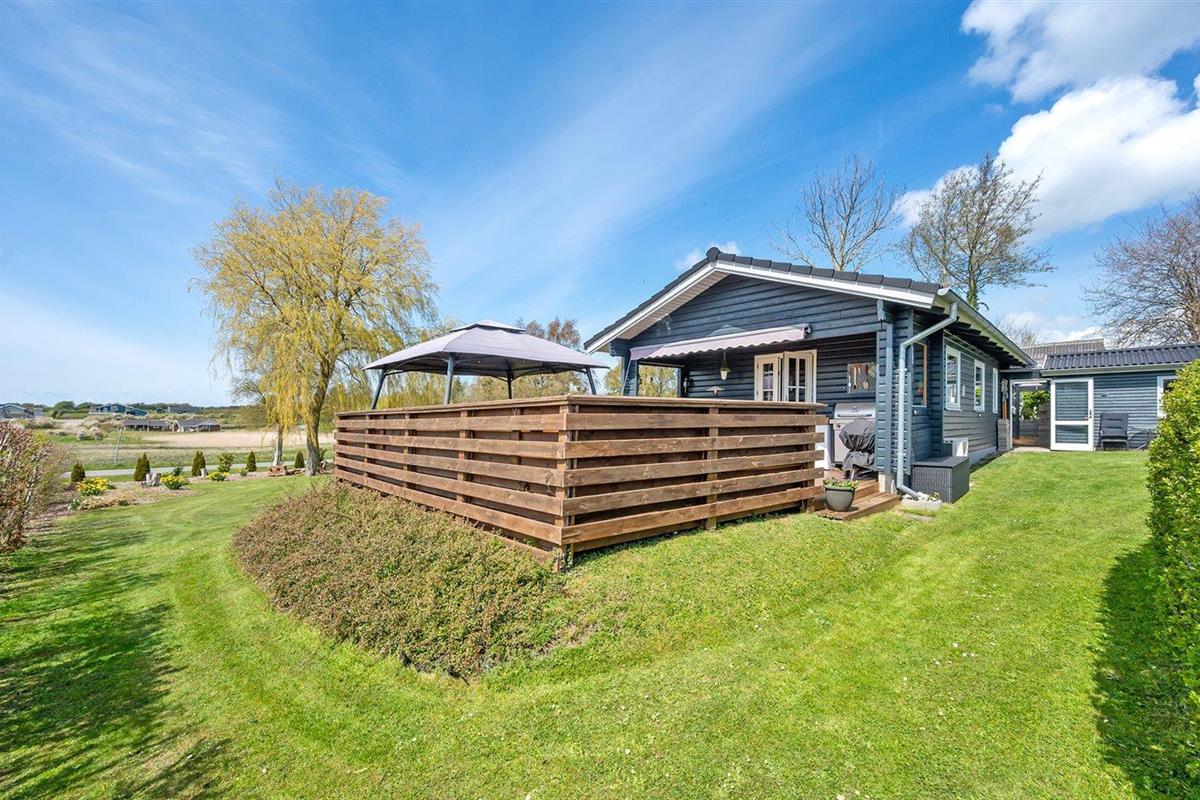De vakantiewoning is gelegen op een 1236 m² groot aangelegde tuin. Afstand tot de zee 325 m. Dichtstbijzijnde winkel 5000 m. Bij de vakantiewoning hoort 50 m² terras. Daarnaast is er een 15 m² groot overdekt terras. Gereedschapsruimte. Barbecue. Carport ter beschikking. Parkeerplaats bij het huis.