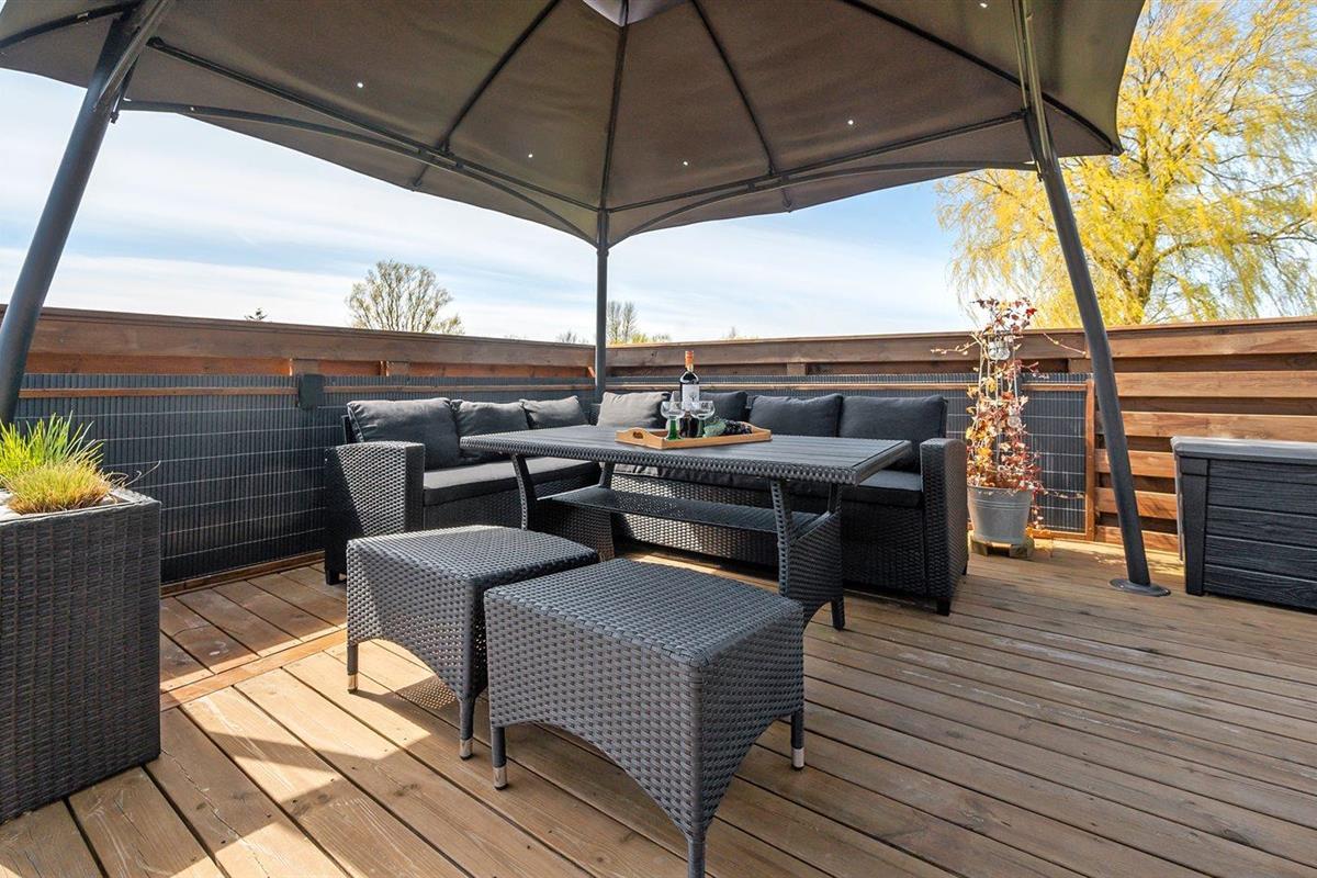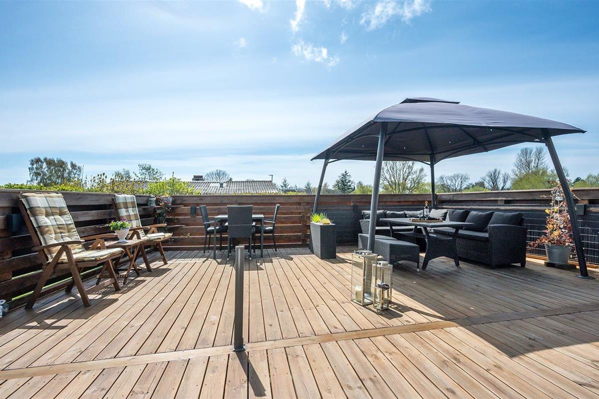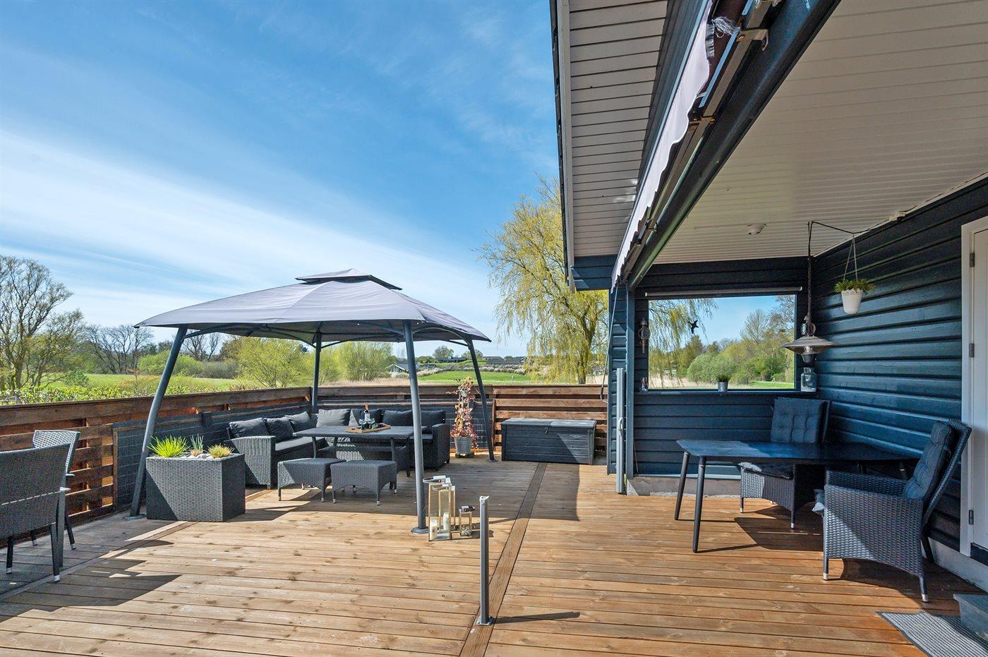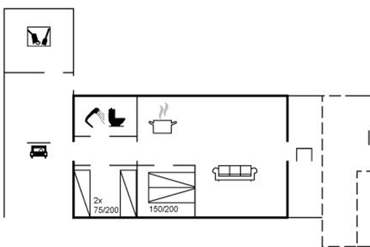 De vakantiewoning is gelegen op een 1236 m² groot aangelegde tuin. Afstand tot de zee 325 m. Dichtstbijzijnde winkel 5000 m. Bij de vakantiewoning hoort 50 m² terras. Daarnaast is er een 15 m² groot overdekt terras. Gereedschapsruimte. Barbecue. Carport ter beschikking. Parkeerplaats bij het huis.
