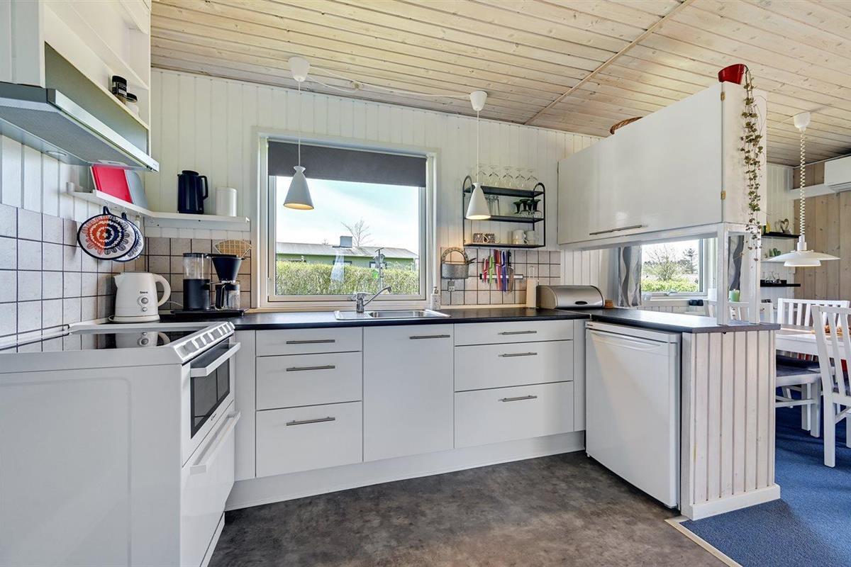 De keuken is uitgerust met 1 koelkasten. Er zijn 4 keramische kookplaten, heteluchtoven, magnetron en vaatwasser. In de gereedschapsruimte is een extra koelkasten aanwezig.