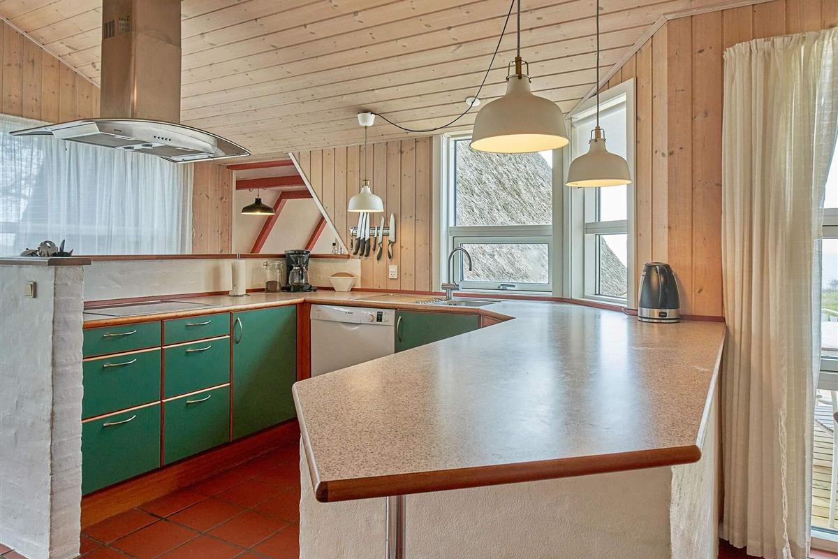 Der schöne, große und offen gestaltete Küchen-/Wohnbereich bietet viel Platz für das Familienleben und ist mit Ess- und Sitzecke ausgestattet. In der Küche finden Sie alles, was Sie für die Selbstverpflegung benötigen. Vom Essplatz hat man herrlichen Meerblick.