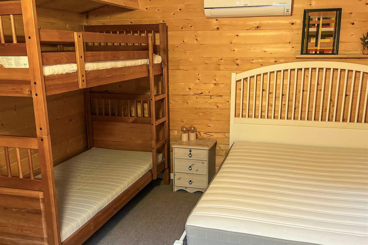 Zur Klimatisierung ist das Ferienhaus mit einer Elektroheizung und einer Luft-Luft-Wärmepumpe ausgestattet.