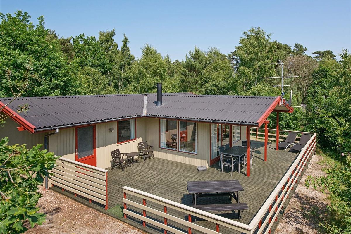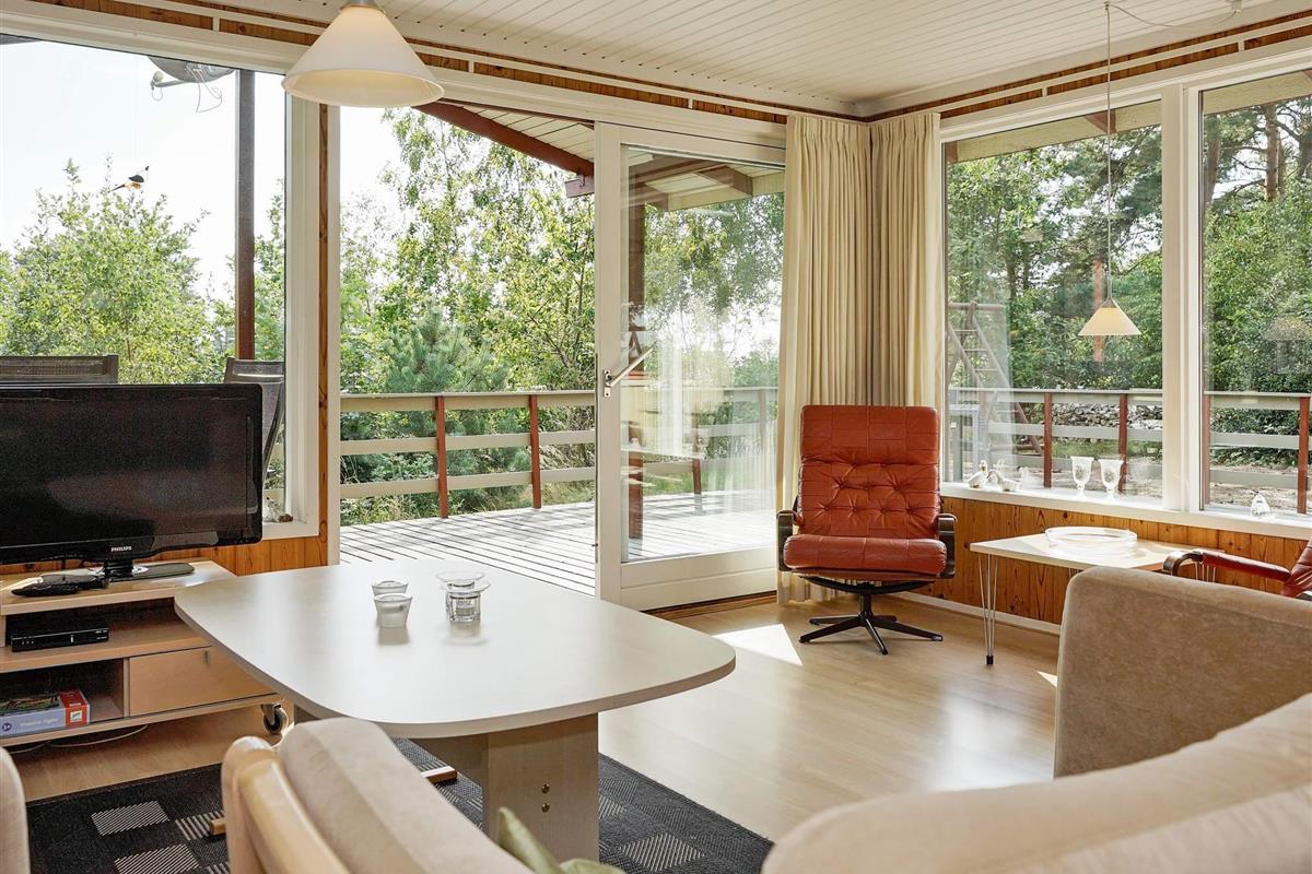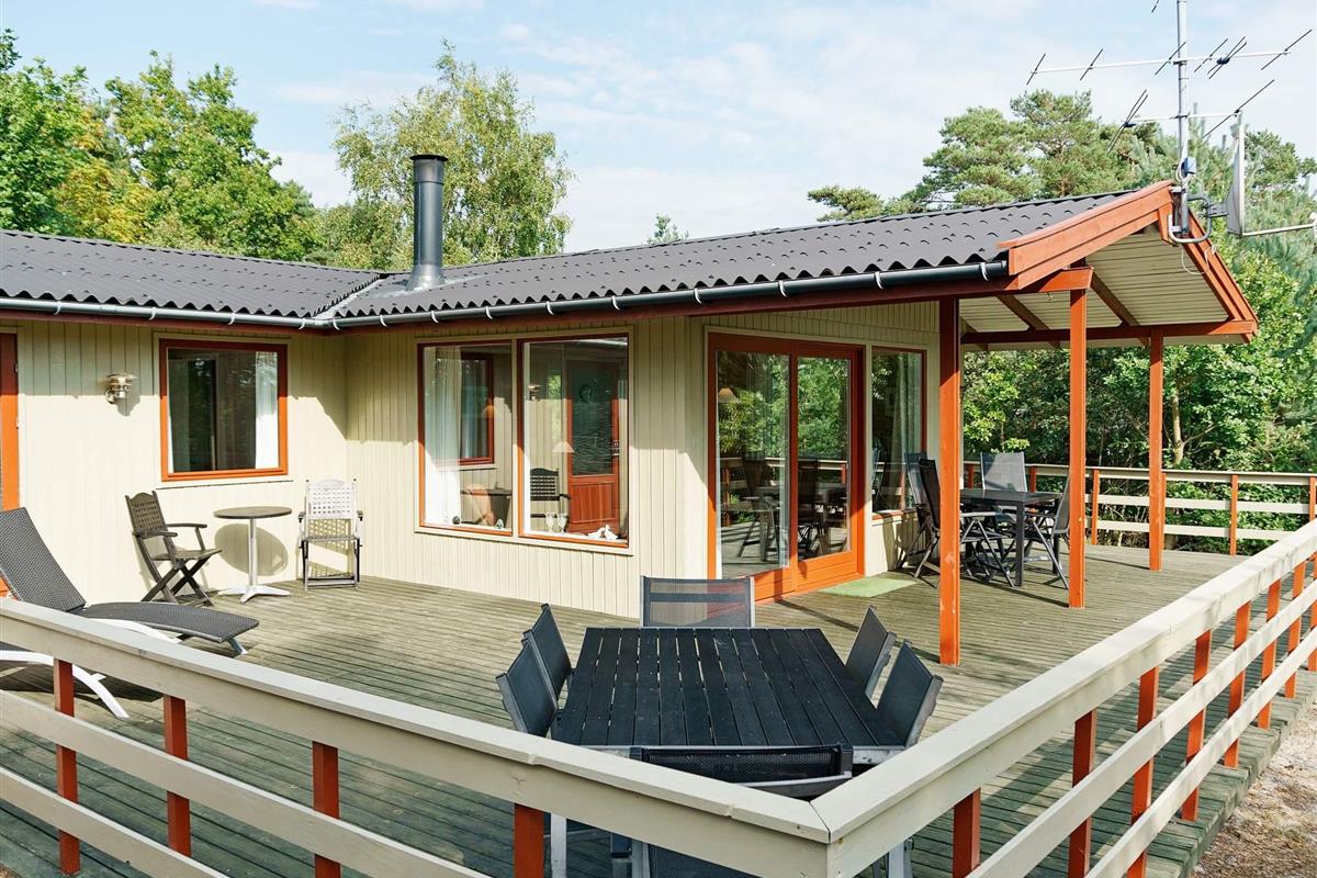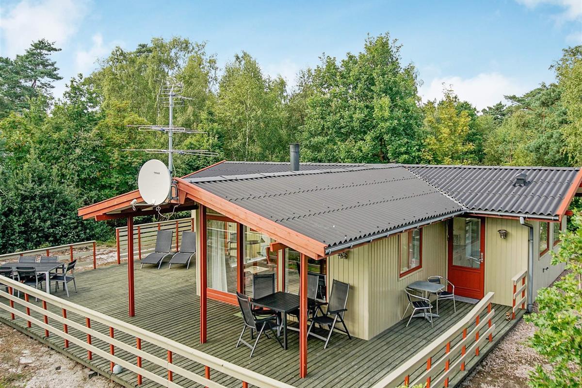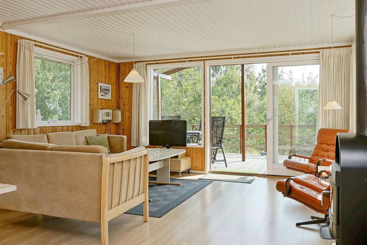 In Østre Sømarken finden Sie dieses gut ausgestattete Ferienhaus in wunderschöner Lage auf einem hügeligen Naturgrundstück. Vom Haus und der Terrasse aus haben Sie etwas Meerblick!