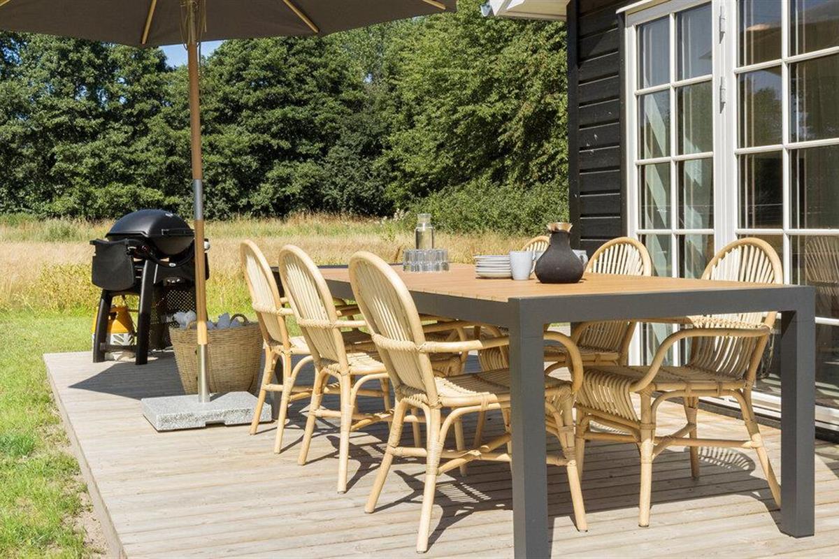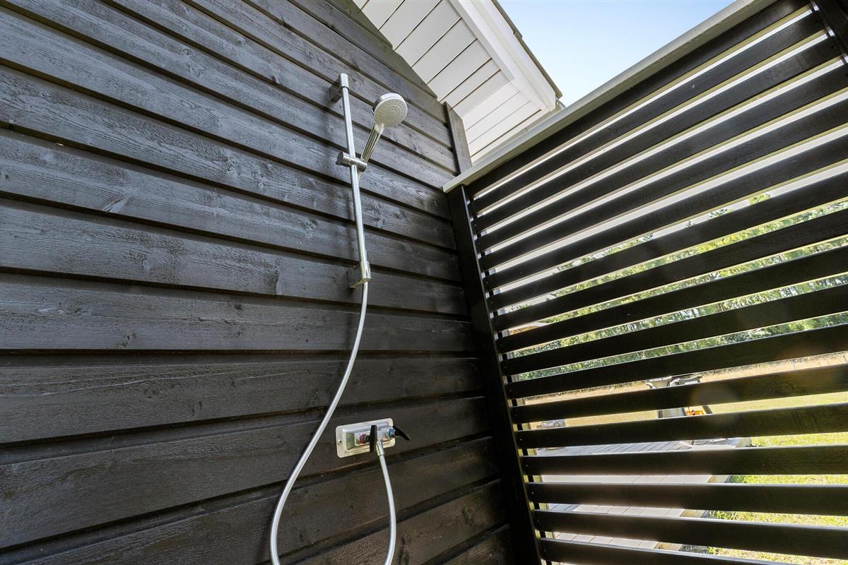 Ontspan hier en stap uit op het grote houten terras. Maak het jezelf gemakkelijk op de ligstoelen en het tuinmeubilair, verfris jezelf onder de buitendouche en kijk hoe je kinderen in de tuin spelen.