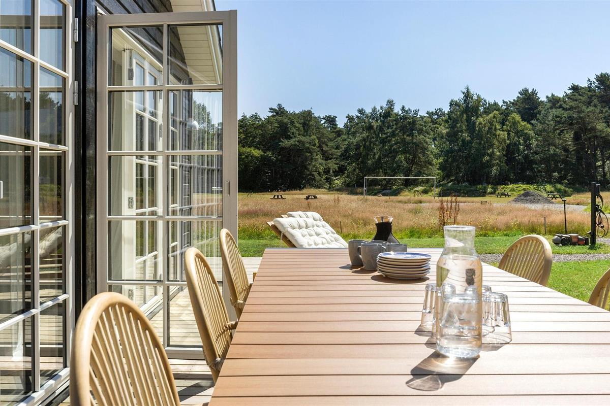 Een korte wandeling brengt je naar een geweldig, kindvriendelijk zandstrand. Maar zelfs als je mooie vakantieresort alles heeft wat je nodig hebt, is het nog steeds de moeite waard om het eiland met de auto of fiets te verkennen. De bekende bezienswaardigheden zoals de ruïnes van Hammershus, Dueodde Strand, de ronde kerk van Österlars, de beroemde Echovallei of de Helligdomsklipperne kliffen zijn zeker een bezoek waard. De uiterst charmante stadjes zoals Aakirkeby, Snogebäk en Svaneke zijn ook zeker een bezoek waard.