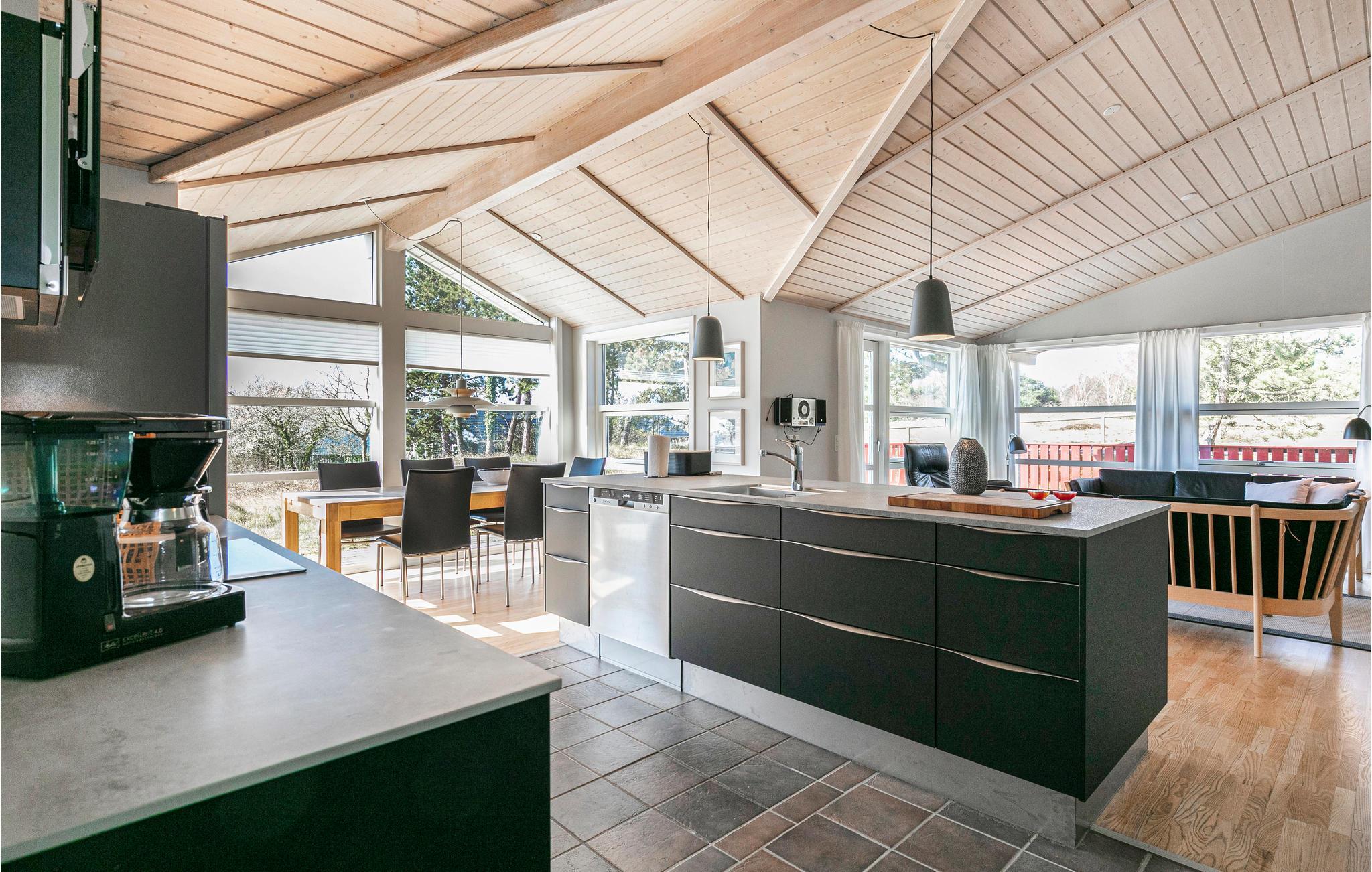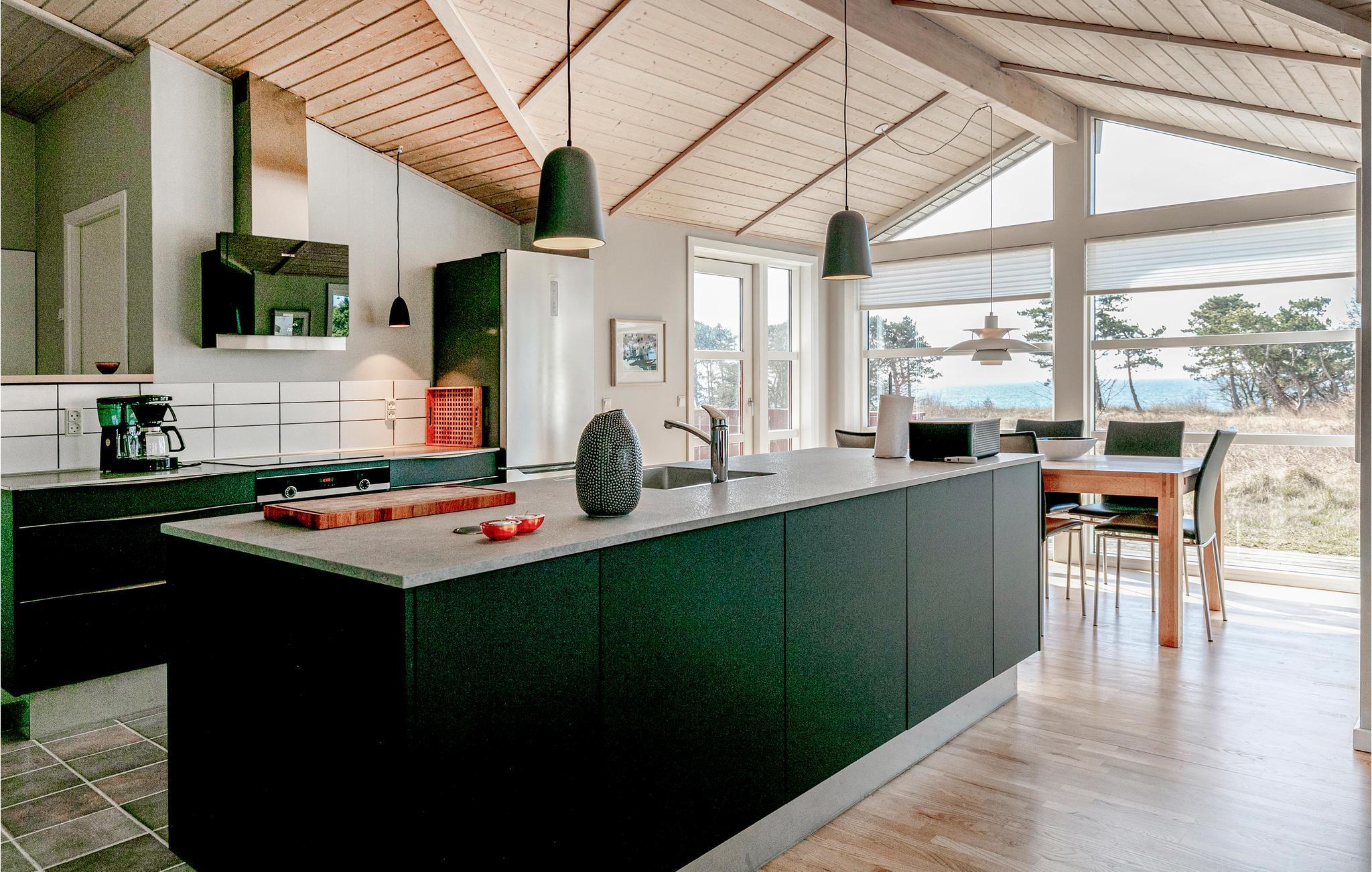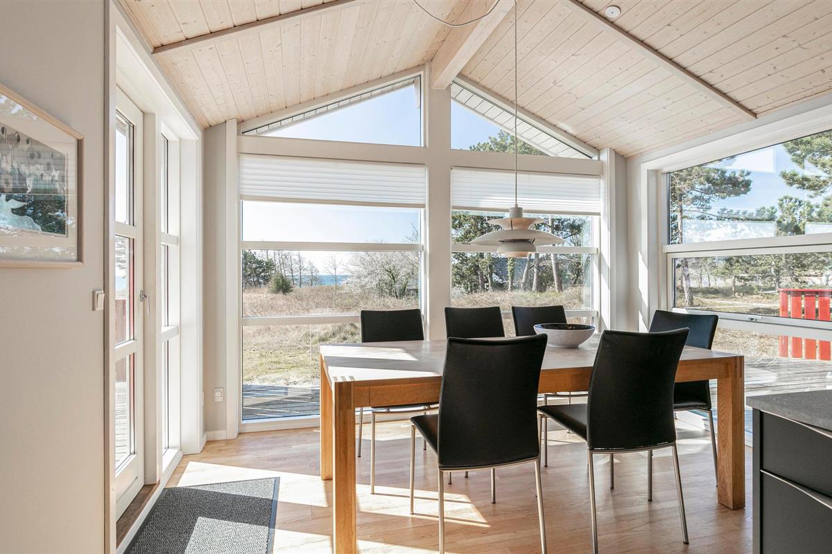 Prachtig kwaliteitshuis gelegen in de eerste rij, met een prachtig uitzicht op zee. Het huis is overal goed onderhouden, met een hoog niveau van comfort, inclusief een mooi, groot houten terras. Het huis bevat een grote en goed uitgeruste woonkamer met comfortabele meubels, en het licht valt prachtig door de grote raamsecties tegen de zee. Een extra woonkamer met TV en comfortabel meubilair maakt het gemakkelijk om zich in het huis te verspreiden. De grote 2020 open keuken met alle moderne apparatuur maakt het bereiden van de vele vakantiemaaltijden moeiteloos. Vanuit de keuken heeft u direct toegang tot een gezellige eetkamer met uitzicht op de prachtige natuur van Bornholm met de zee als achtergrond. U beschikt over twee badkamers, waarvan één grote met whirlpool, en drie grote slaapkamers met comfortabele bedden. Er is ook een extra woonkamer waar de kinderen comfortabel tv kunnen kijken. Vanuit de woonkamer heeft u toegang tot het grote houten terras, dat afgesloten kan worden en dus geschikt is voor onder andere honden. De vakantie-uren zijn in via een pad vanuit het huisje direct toegang tot het strand. Het mooie comfort, de moderne inrichting en niet te vergeten de aantrekkelijke ligging op dit mooie natuurperceel in de eerste rij van het fijne zandstrand maakt dit huis geschikt voor een vakantieverblijf in elk jaargetijde.