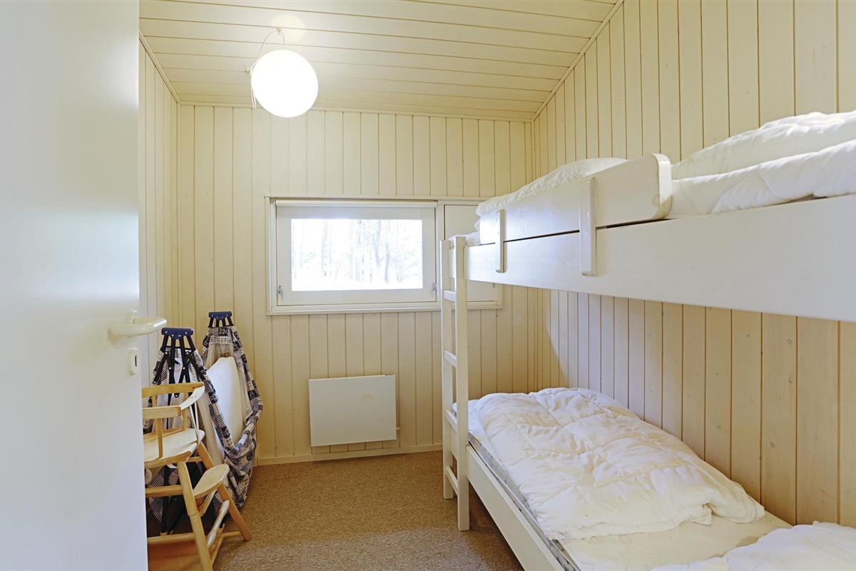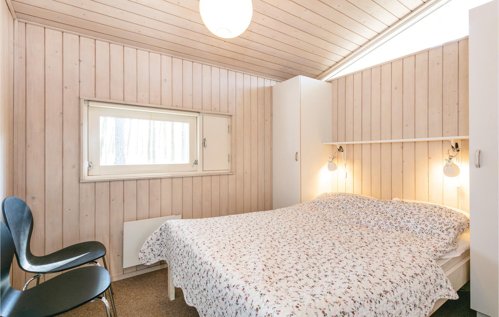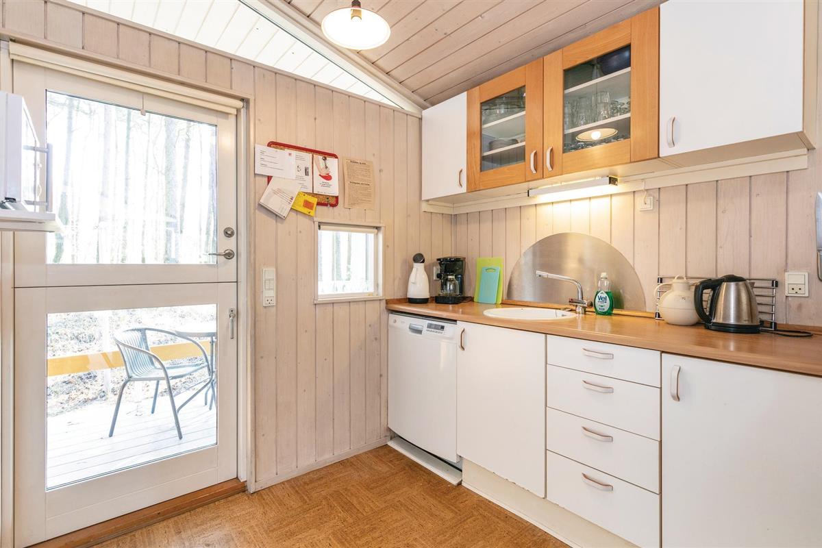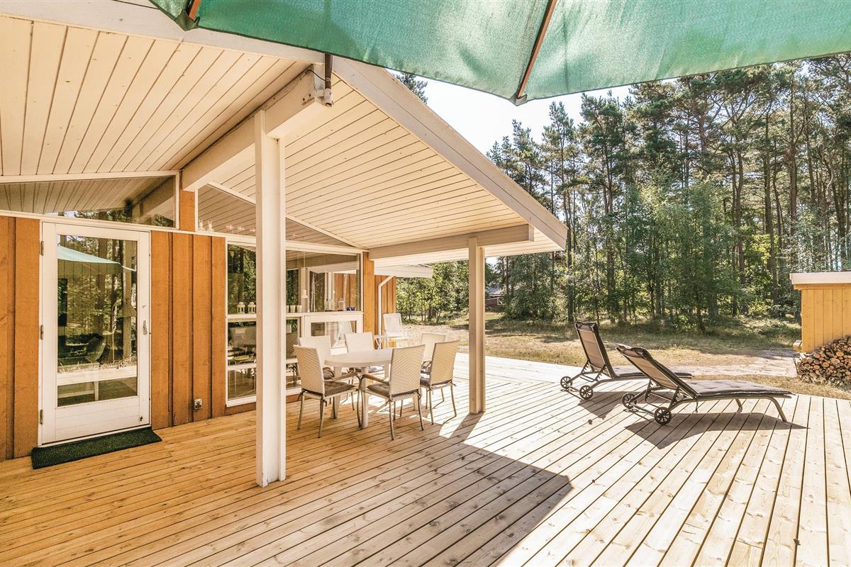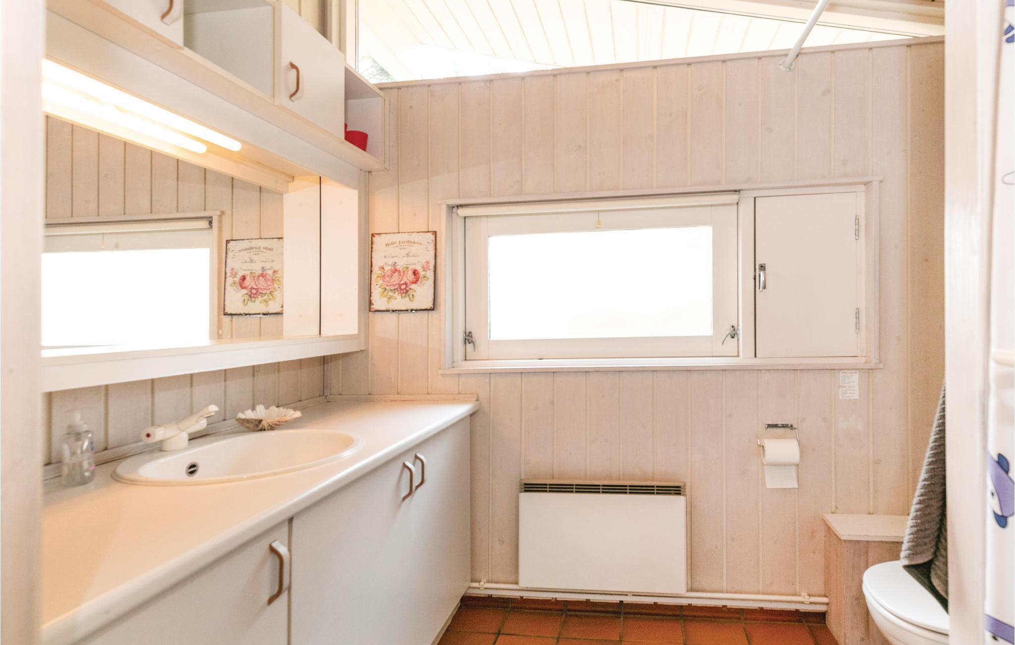 Uitnodigend en goed onderhouden houten vakantiehuis. Het is gelegen in een rustige vakantiehuis nederzetting en heeft een goed natuurlijk perceel. Het interieur is licht en modern. Er is ook een houtkachel in de gezellige keuken-woonkamer. Verwarming ook via een warmtepomp, ook internet is gratis beschikbaar. Het terras voor de woonkamer is open en groot. Voor kinderen is er volop ruimte, schommel, zandbak en spelletjes aanwezig. Er is een carport bij het huis. Niet ver weg is een uitstekend zandstrand, goede fietspaden en een gezellige visrokerij, Bakkarøgeriet, die typische visspecialiteiten van het eiland produceert. In de zomer zijn er meerdere keren per week barbecue-avonden en muziek in het restaurant. Een kleine boothaven is ook de moeite waard.