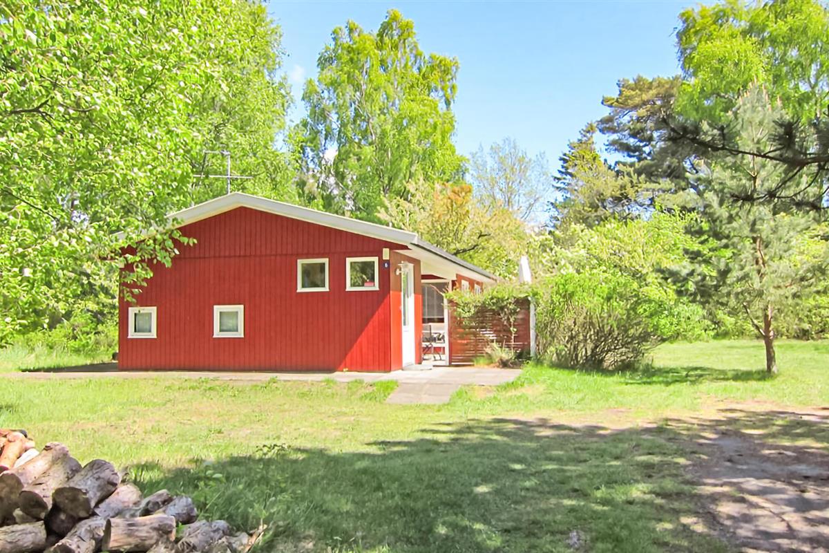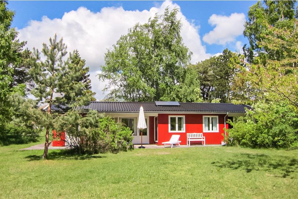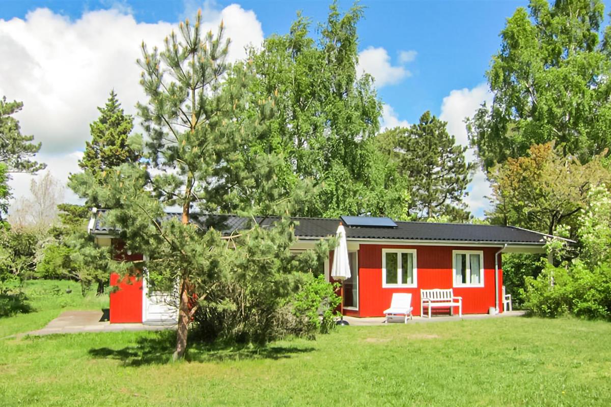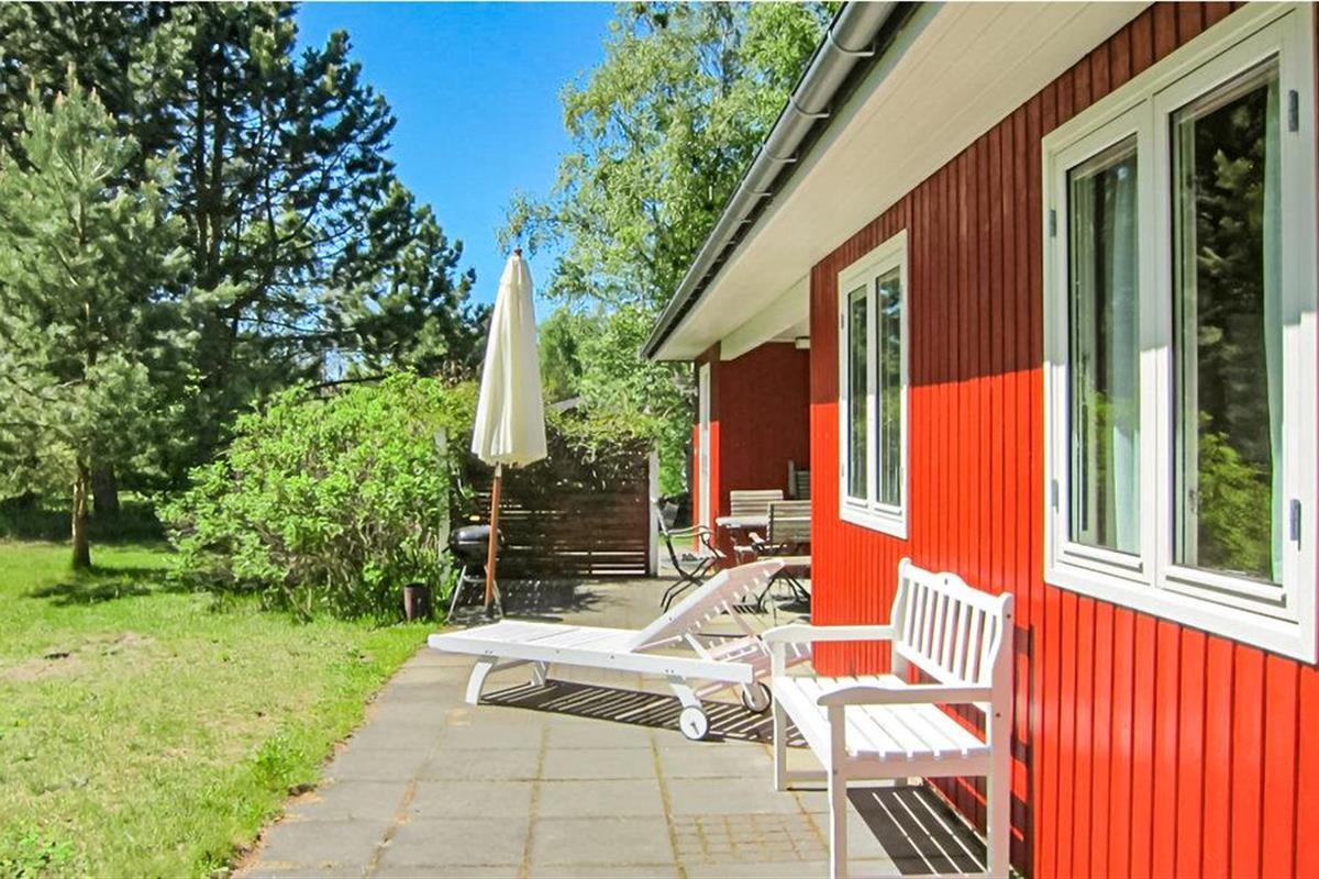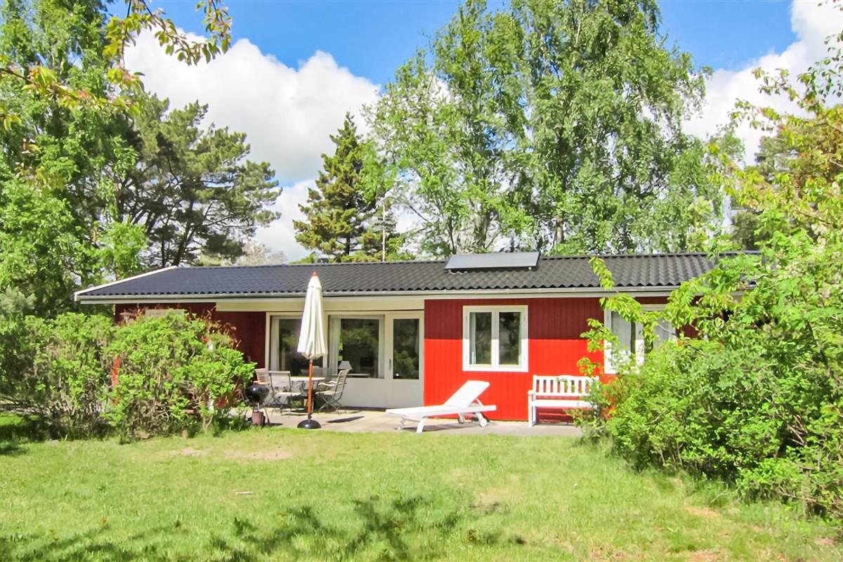 Gezellig houten vakantiehuis op 300 m van het zandstrand met terras, houtkachel en ruime tuin in Aakirkeby, Denemarken.