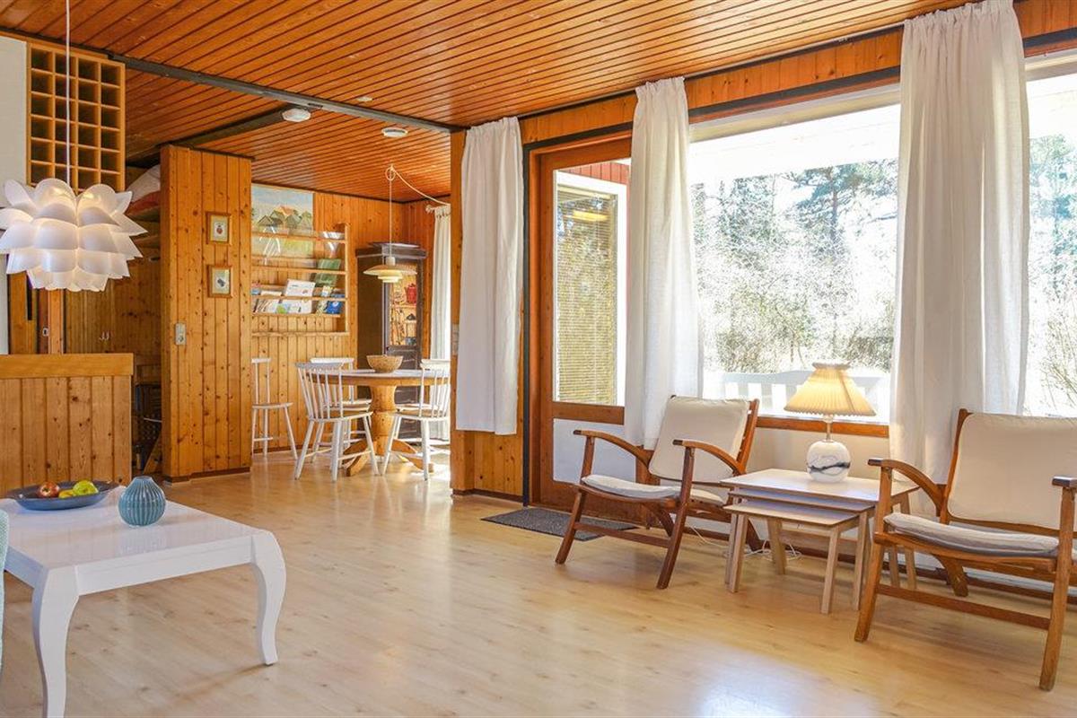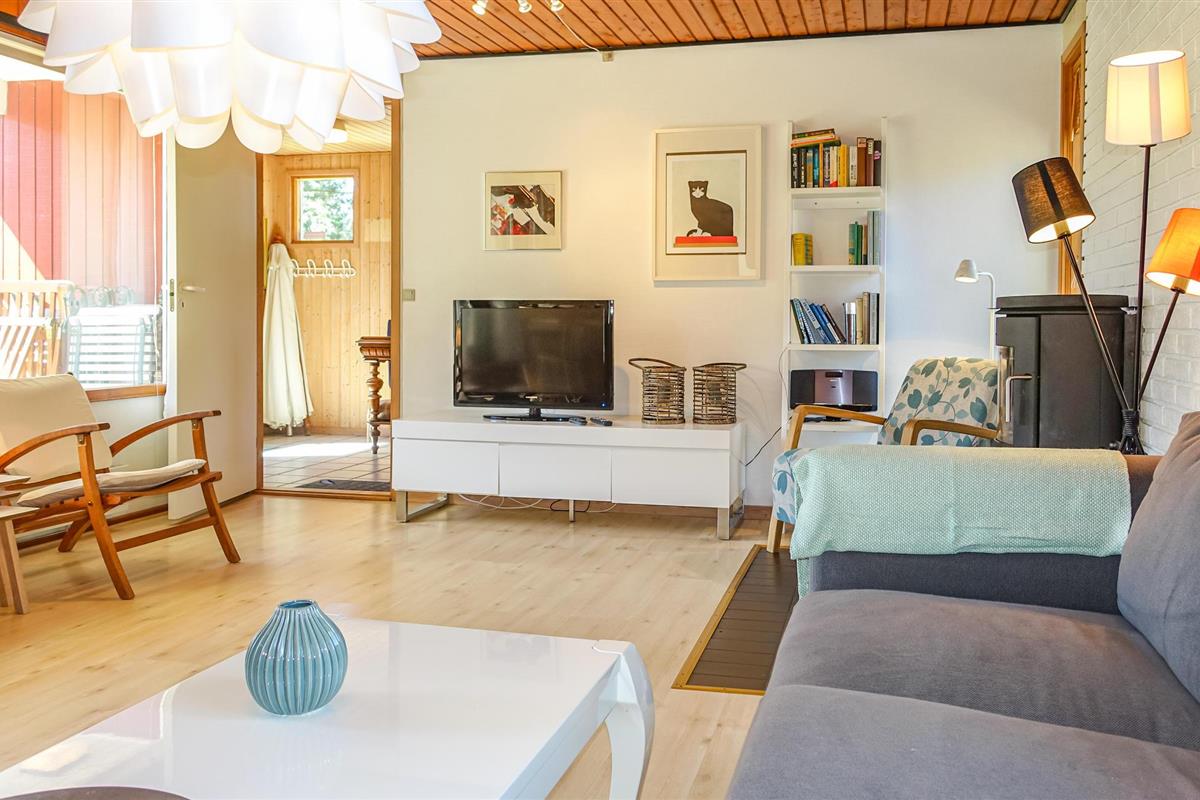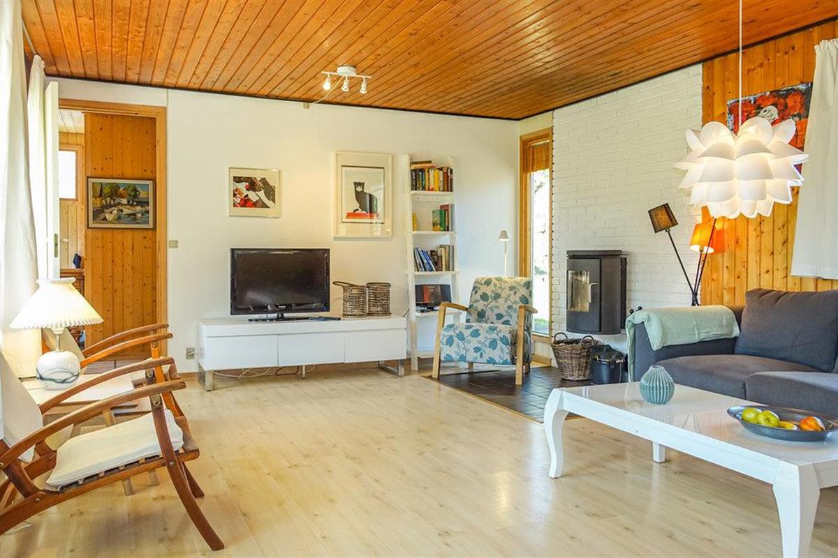 Geniet van een bijzondere vakantiehuis-sfeer in dit kleine vakantiejuweeltje. Vloeren, muren en plafonds zijn volledig van hout. Het huisje is gezellig en comfortabel ingericht, waarbij de woonkamer natuurlijk centraal staat. Hier vindt u bijvoorbeeld een houtkachel om op te warmen tijdens de koudere maanden, een tv voor gezellige filmavonden en een eethoek.